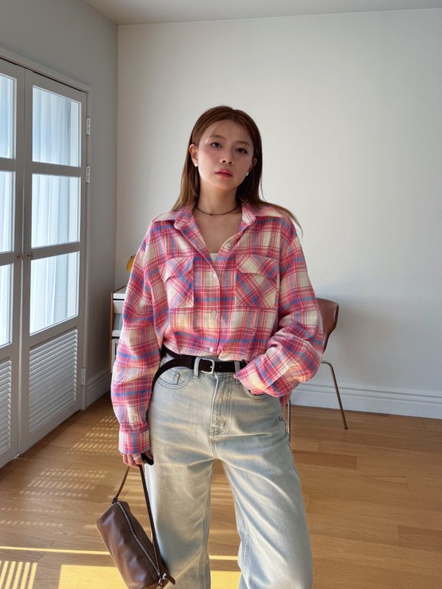 撞色流蘇破洞格紋襯衫(LIVE SALE)