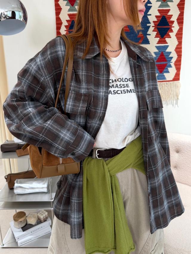 鹿皮絨口袋翻領短款長袖襯衫(LIVE SALE)