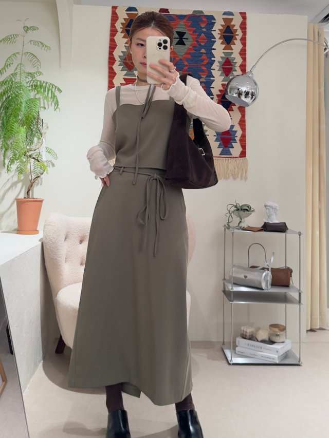 綁繩腰帶開叉半截裙