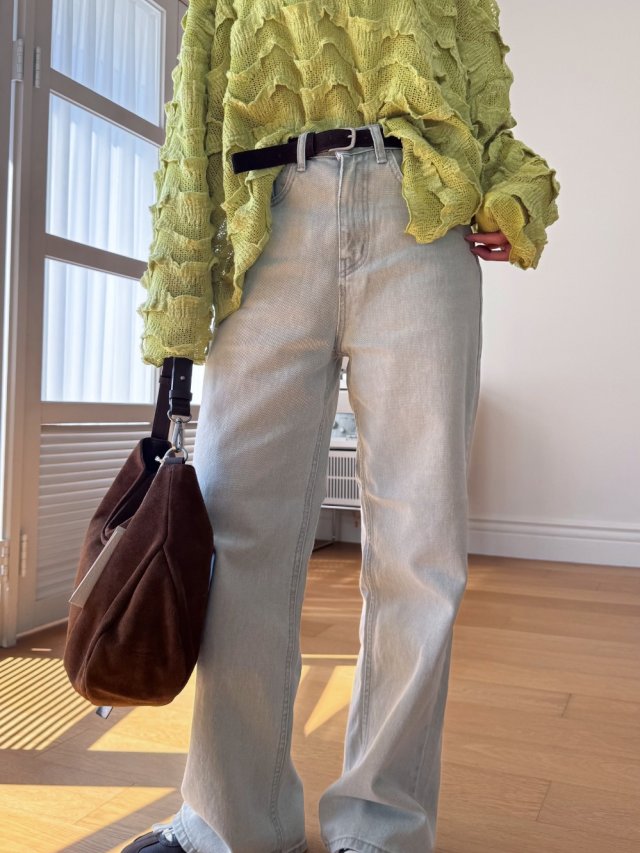 個性拼接側口袋牛仔長褲(LIVE SALE)