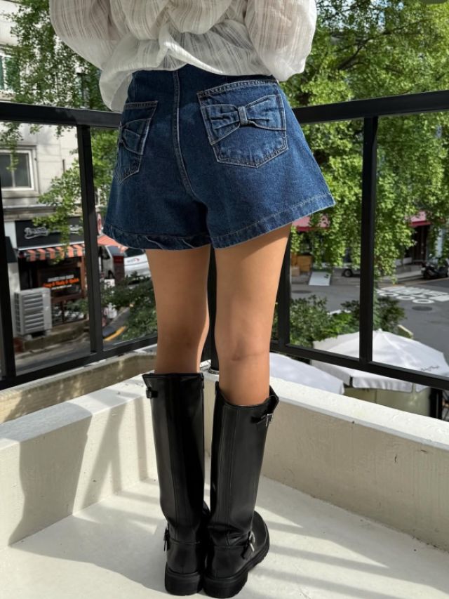 蝴蝶結口袋A CUT牛仔短褲(LIVE SALE)