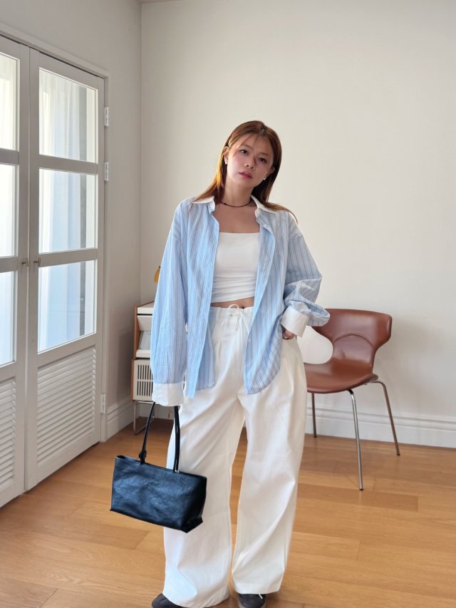 拼色腰頭橡根抽繩長褲(LIVE SALE)
