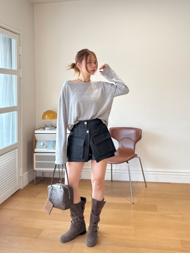 連腰帶燈芯絨口袋短裙褲(LIVE SALE)