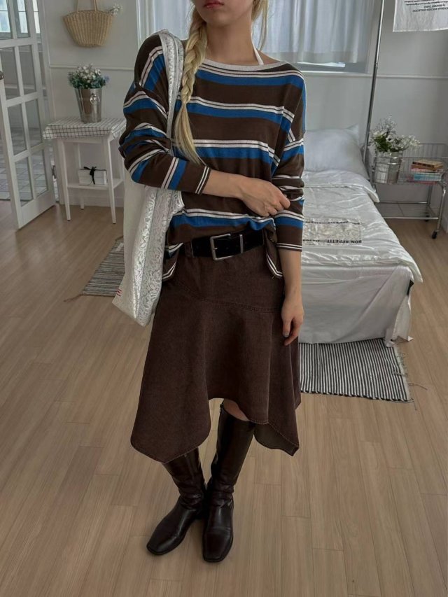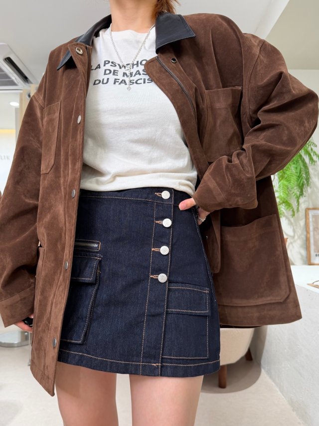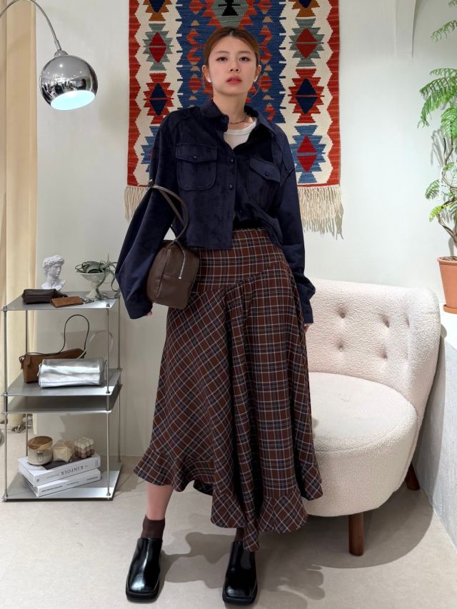 鹿皮絨不規則裙擺半截裙(LIVE SALE)