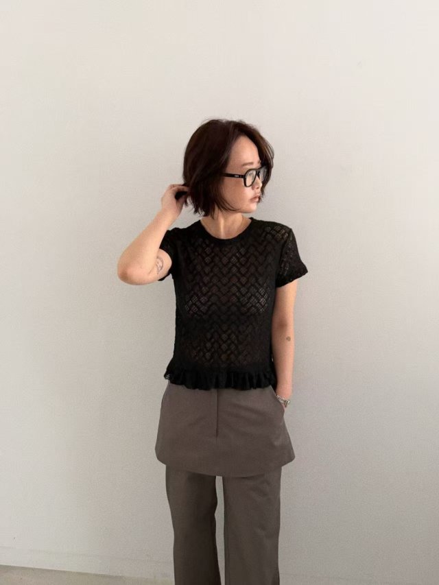 波點捲邊網紗TEE