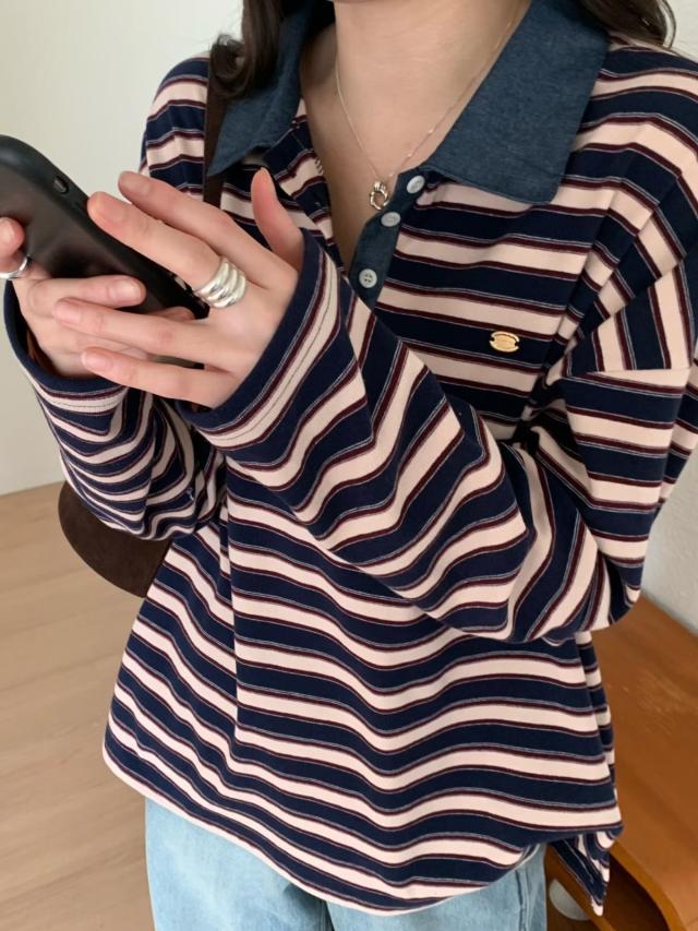 V領條紋長袖TEE(LIVE SALE)