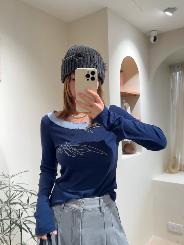 透視鏤空菱格針織長袖TEE(LIVE SALE)