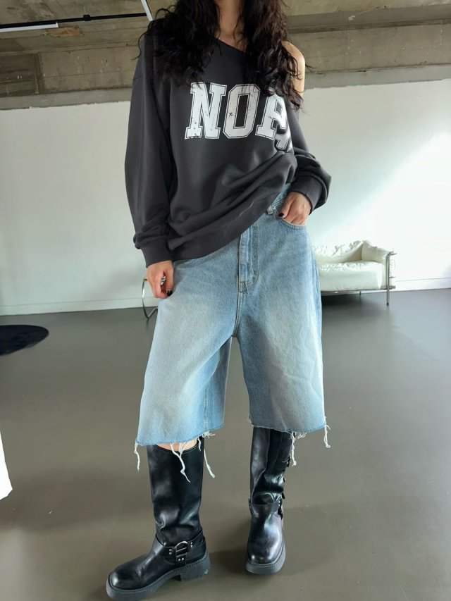一字肩刺繡英文衛衣(LIVE SALE)