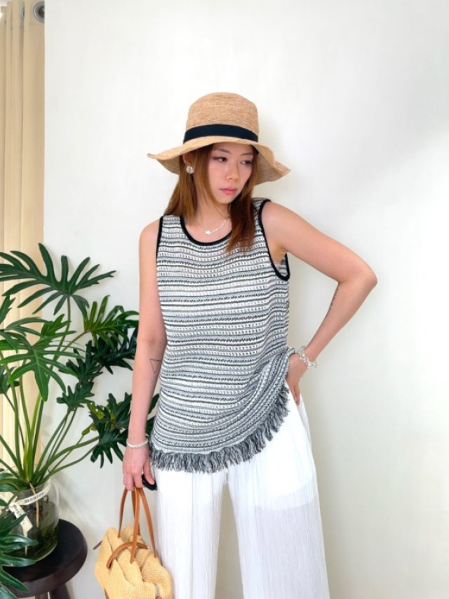 流蘇鏤空針織條紋背心(LIVE SALE)