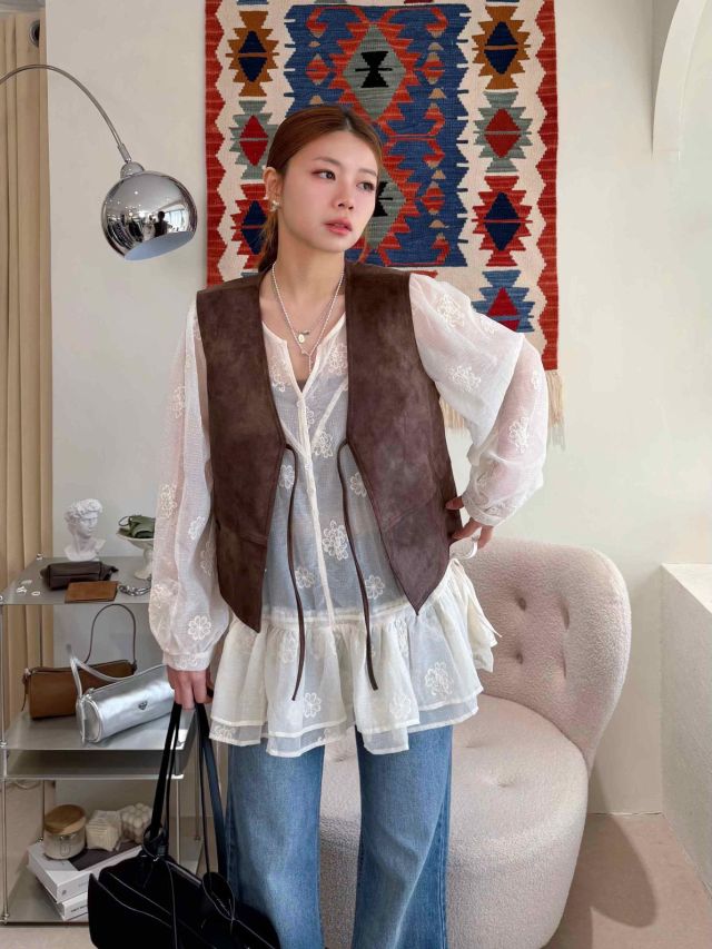 鹿皮絨無袖綁繩馬甲