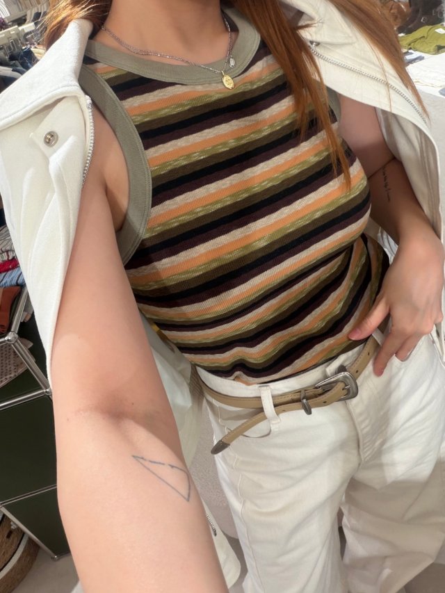撞色無袖條紋背心