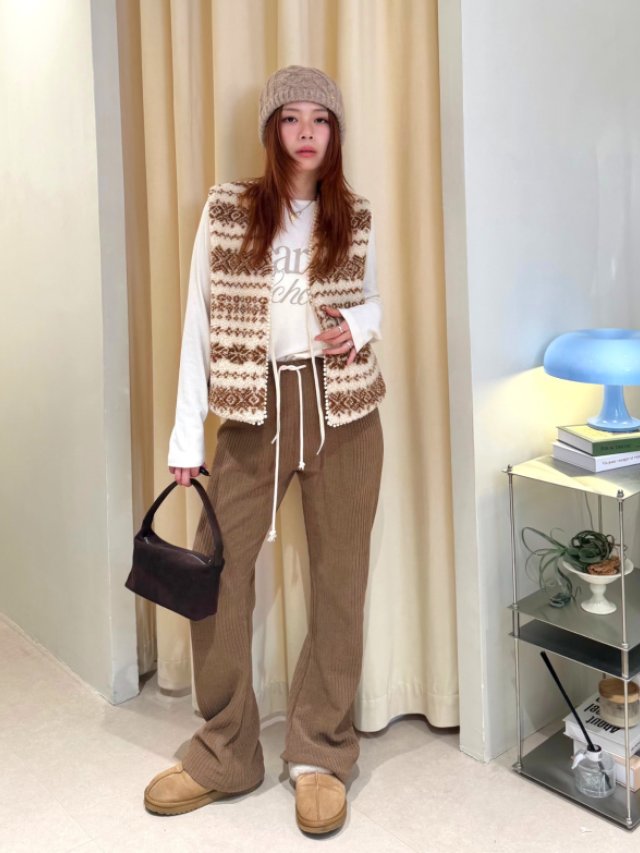 印花羊羔毛綁繩馬甲(LIVE SALE)