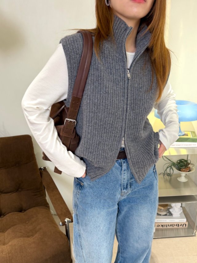 翻領企領拉鏈毛衣外套(LIVE SALE)