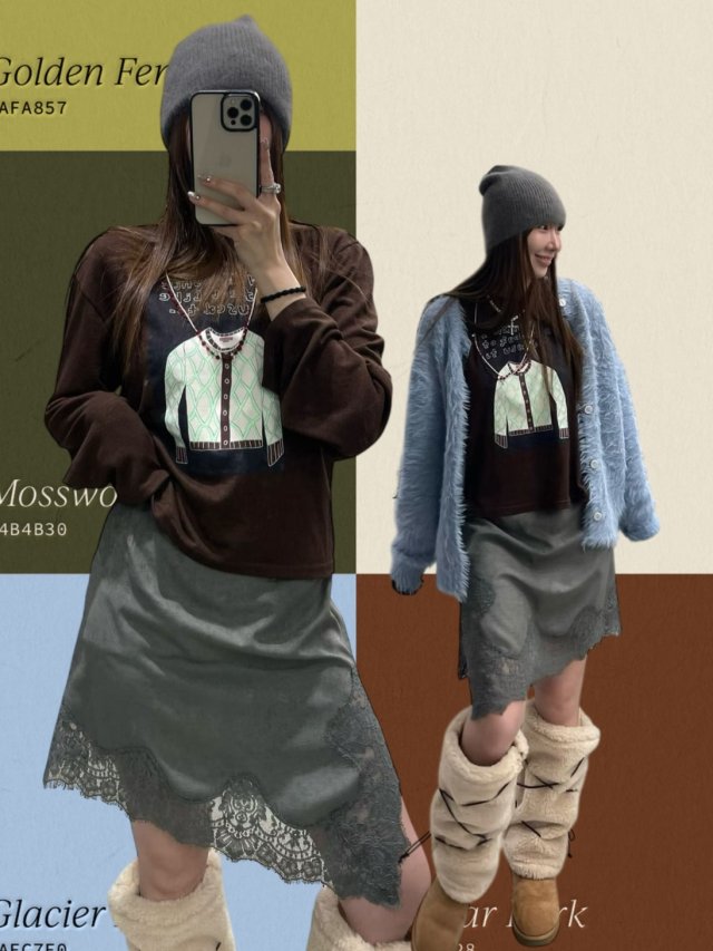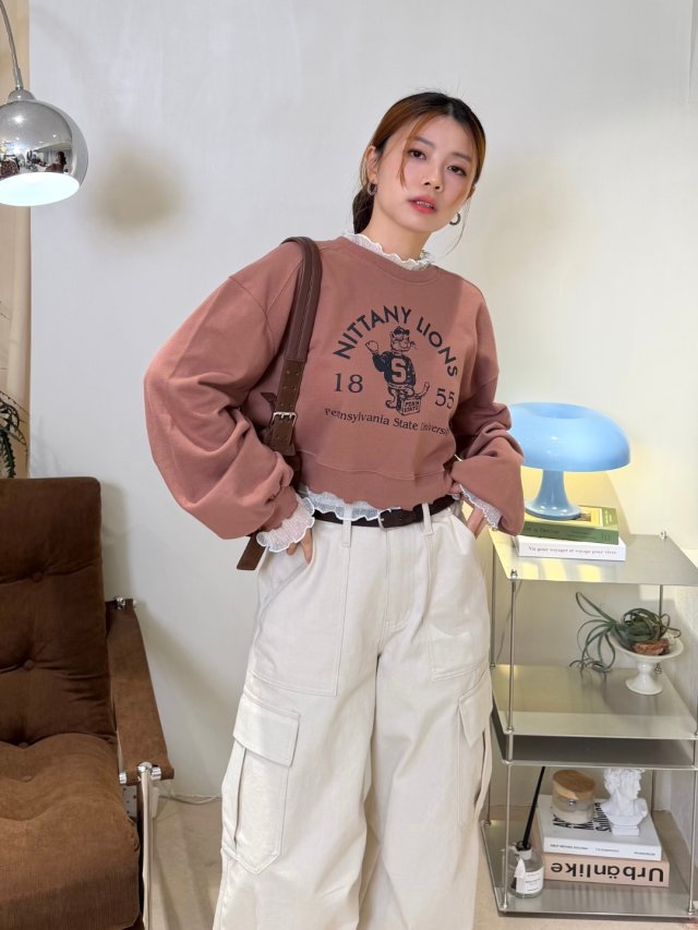 假兩件花邊小貓印花衛衣(LIVE SALE)