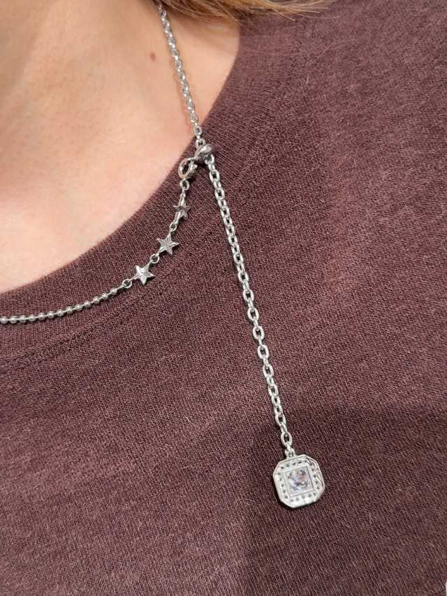 925銀 五角星抽拉y字方鑽項鏈(LIVE SALE)