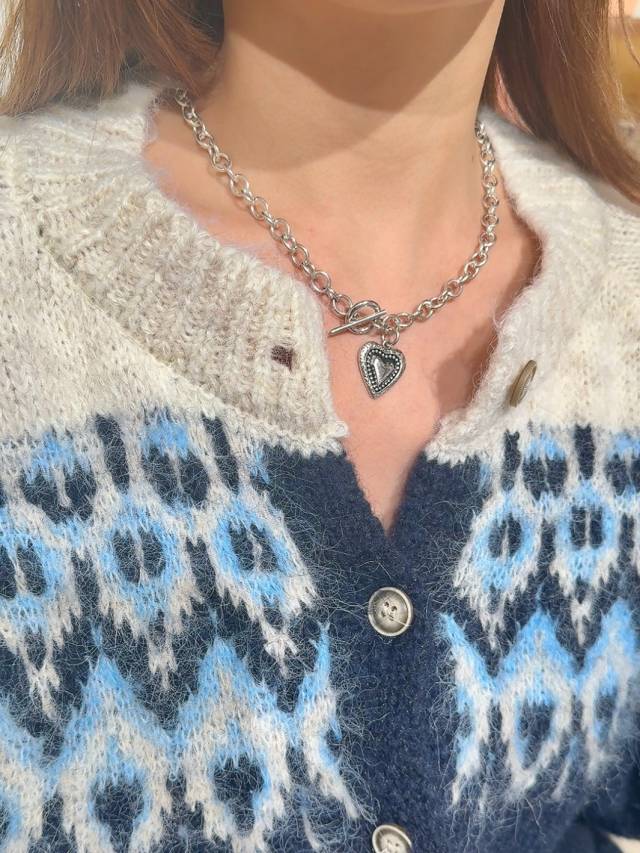 925銀 做舊紋理復古愛心項鏈(LIVE SALE)