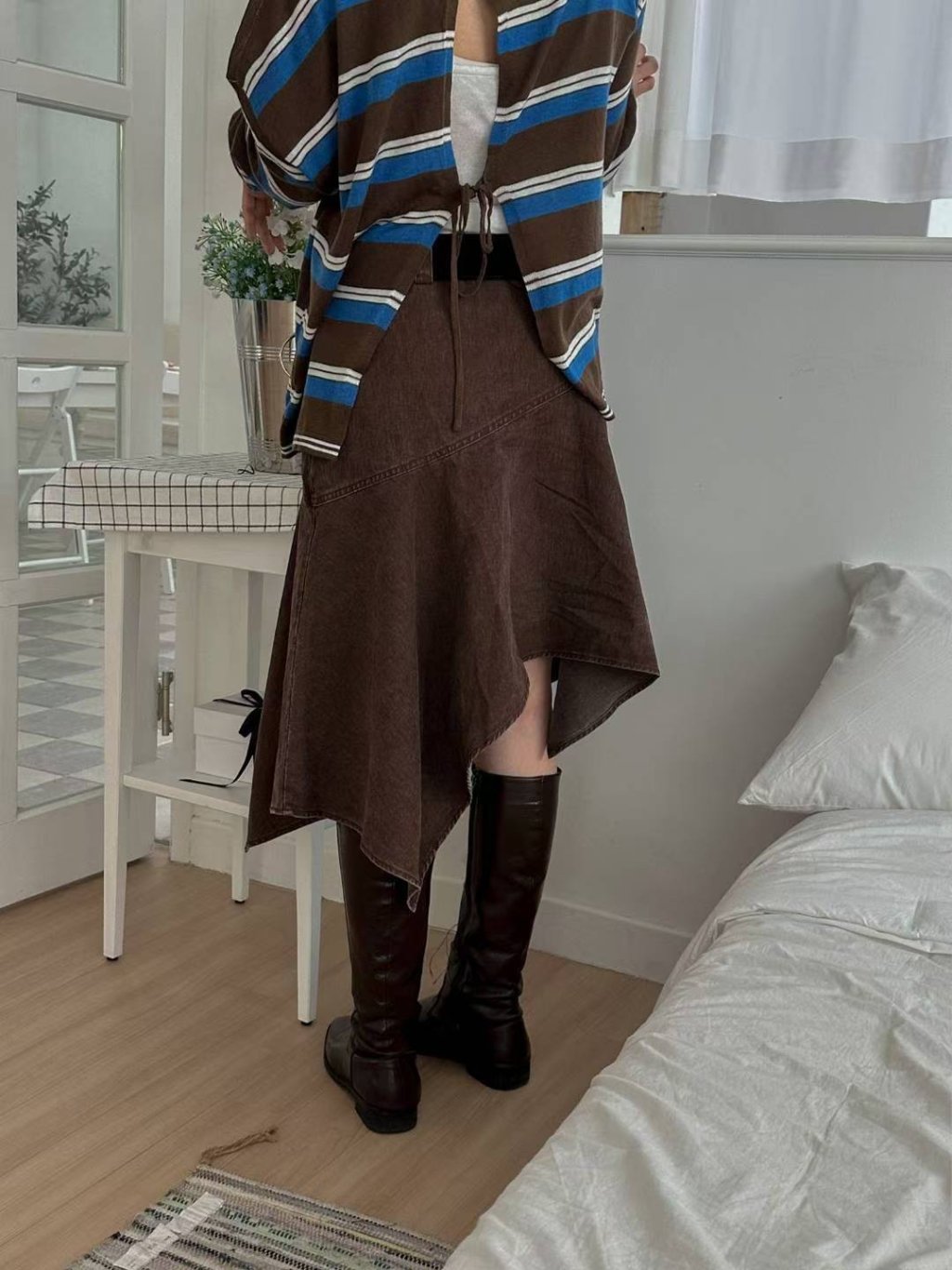 主頁 不規則拼接裙擺高腰牛仔半截裙