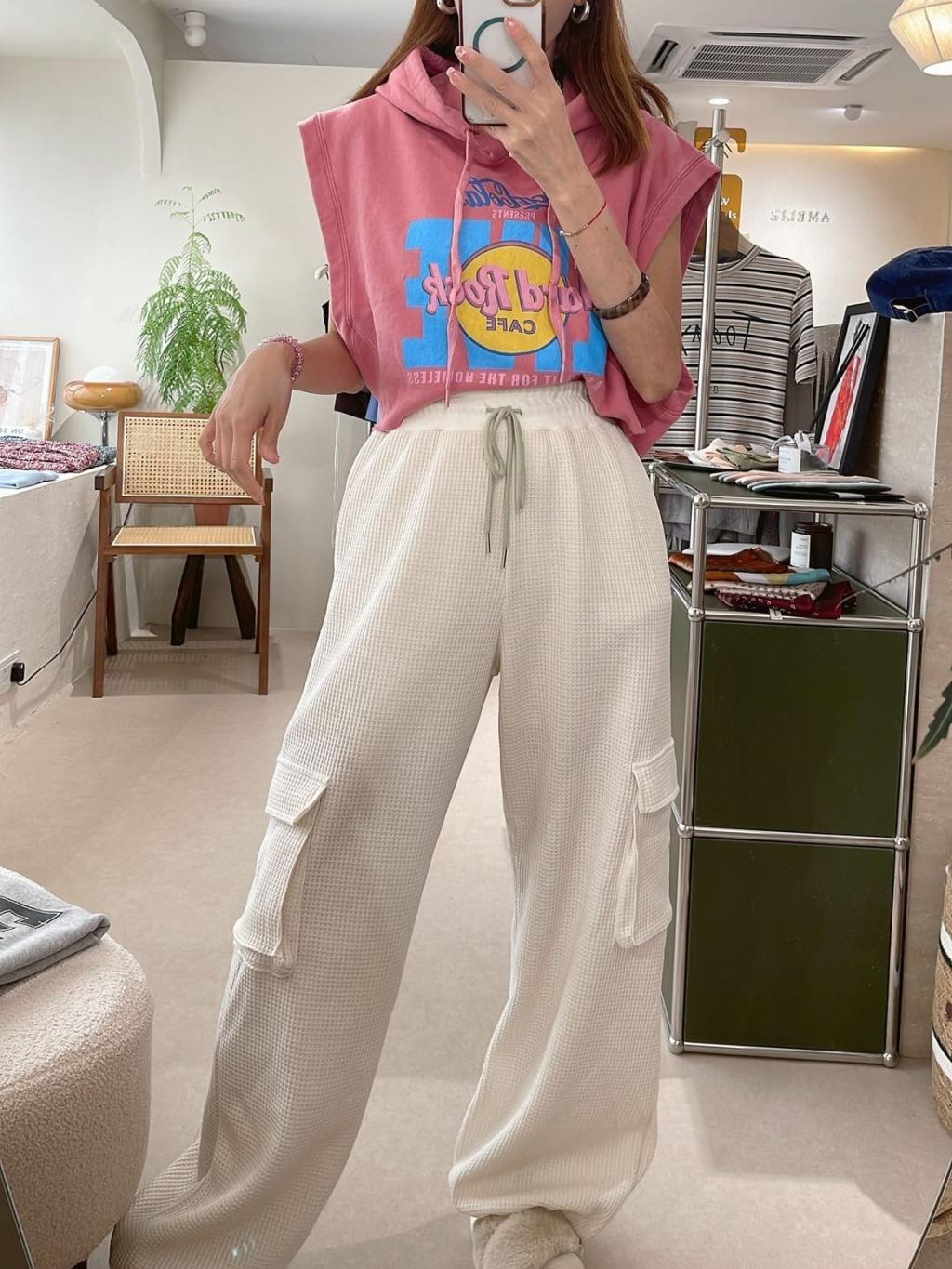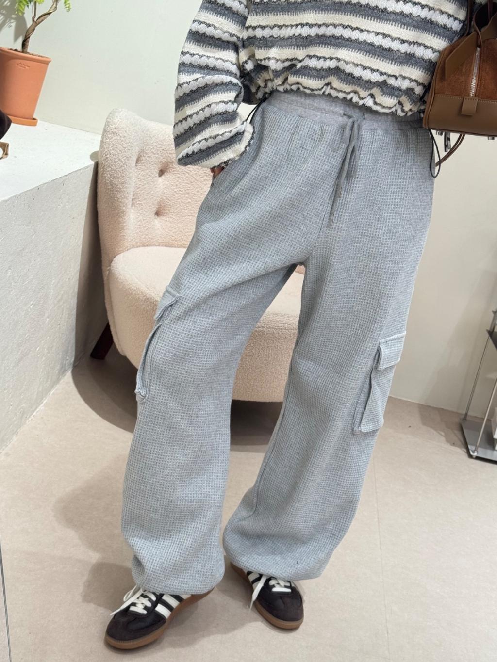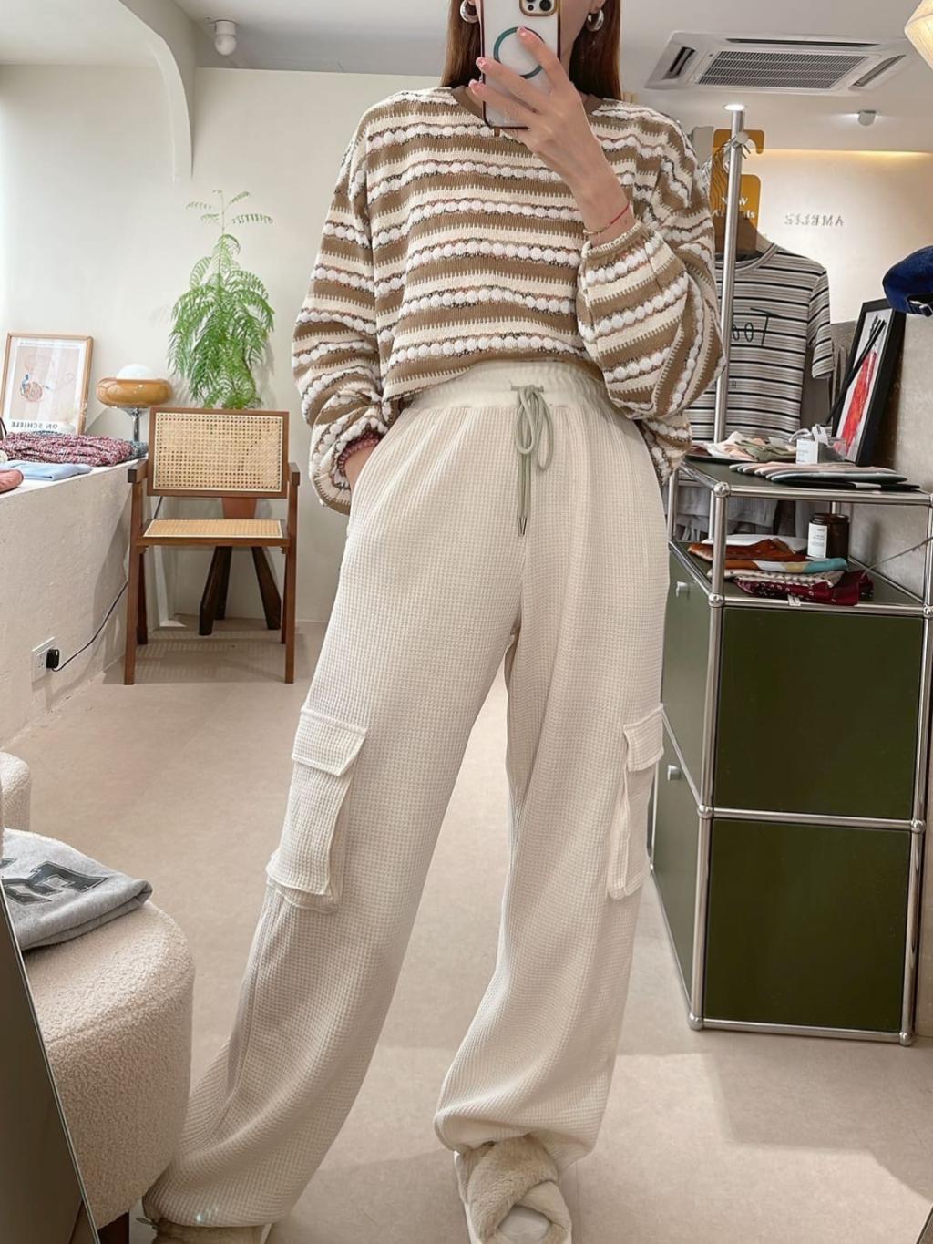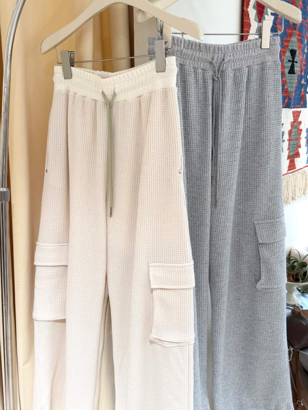 橡根腰抽繩華夫格休閒長褲(LIVE SALE)