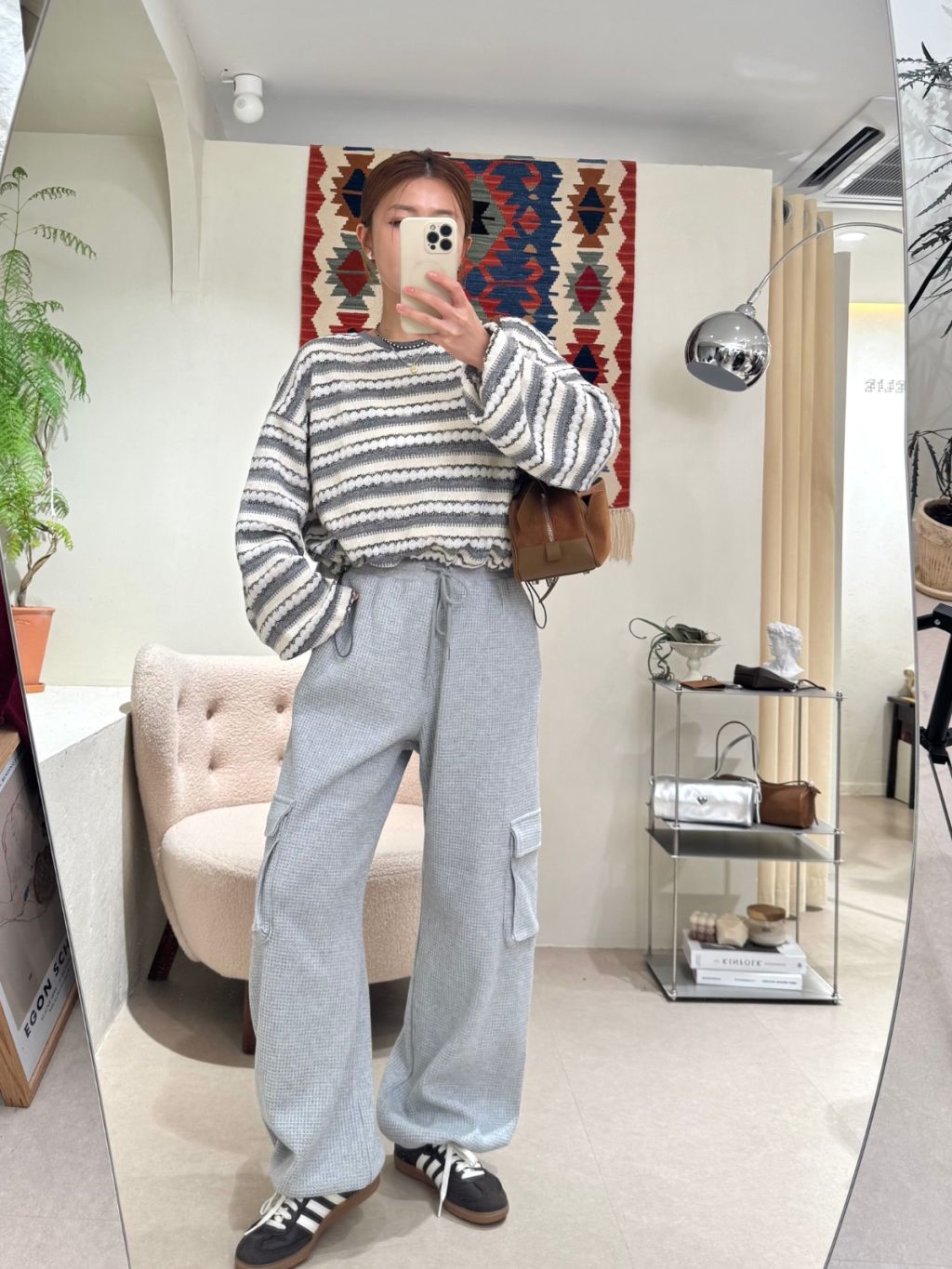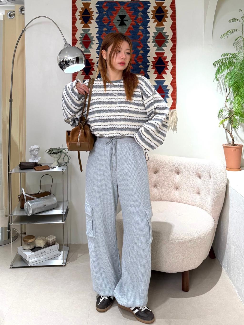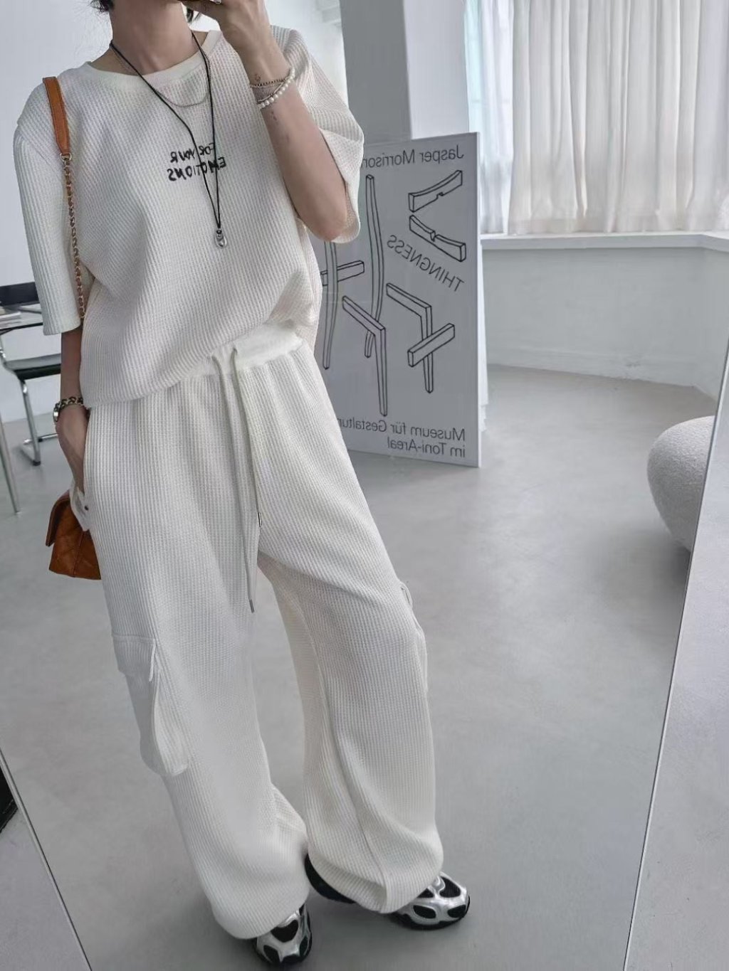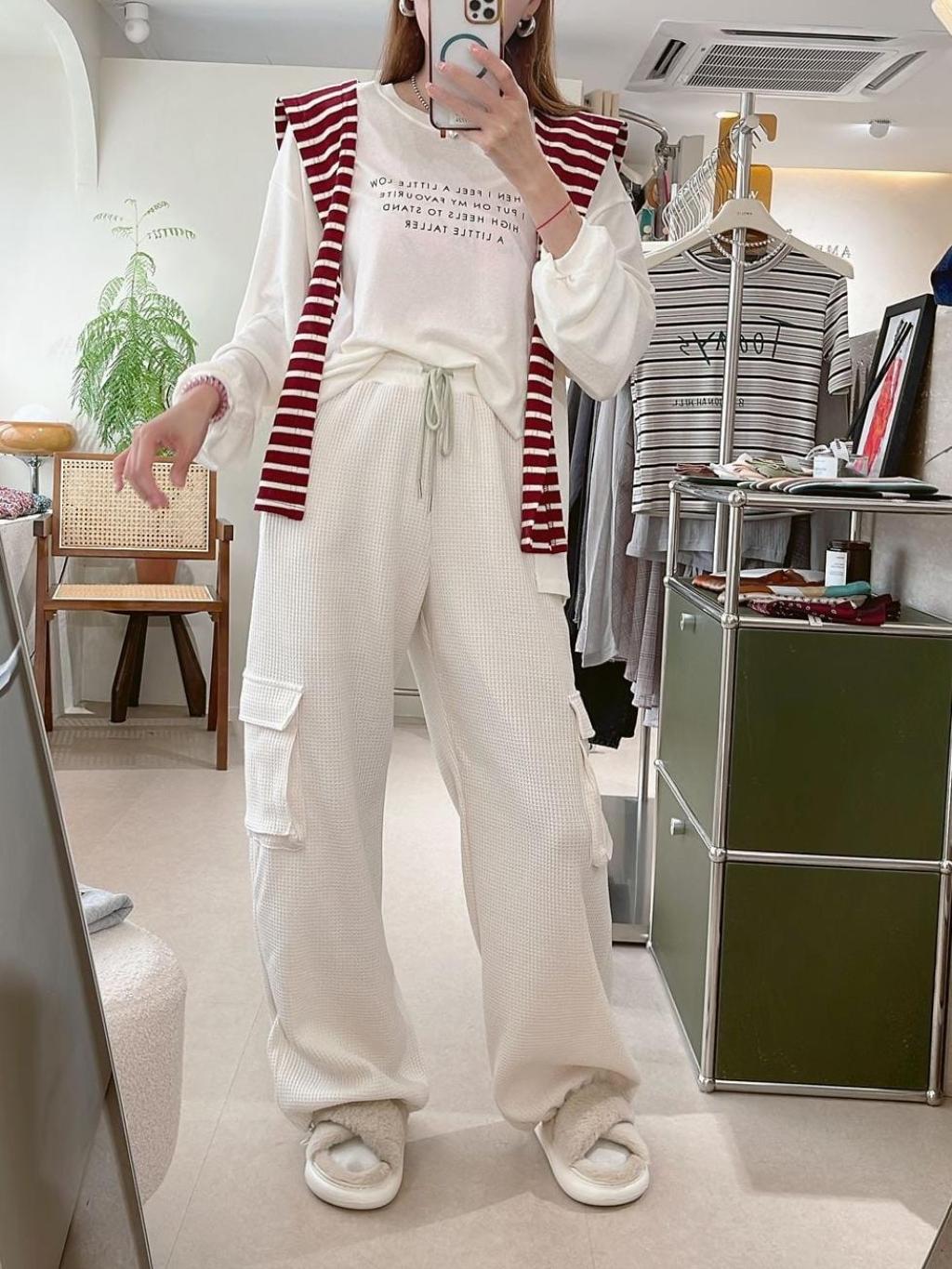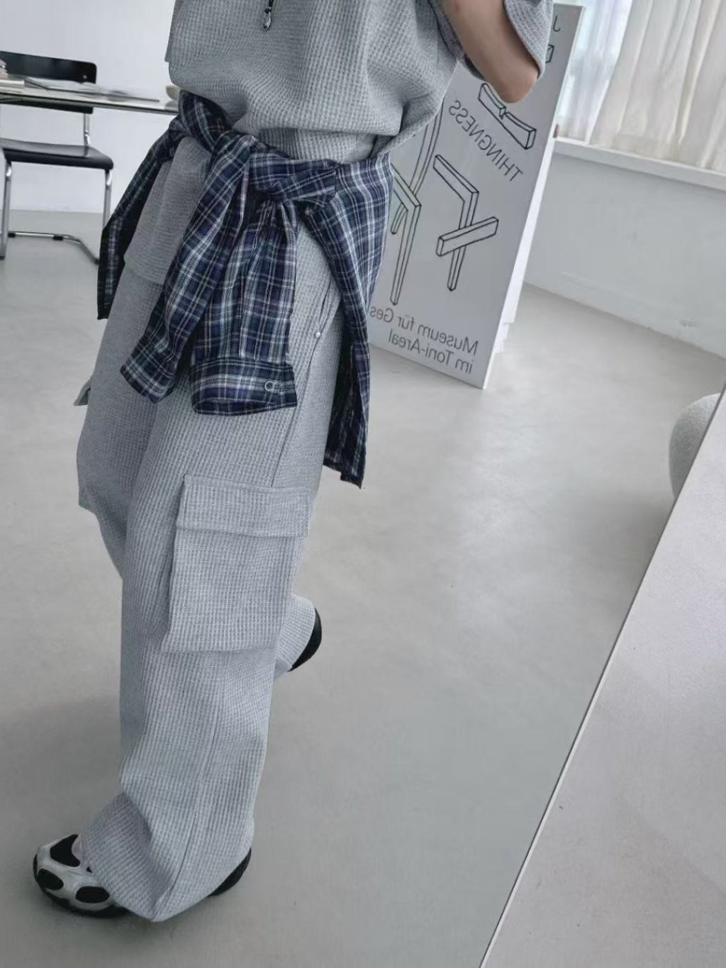 橡根腰抽繩華夫格休閒長褲(LIVE SALE)
