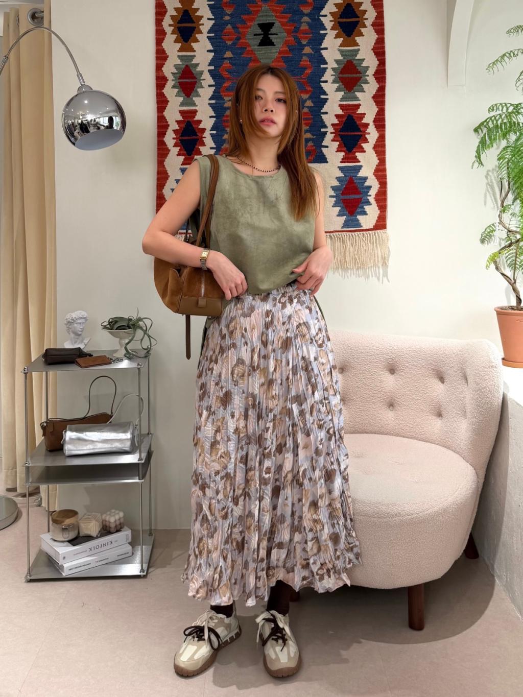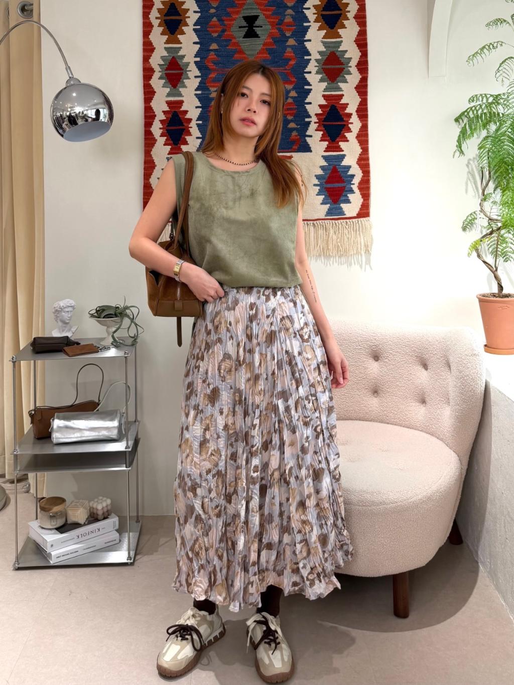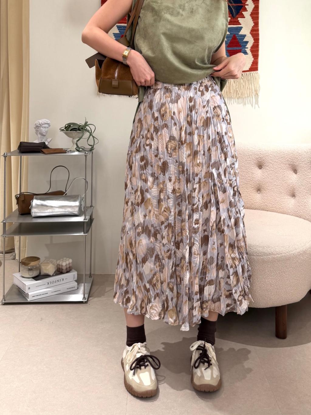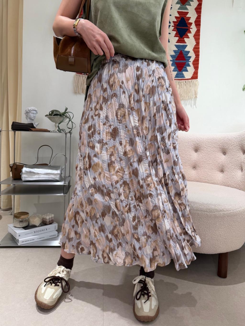 碎花褶皺大裙擺半截裙(LIVE SALE)