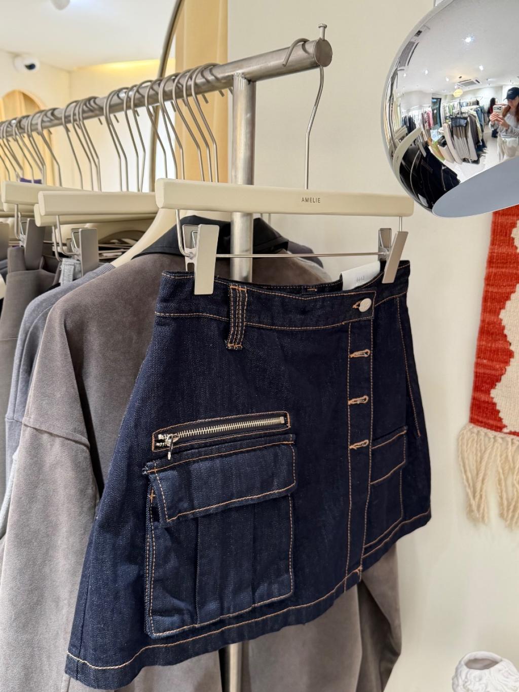 6643明線不對稱口袋單排扣半截裙(LIVE SALE)