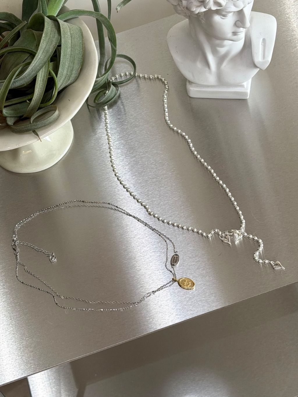 925銀兩條疊戴吊墜頸鏈(LIVE SALE)