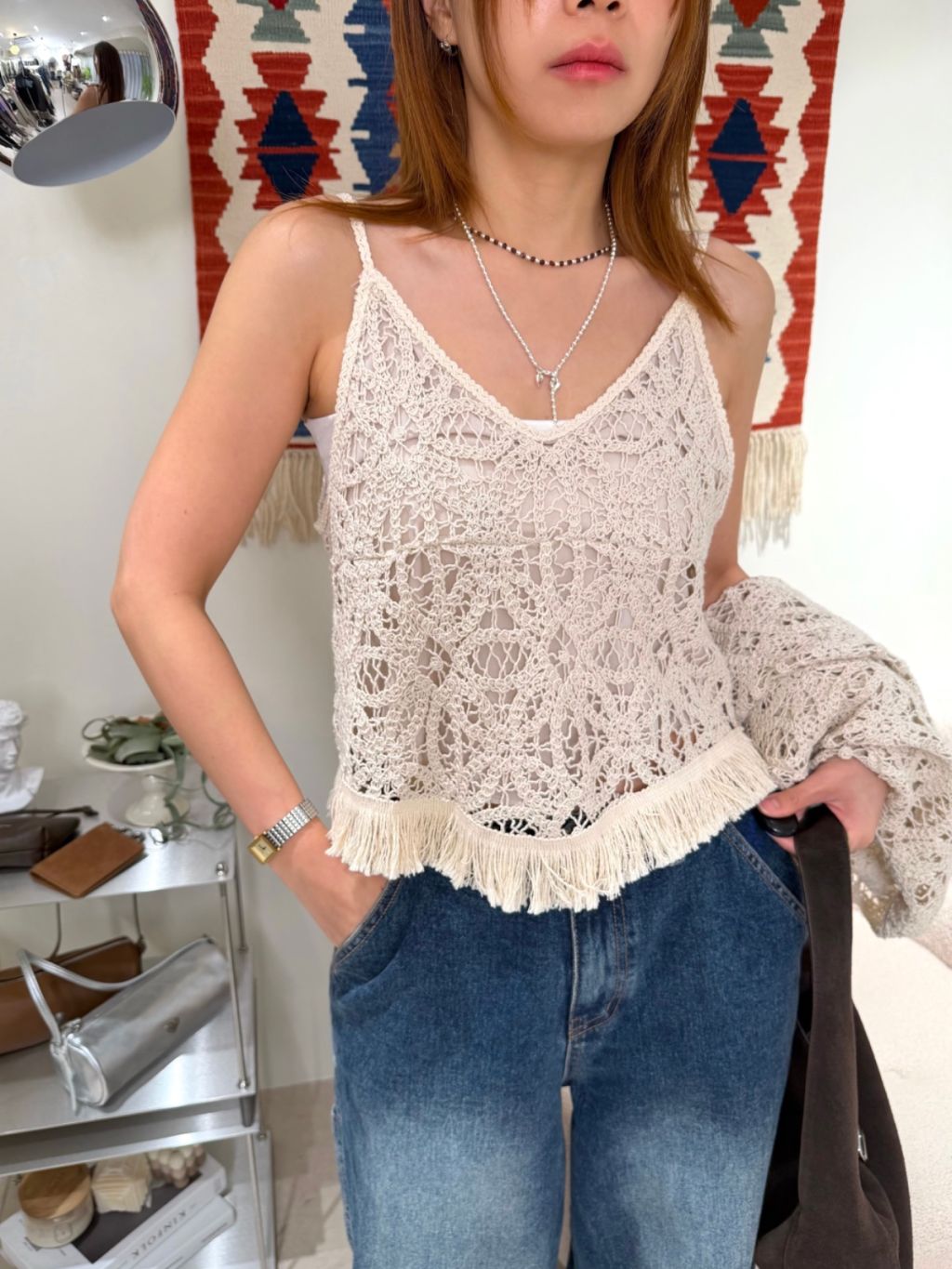 流蘇鏤空鉤花吊帶背心(LIVE SALE)