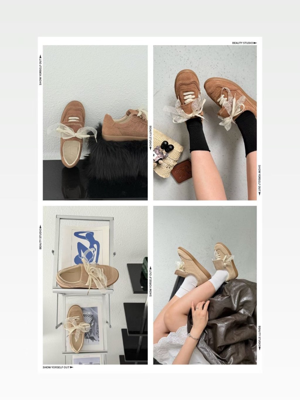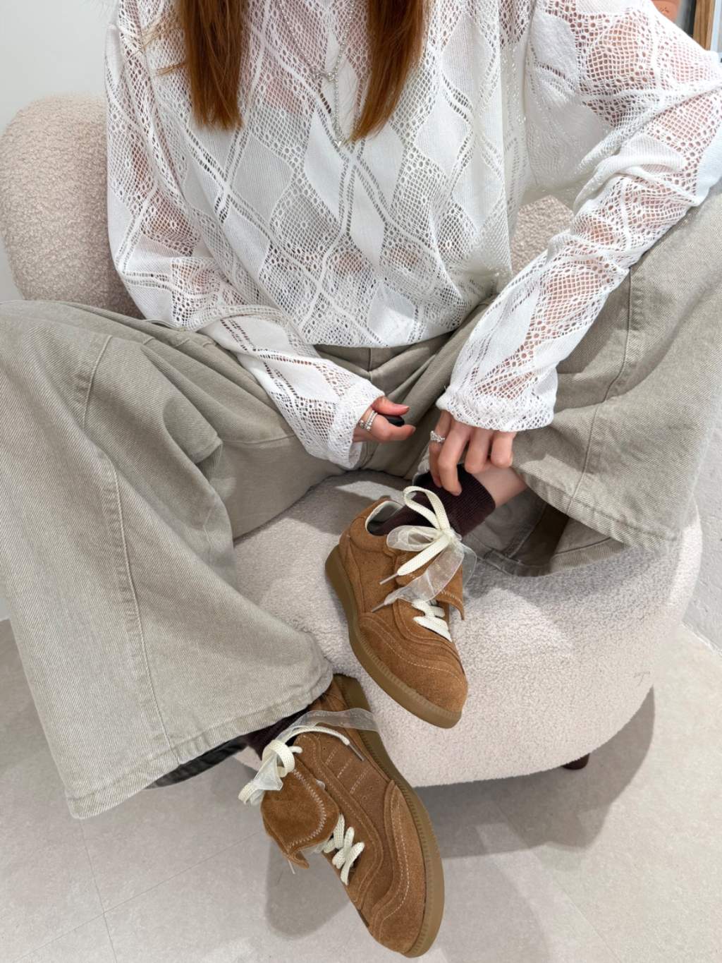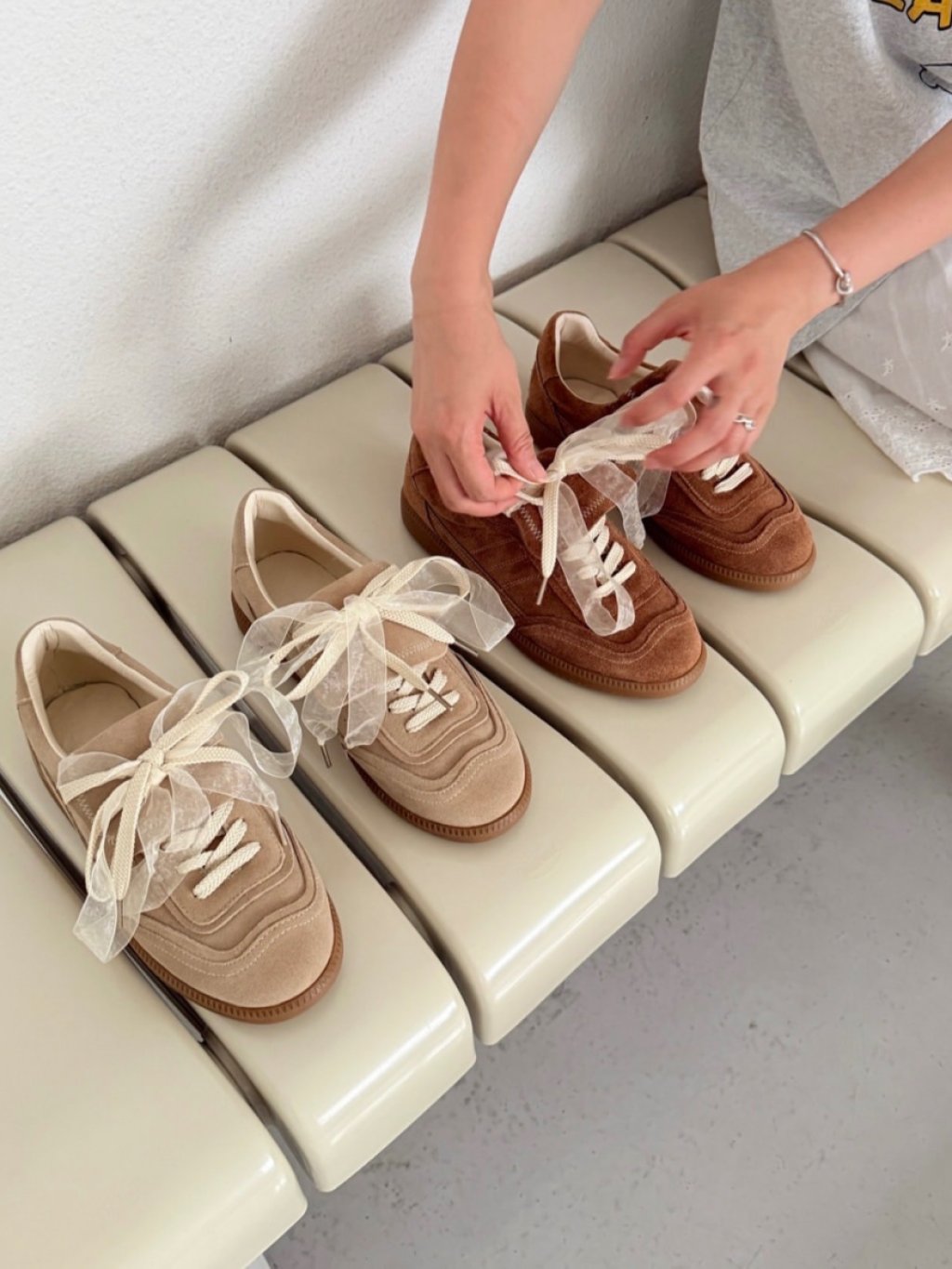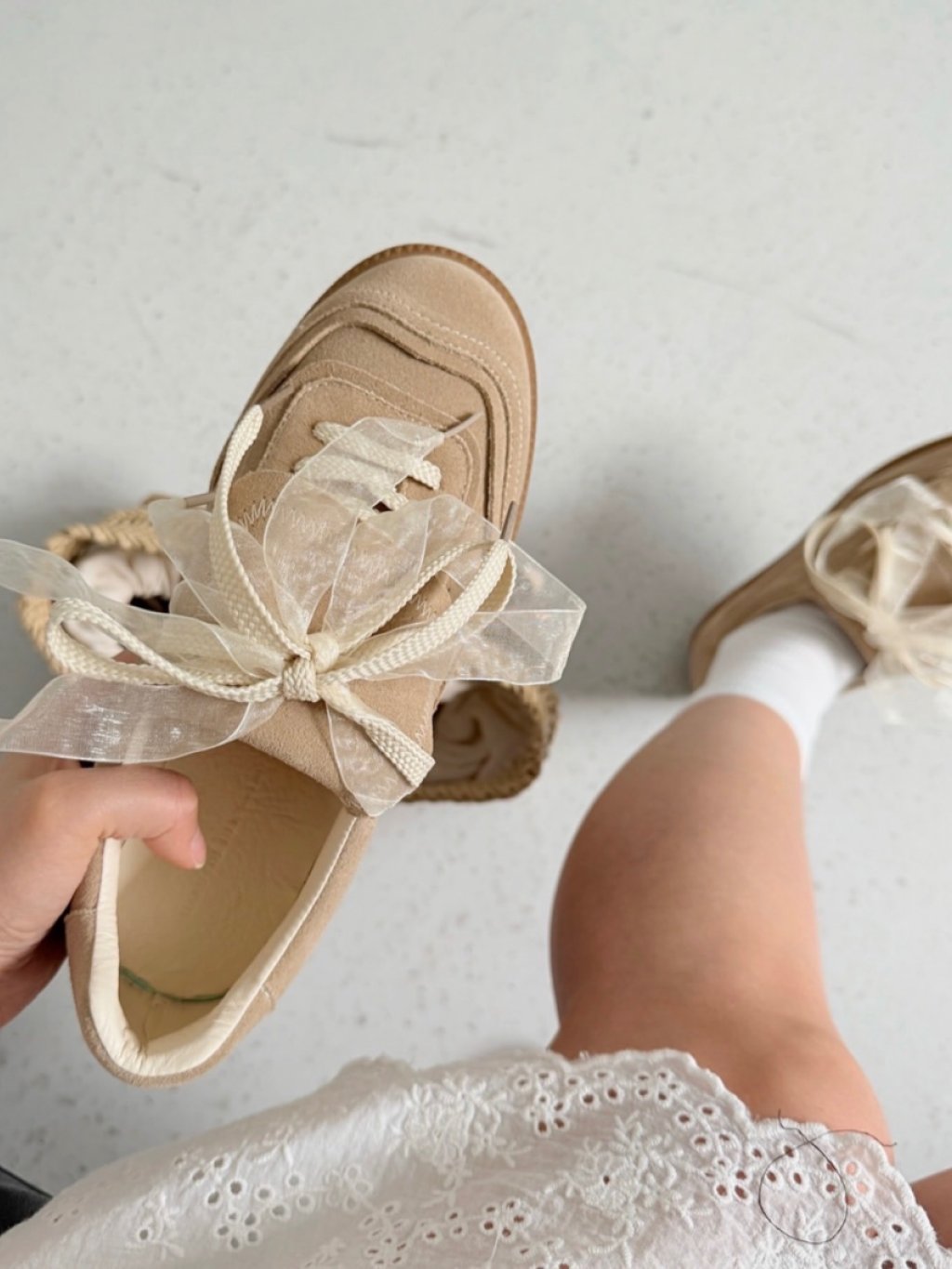 真皮蕾絲鞋帶德訓圓頭鞋(LIVE SALE)