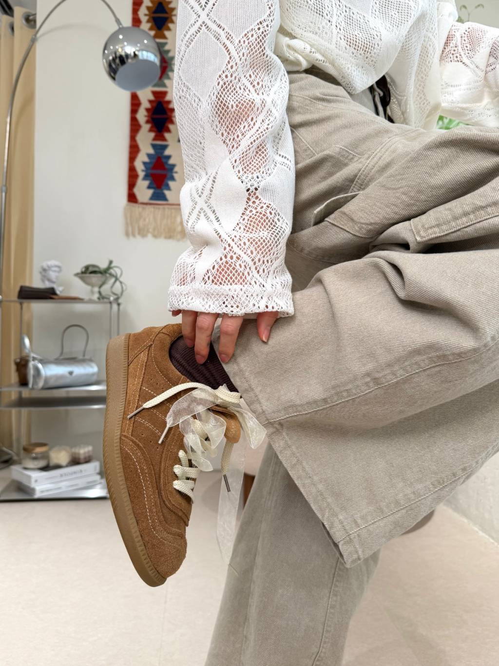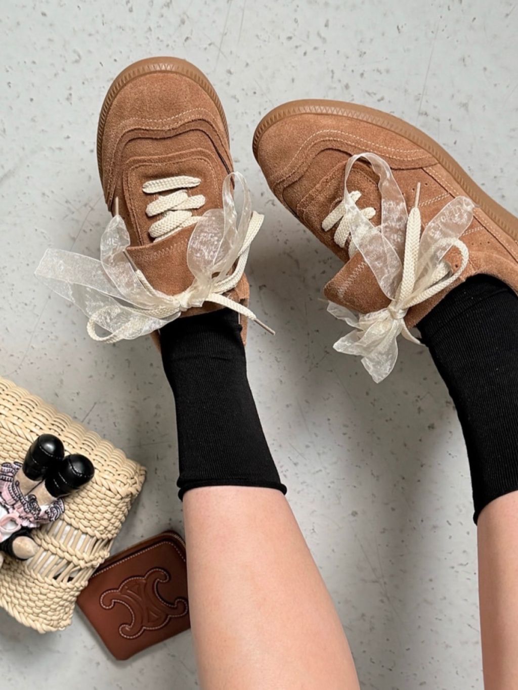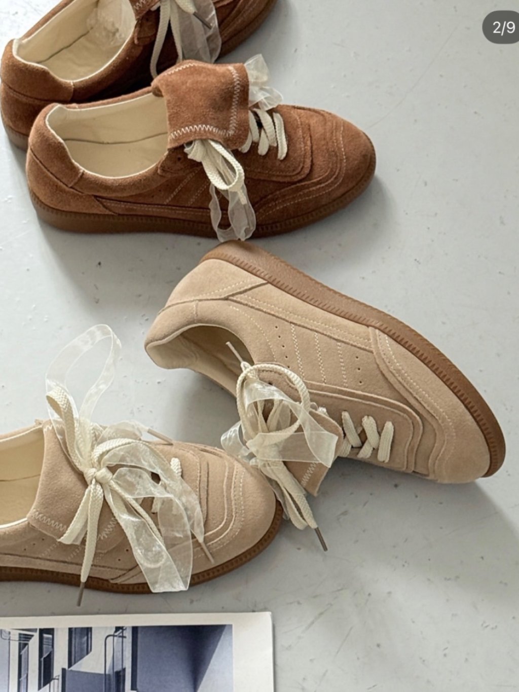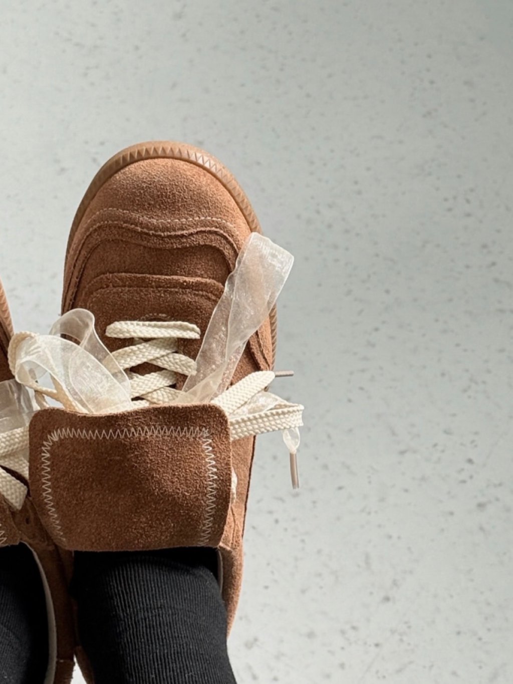 真皮蕾絲鞋帶德訓圓頭鞋(LIVE SALE)