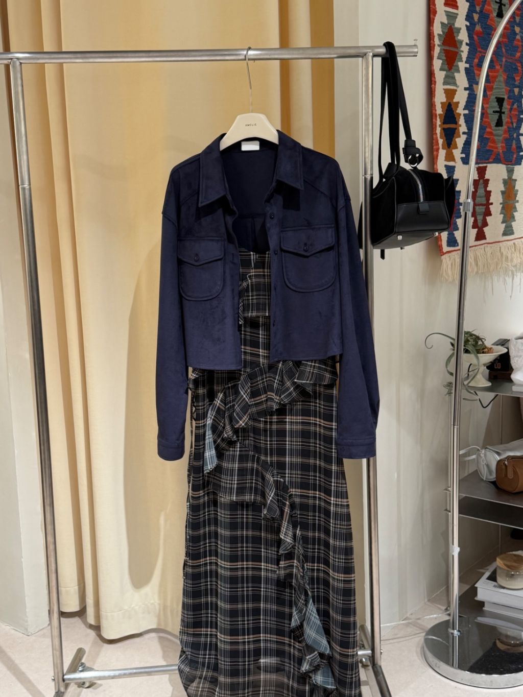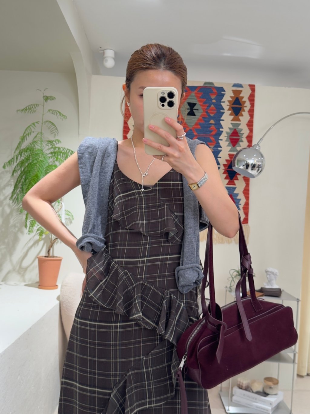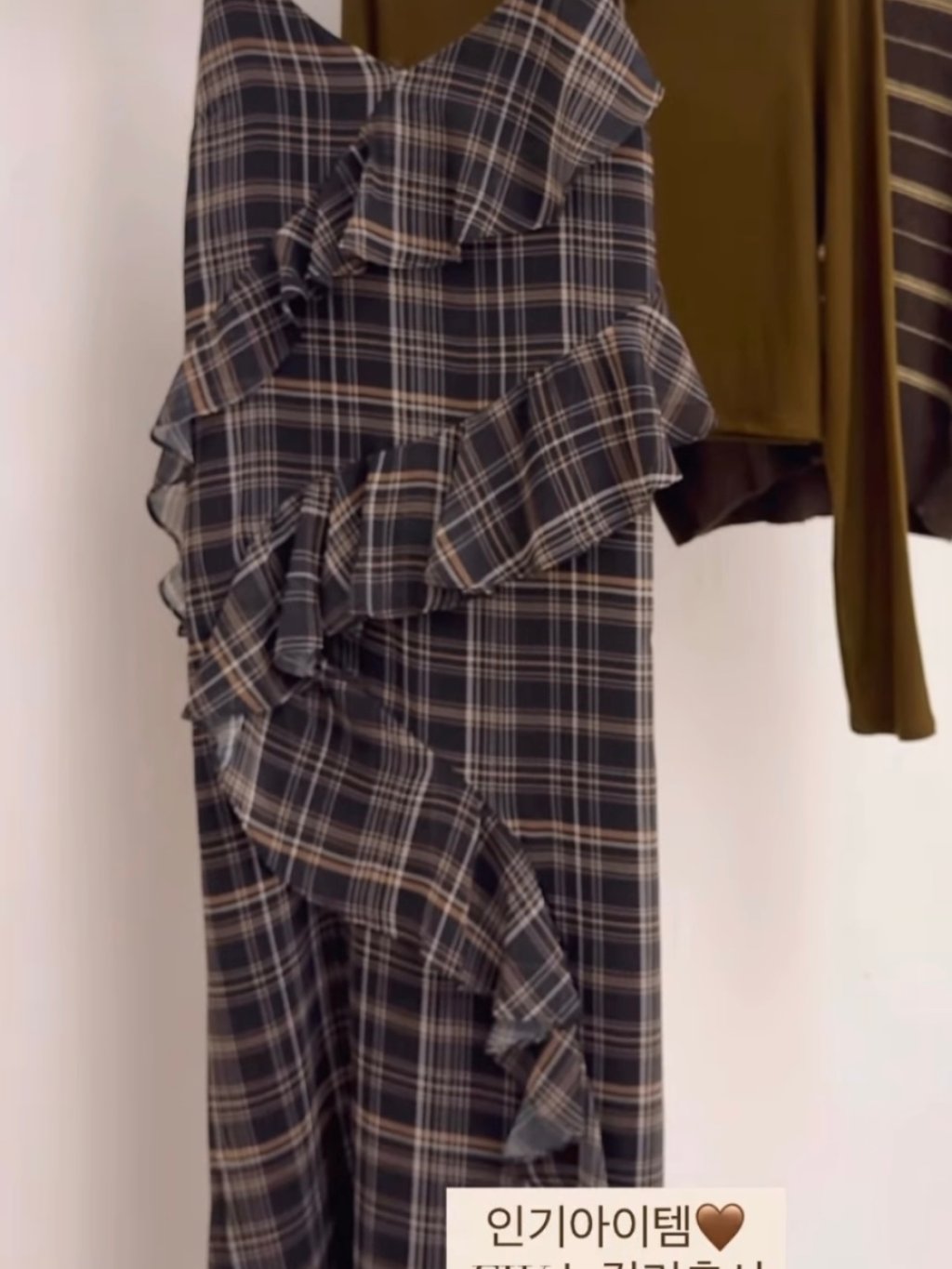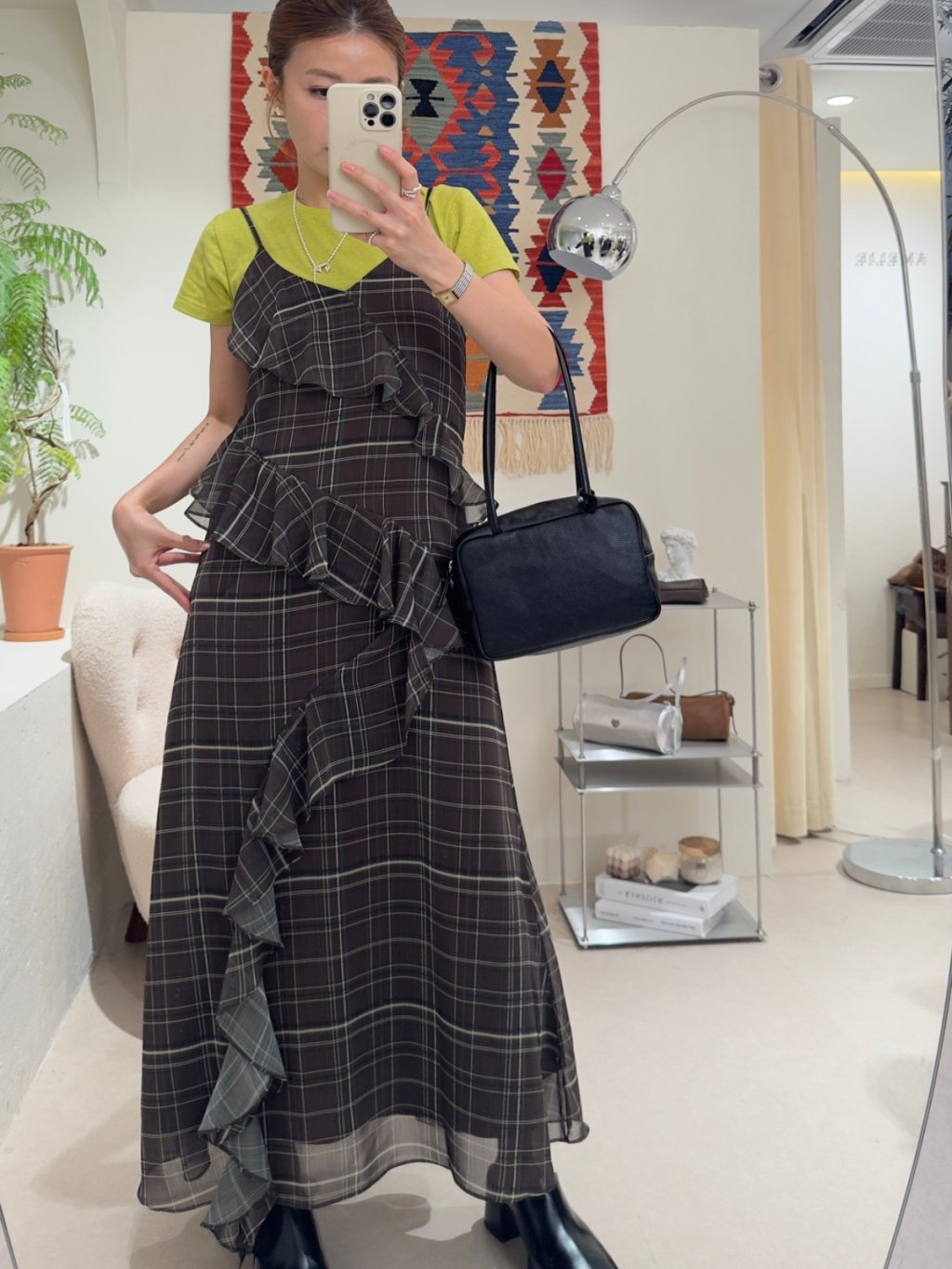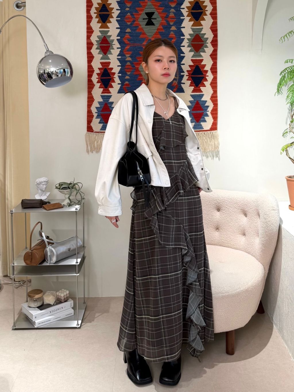 主頁 格紋V領花邊吊帶裙OPS(LIVE SALE)