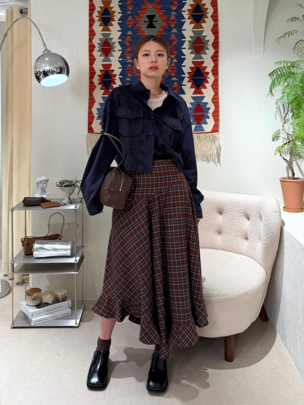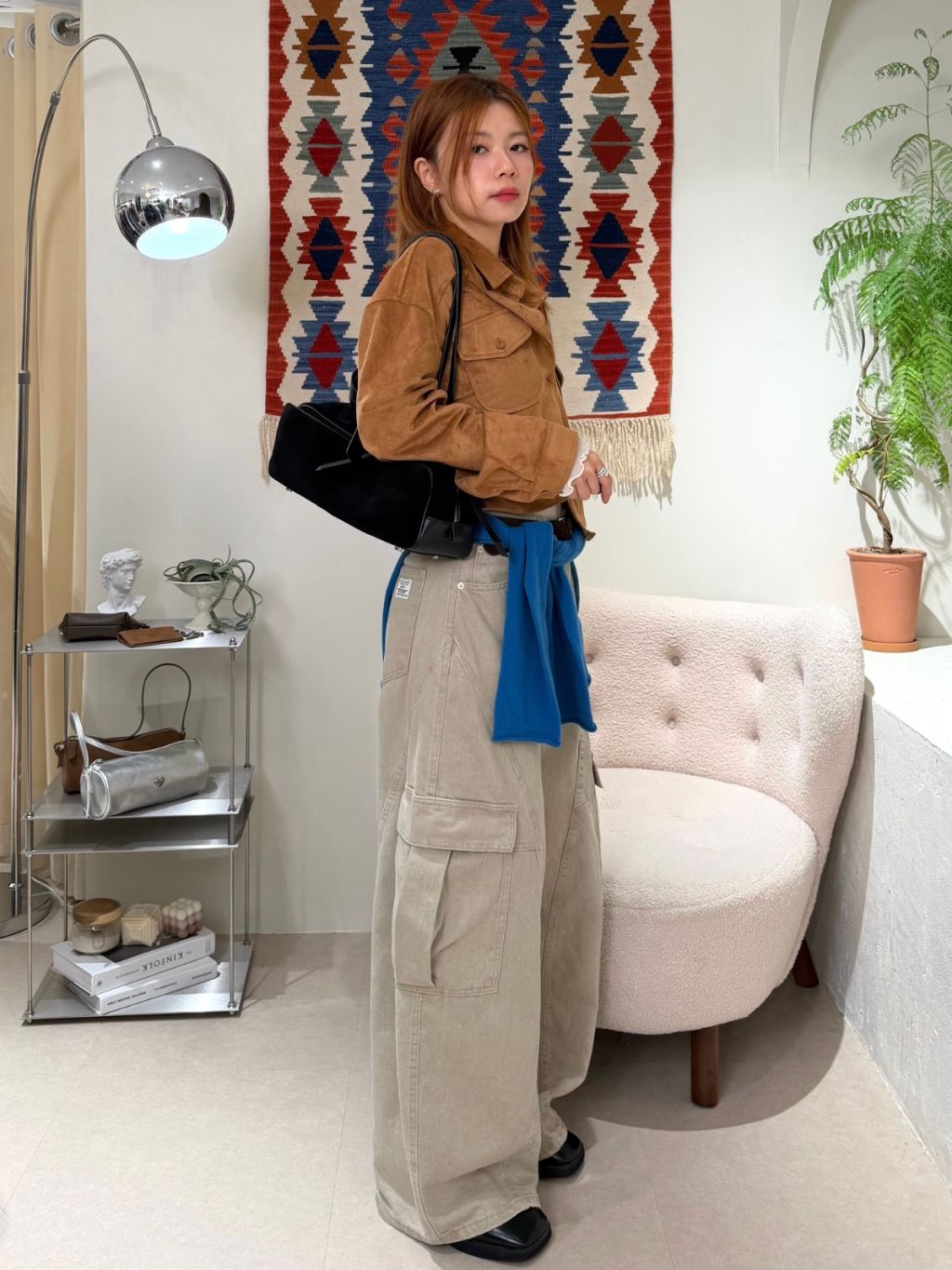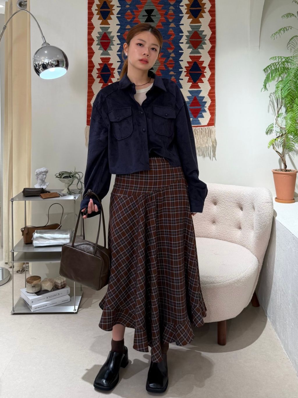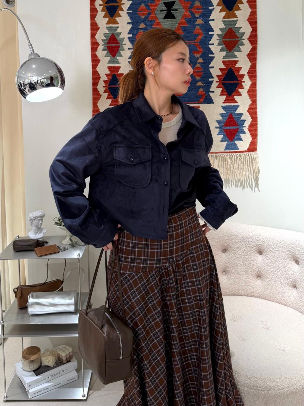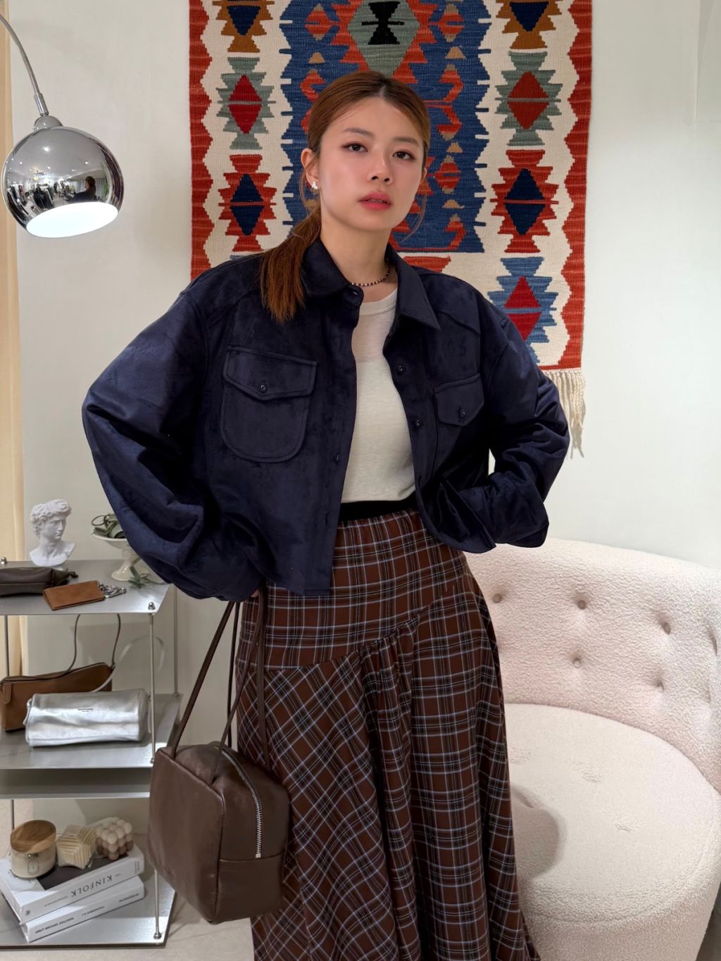 鹿皮絨口袋翻領短款長袖襯衫(LIVE SALE)