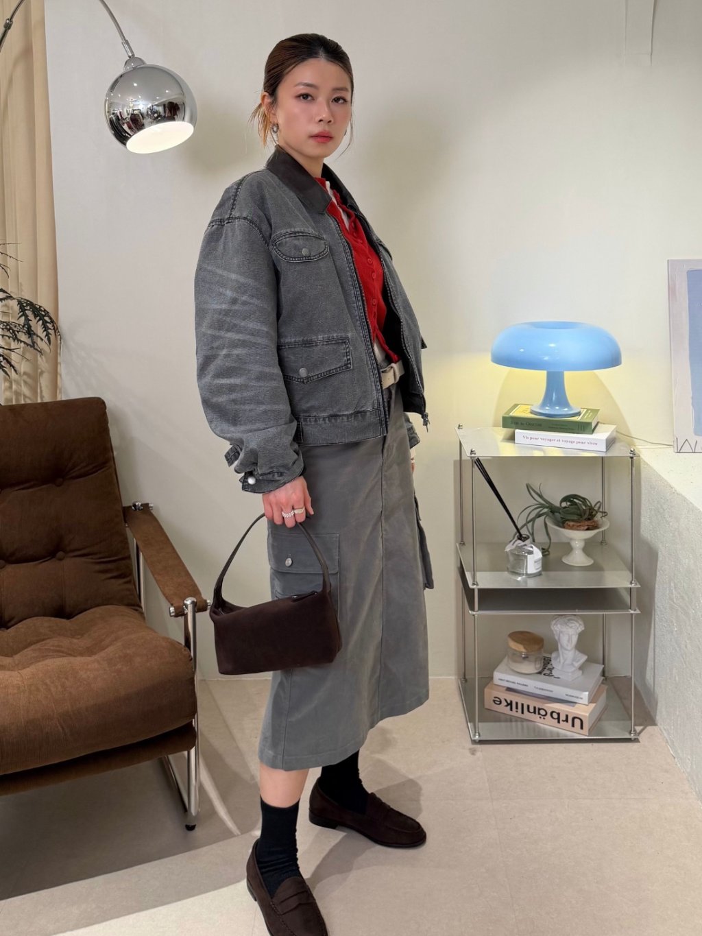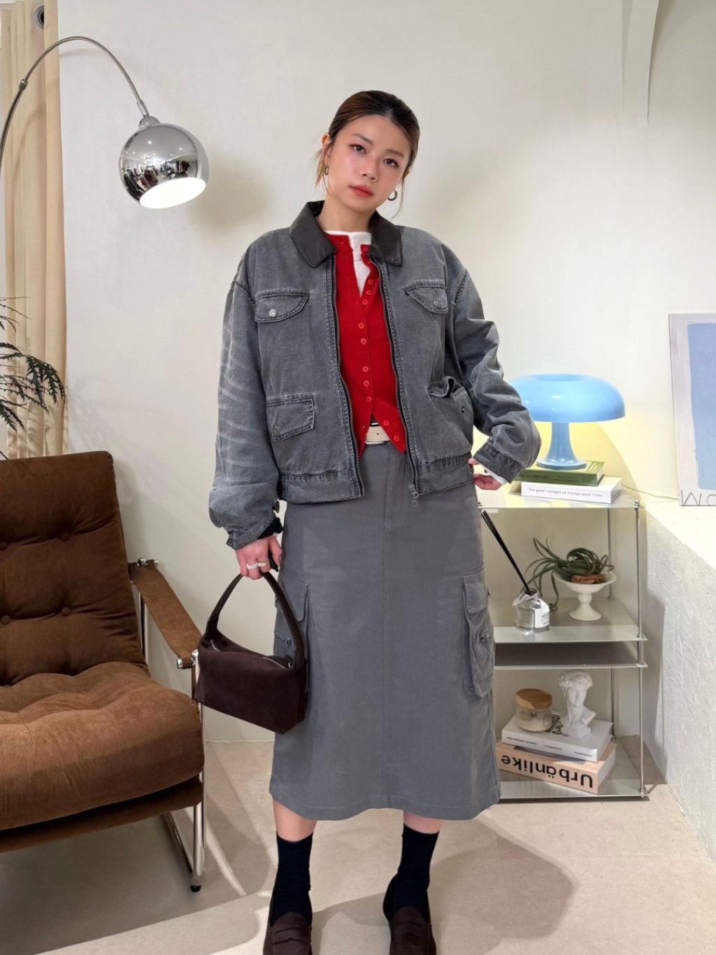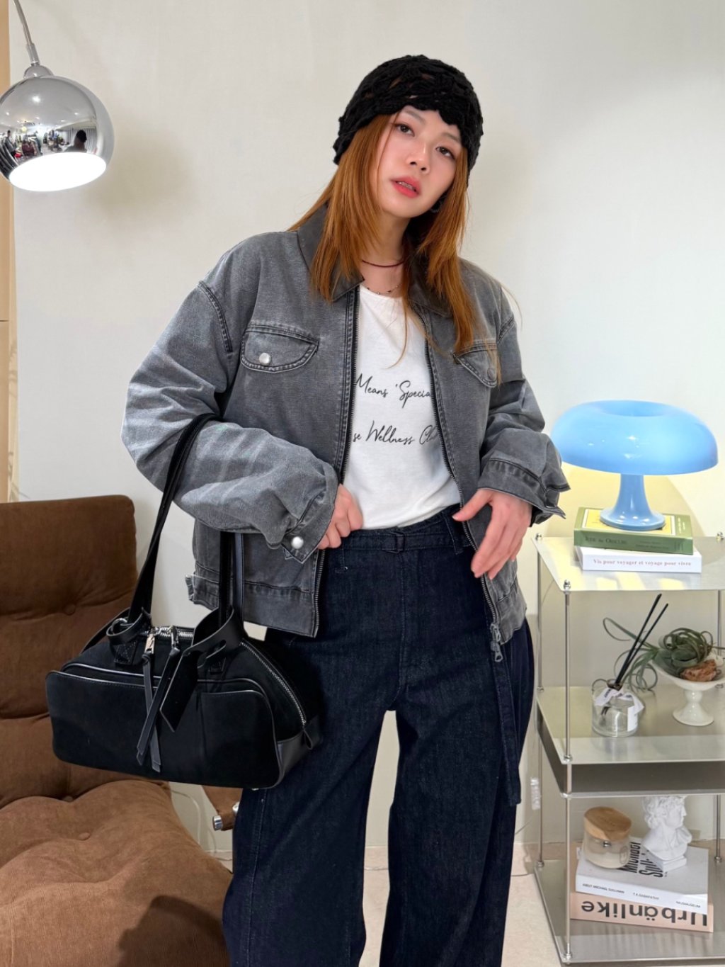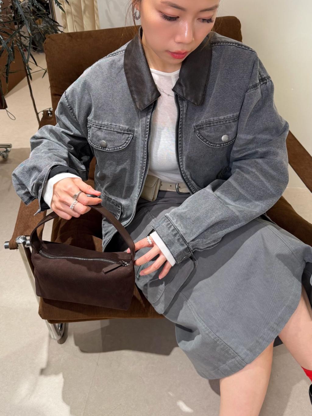 水洗灰拼接皮領夾克(LIVE SALE)
