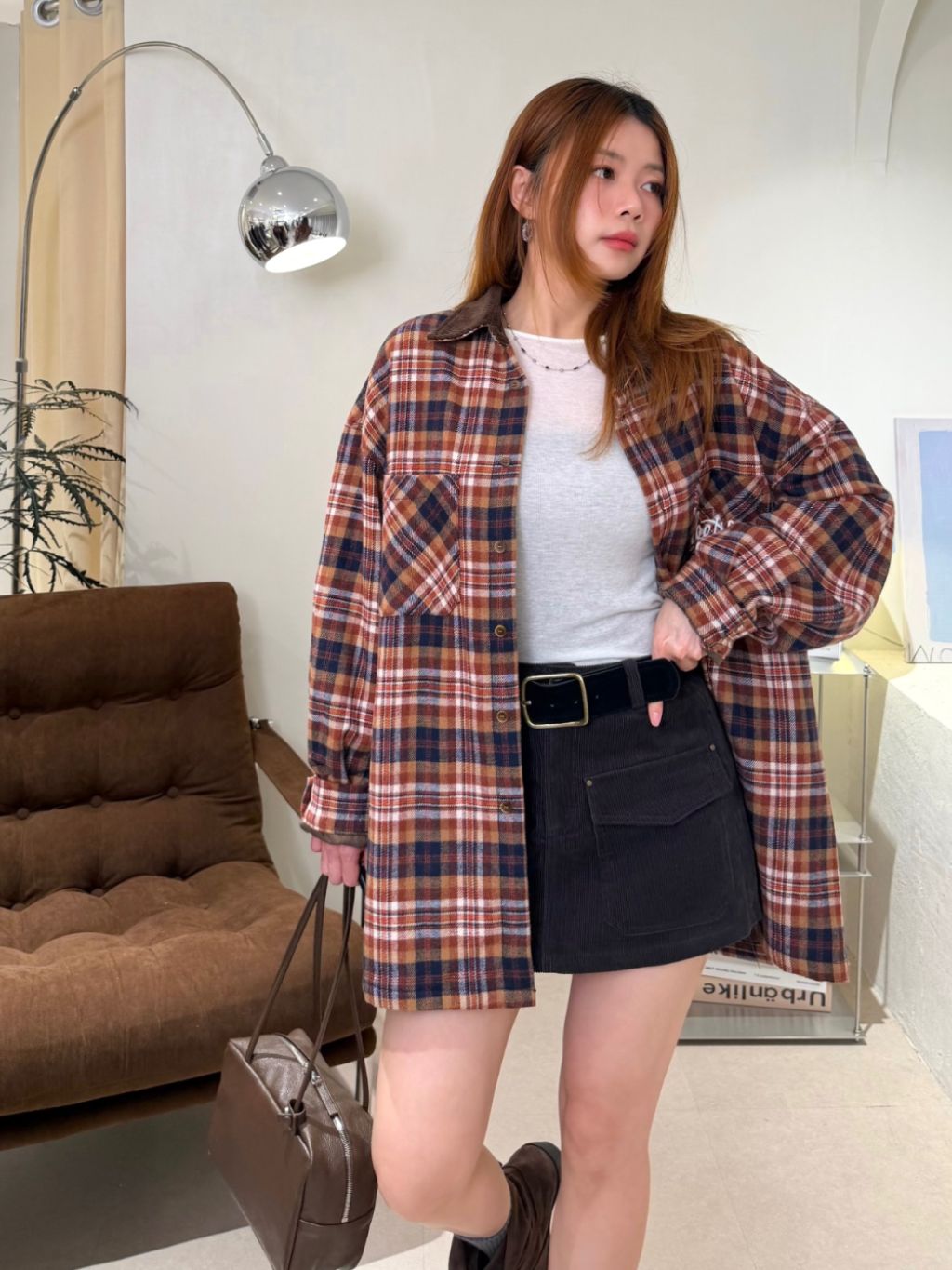 主頁 夾棉格紋襯衫(LIVE SALE)