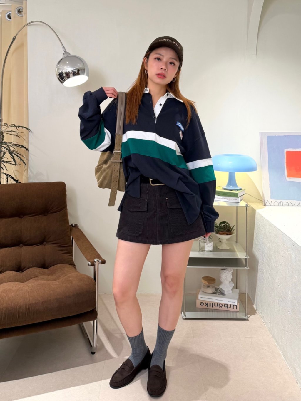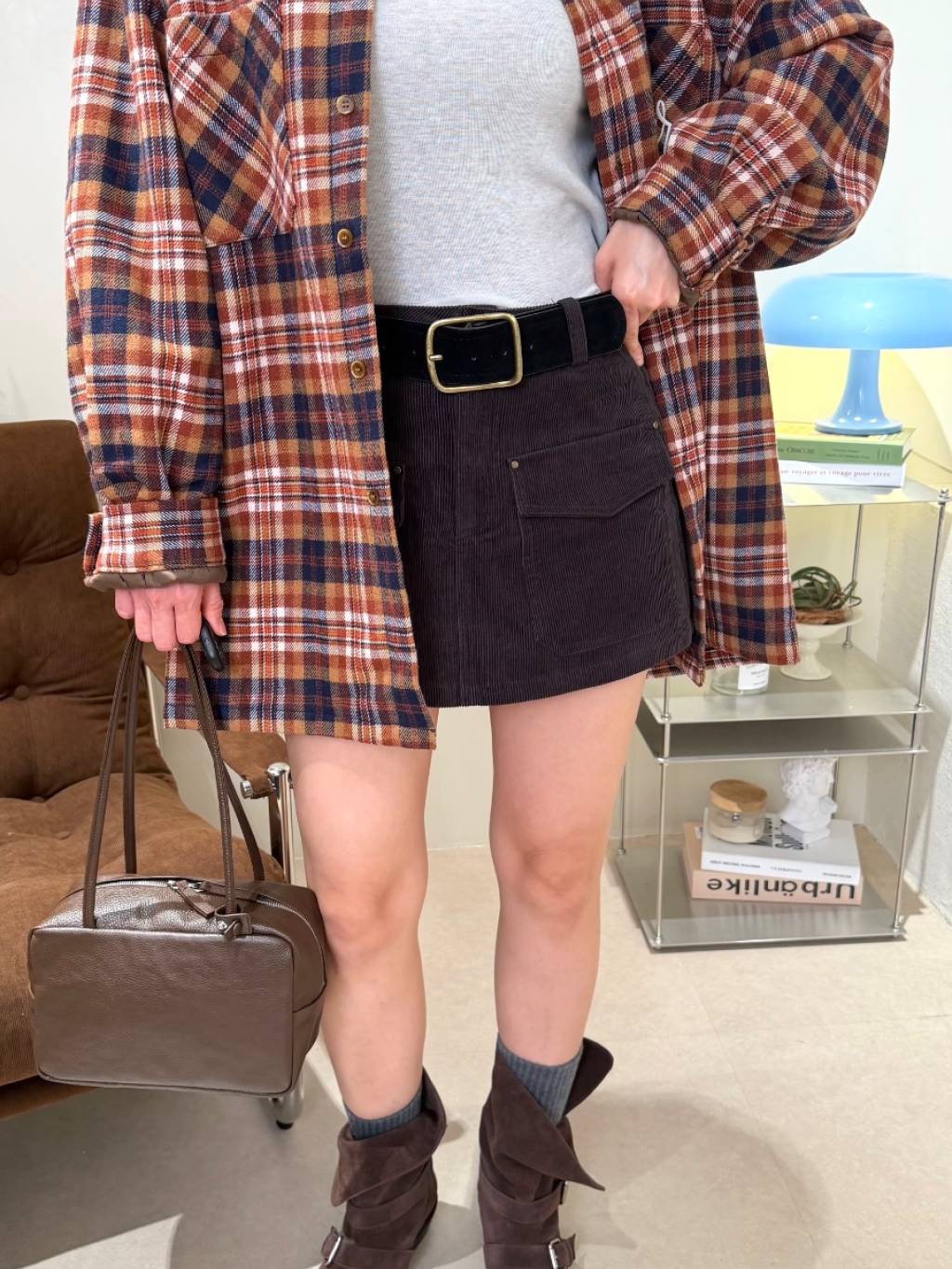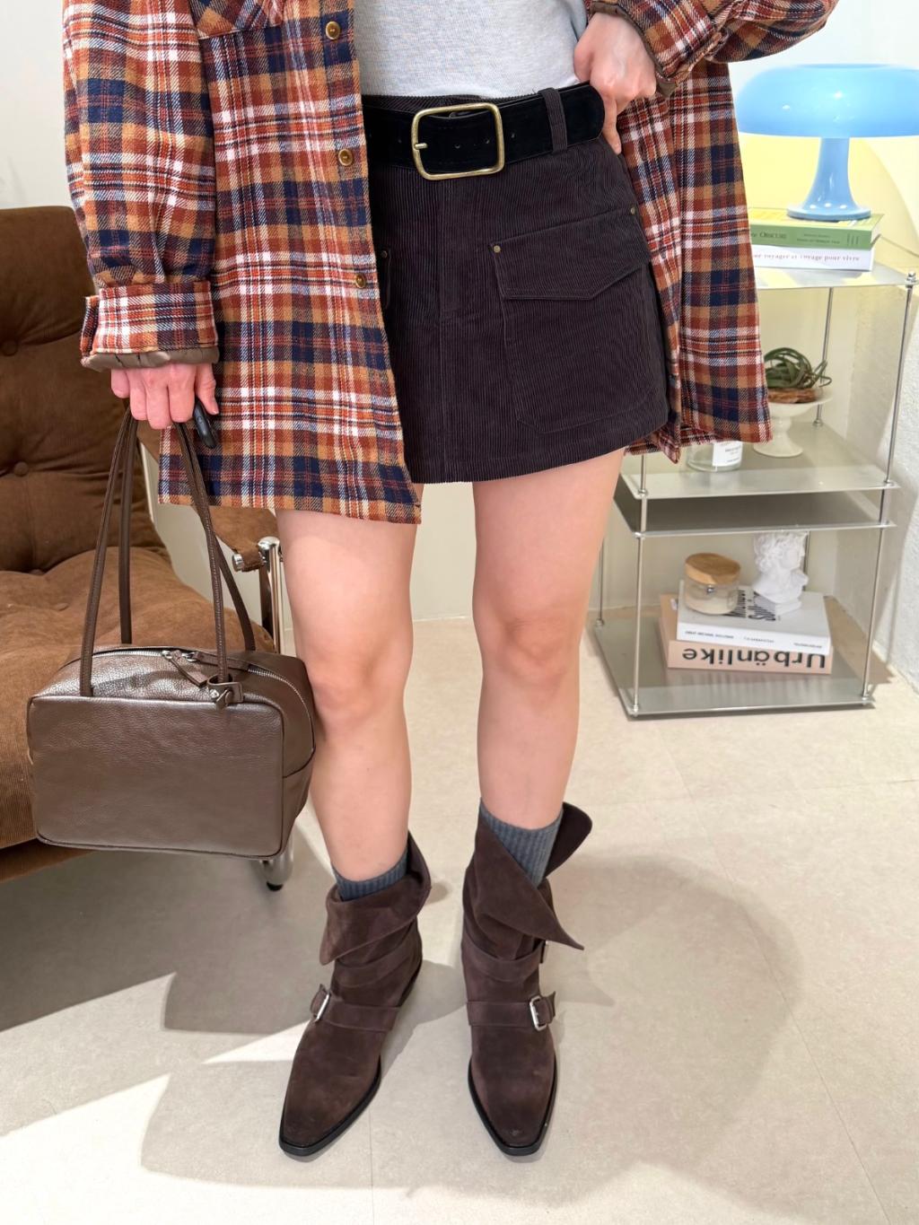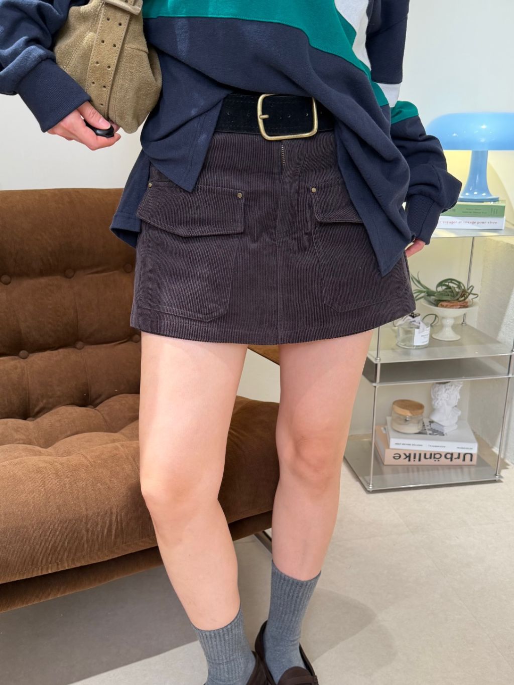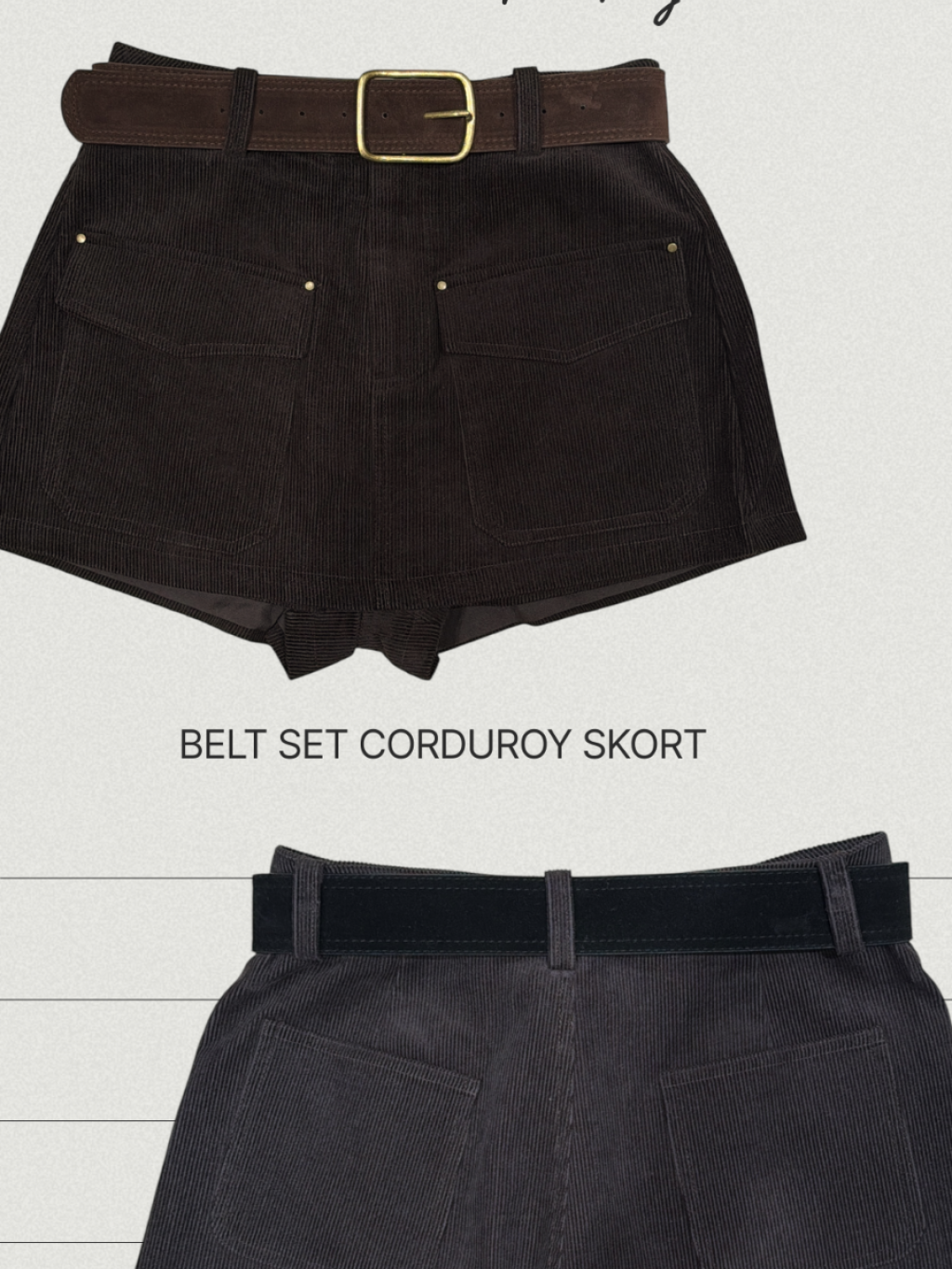 連腰帶燈芯絨口袋短裙褲(LIVE SALE)