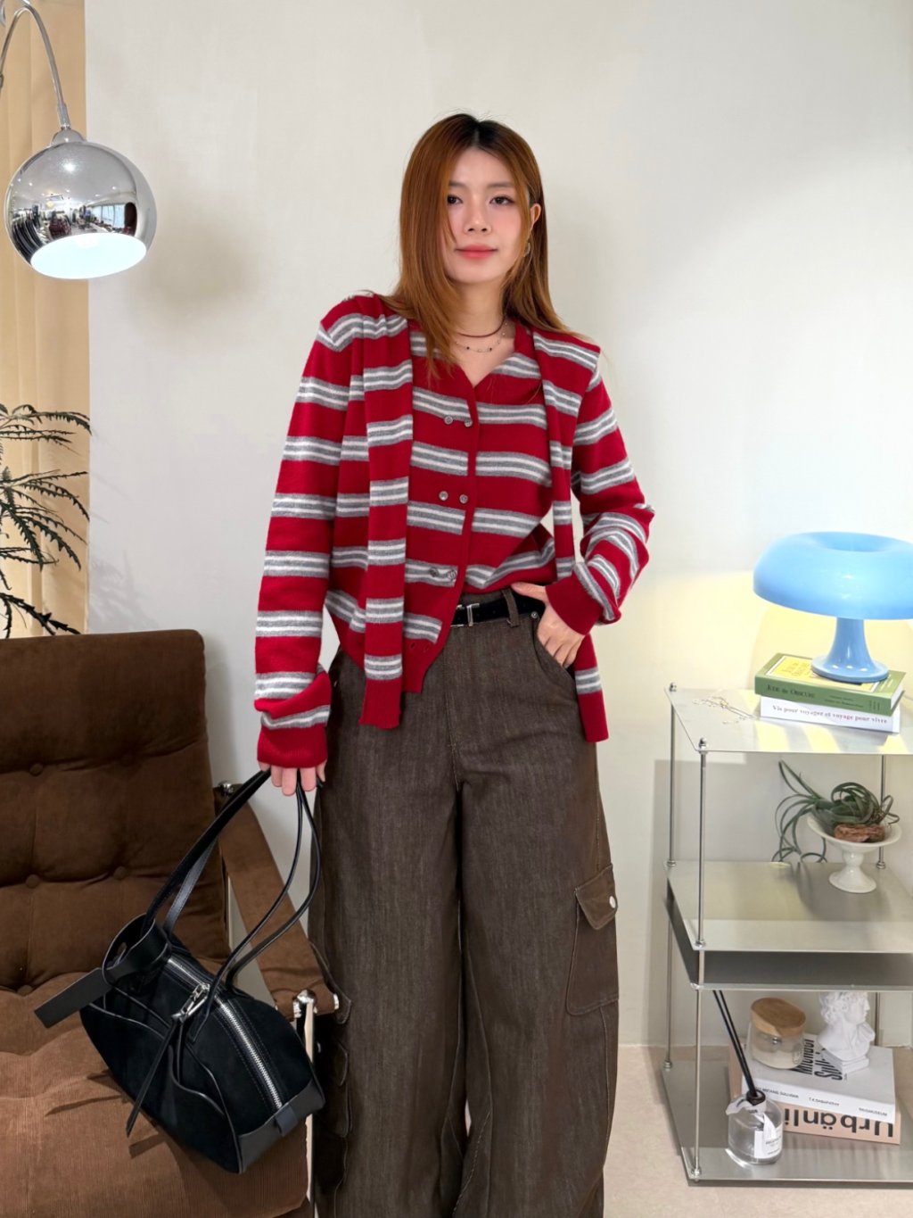 披肩雙排扣針織開衫SET (LIVE SALE)