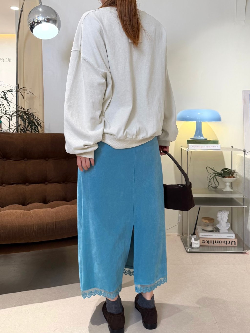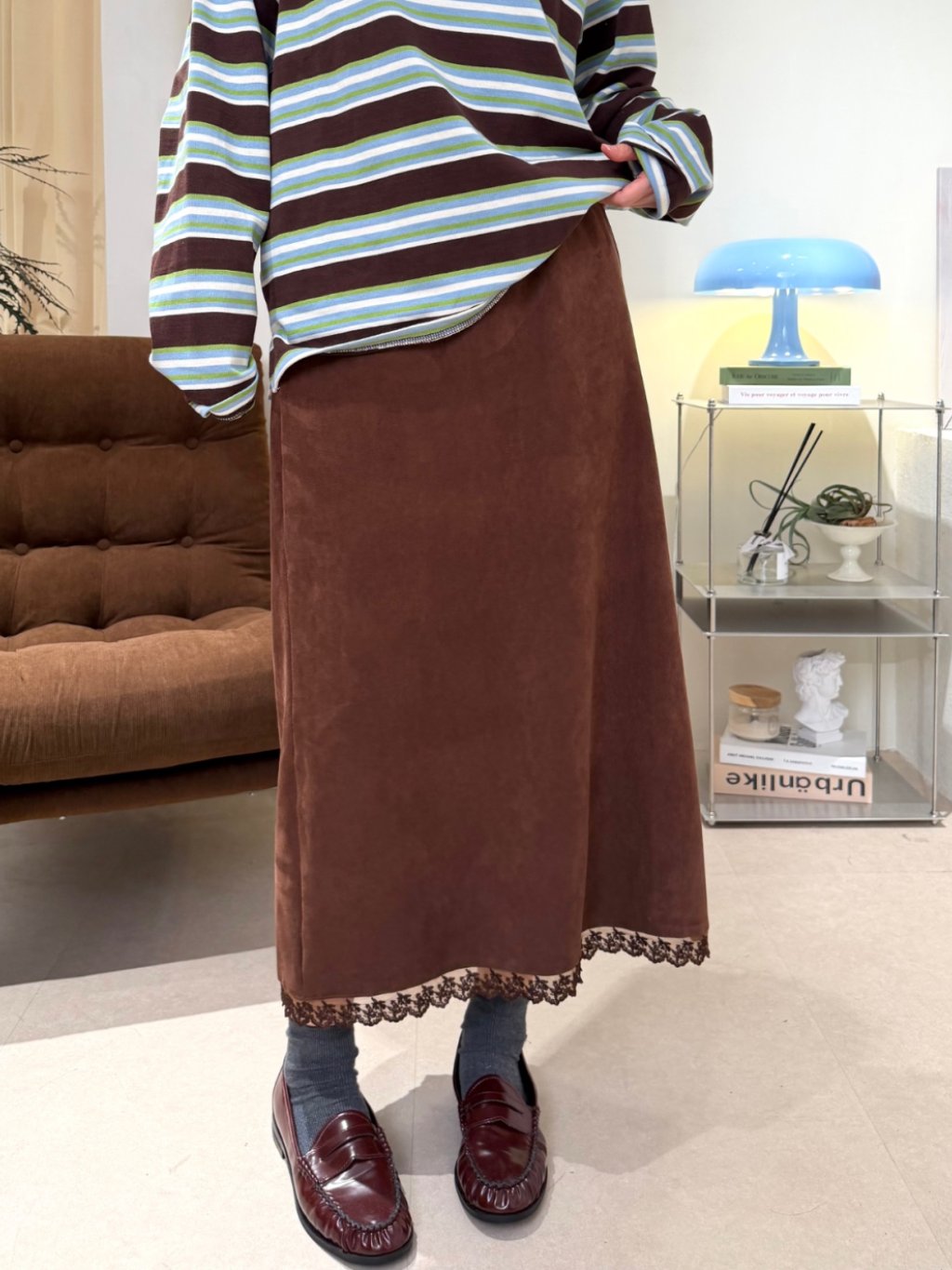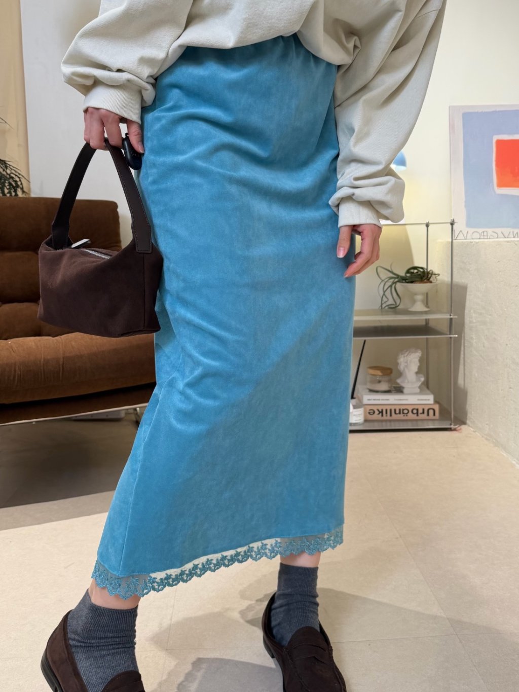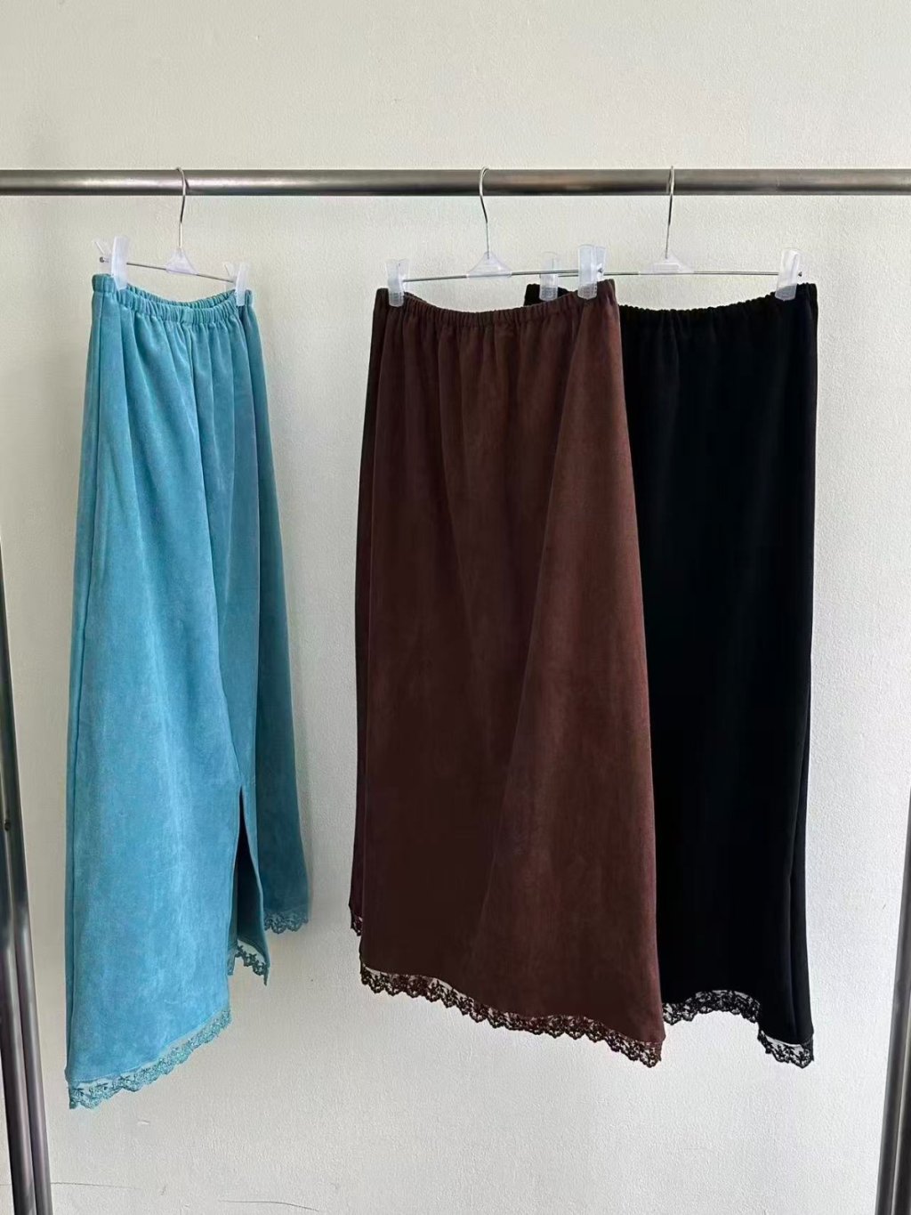 橡根腰拼接蕾絲開叉半截裙(LIVE SALE)