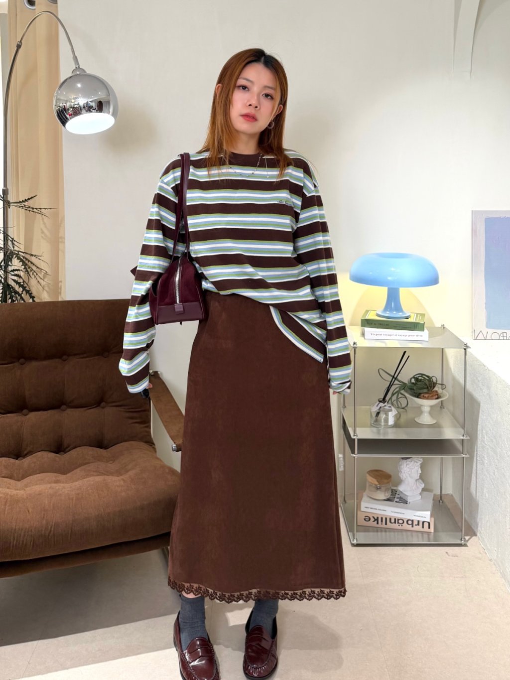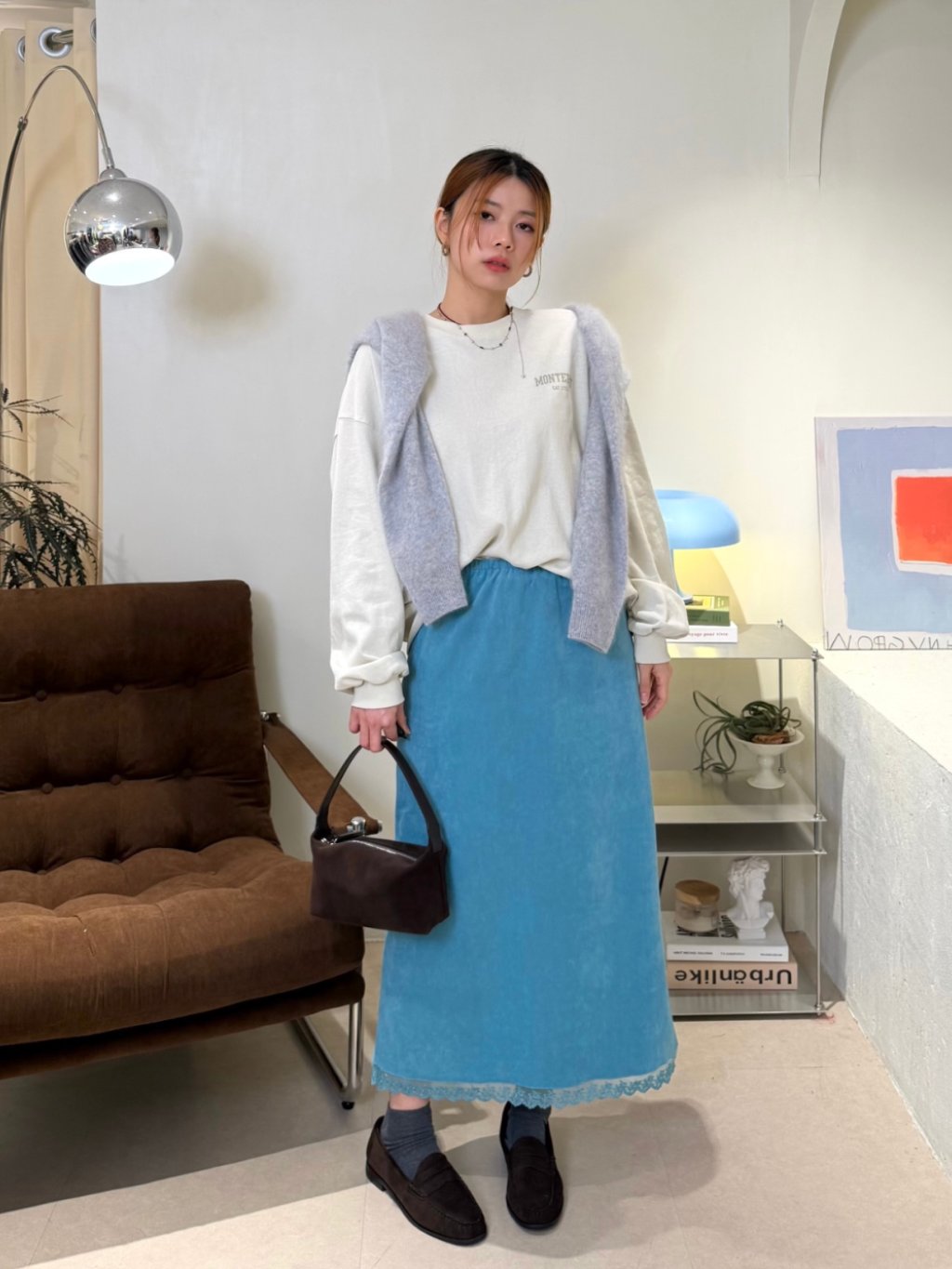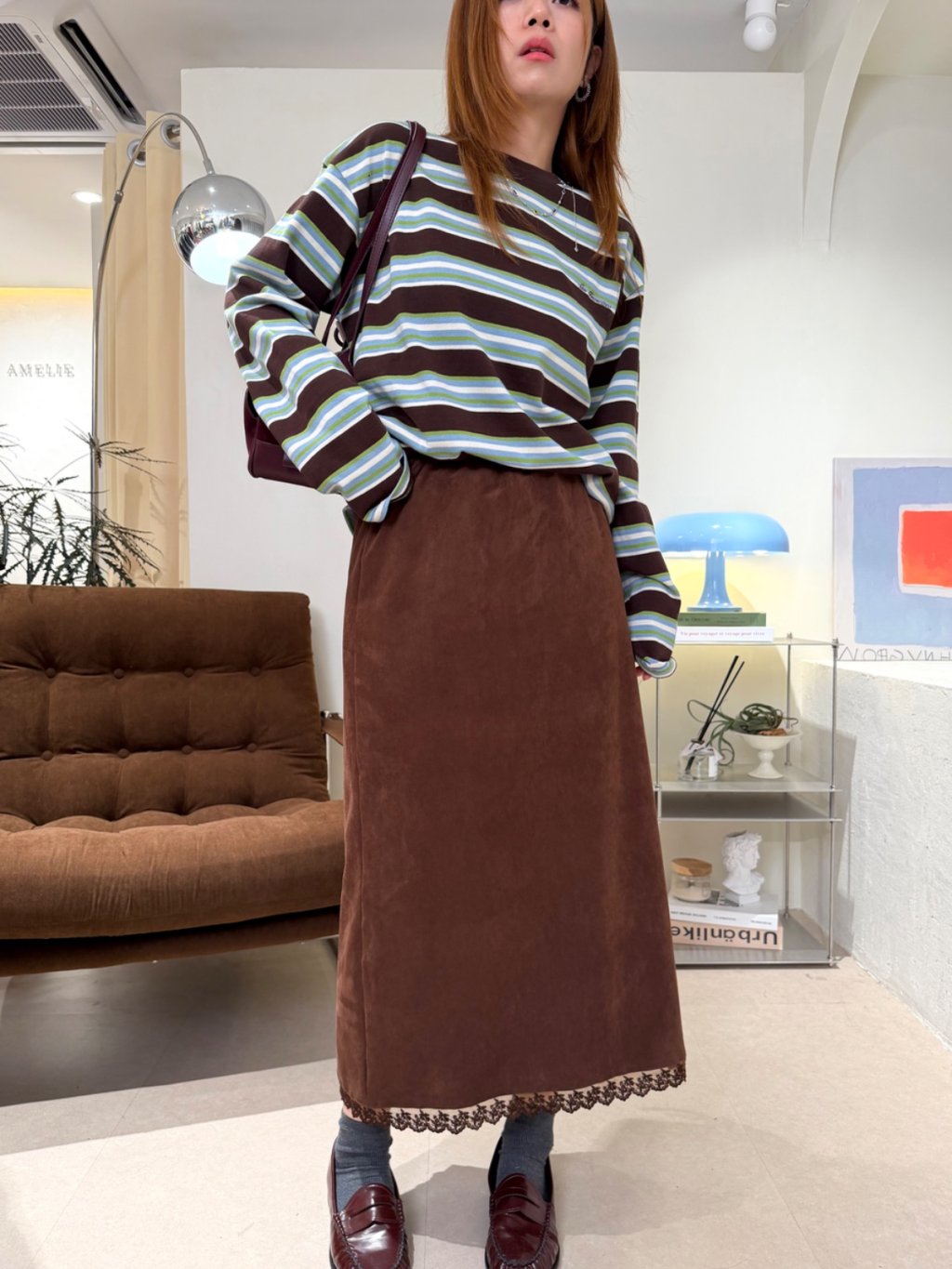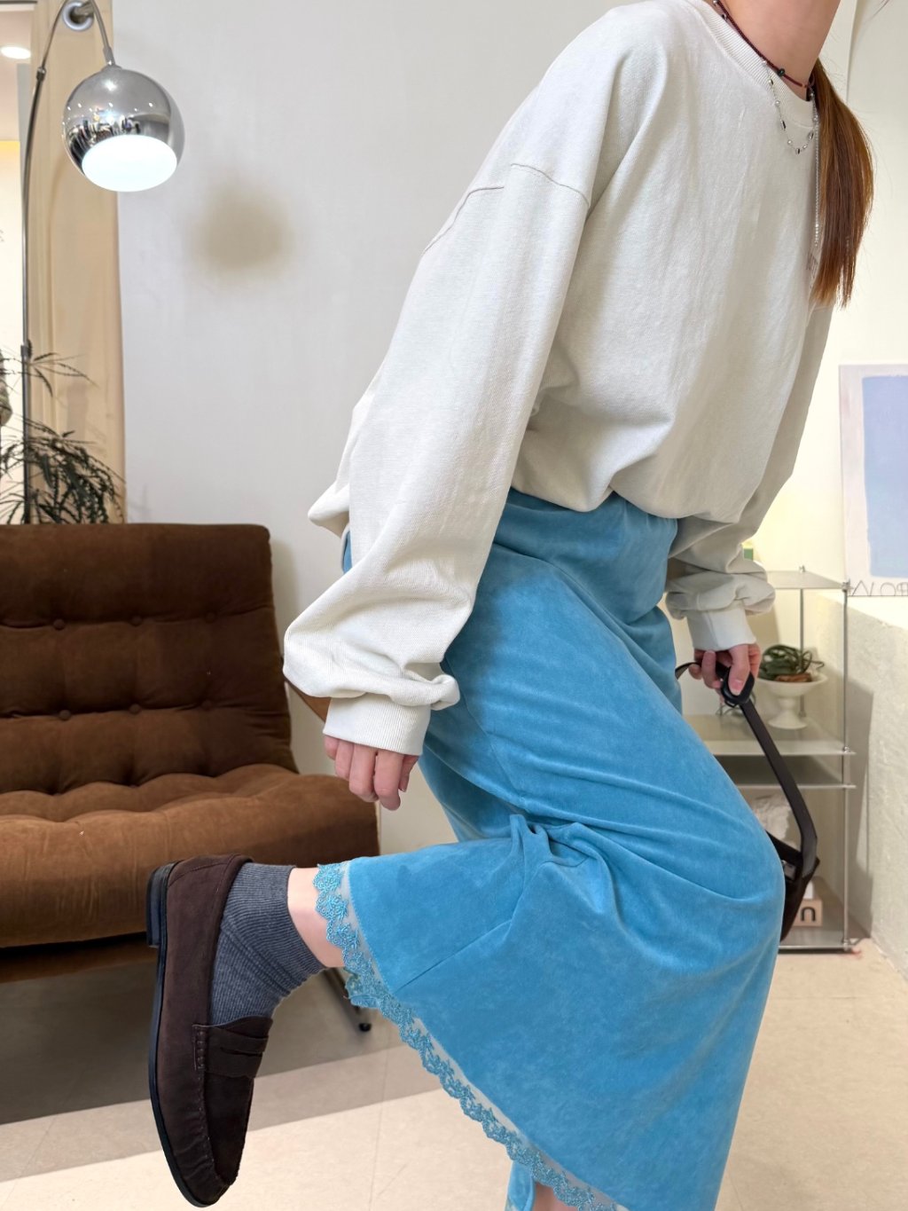 橡根腰拼接蕾絲開叉半截裙(LIVE SALE)