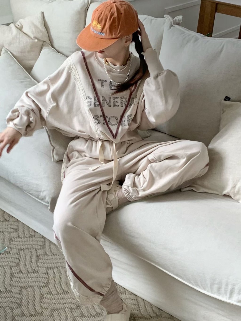 橡根腰拼接蕾絲衛褲