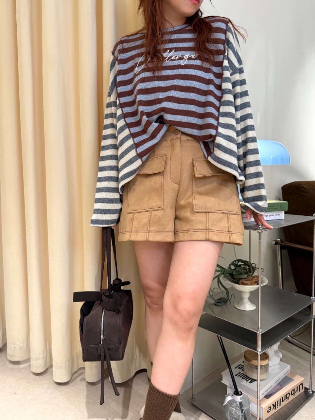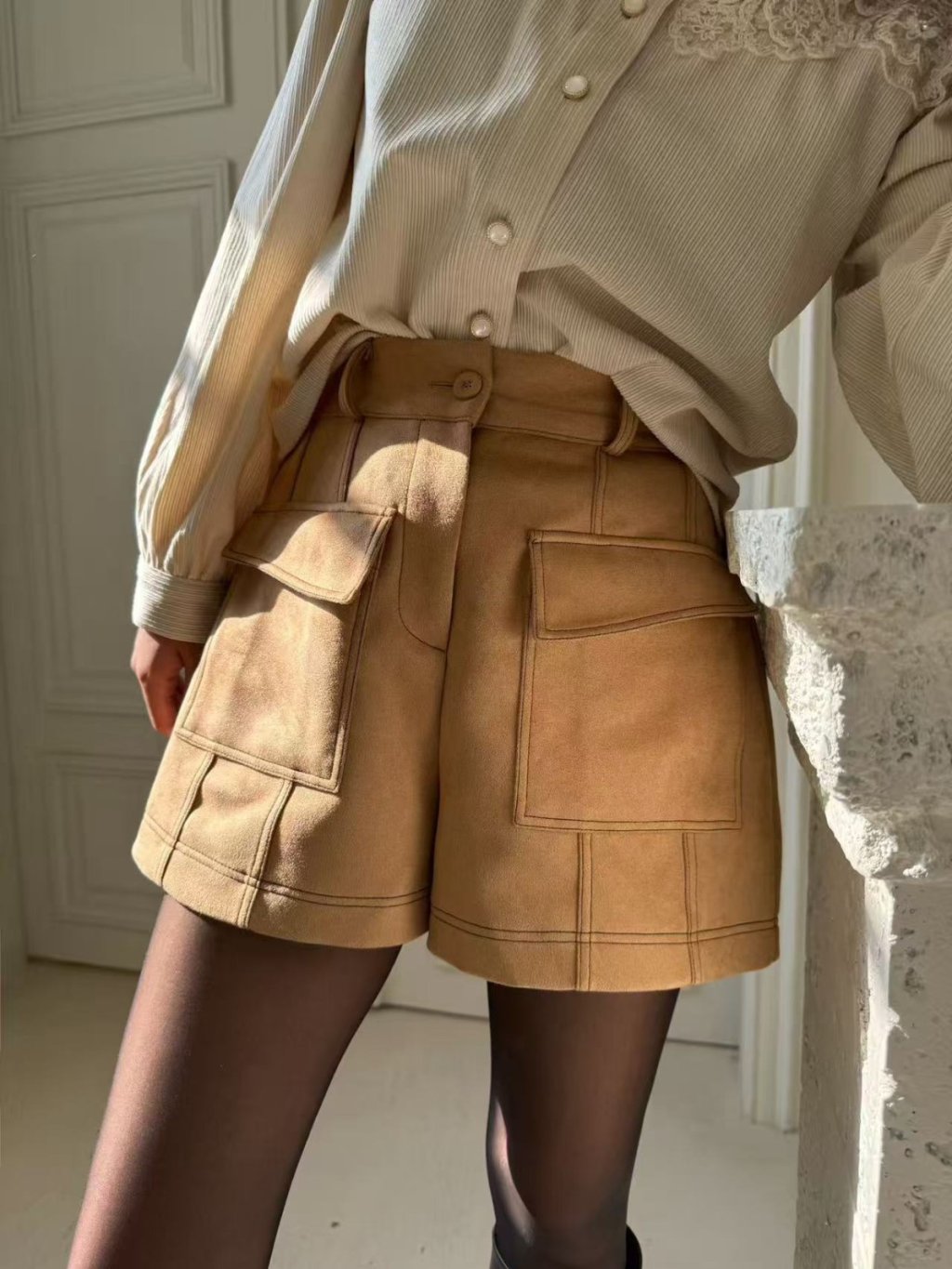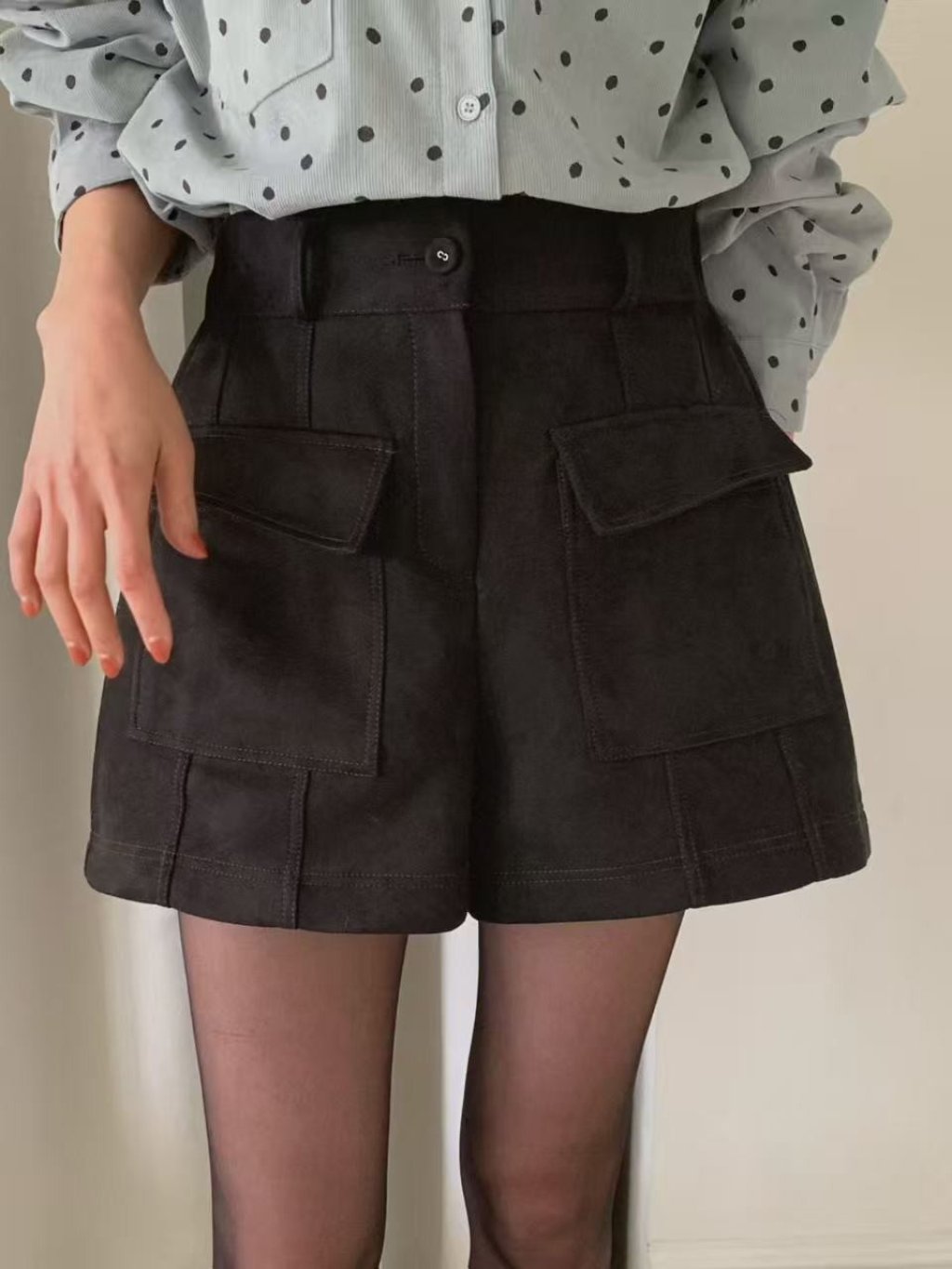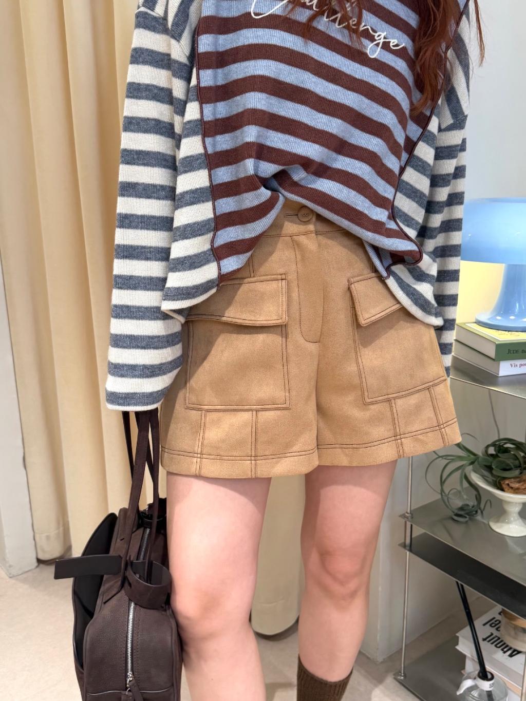 麂絨半橡根腰口袋短褲(LIVE SALE)