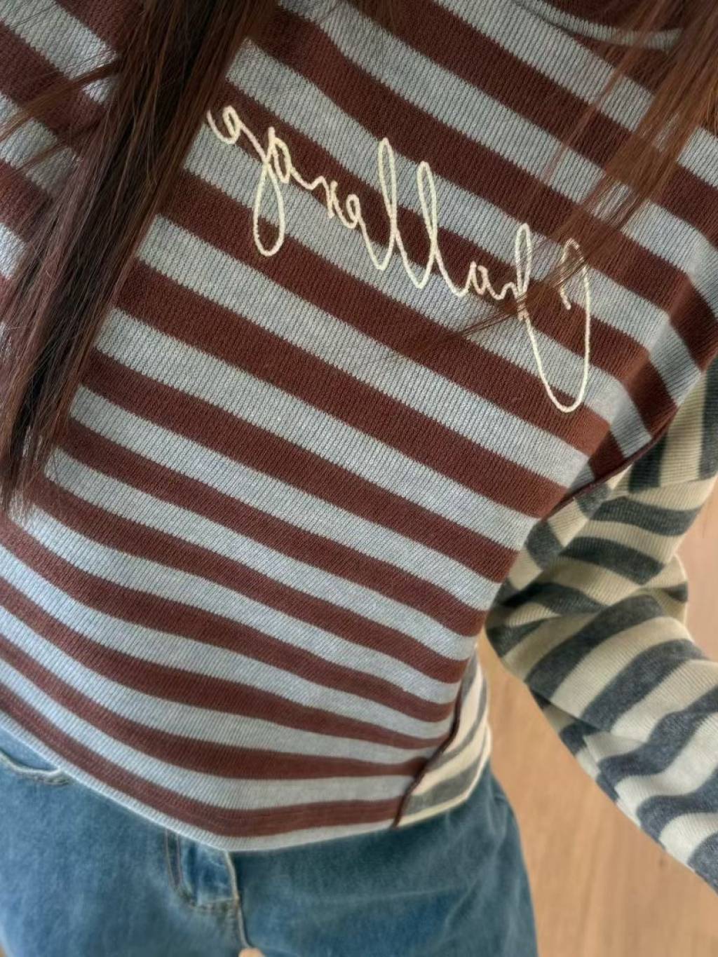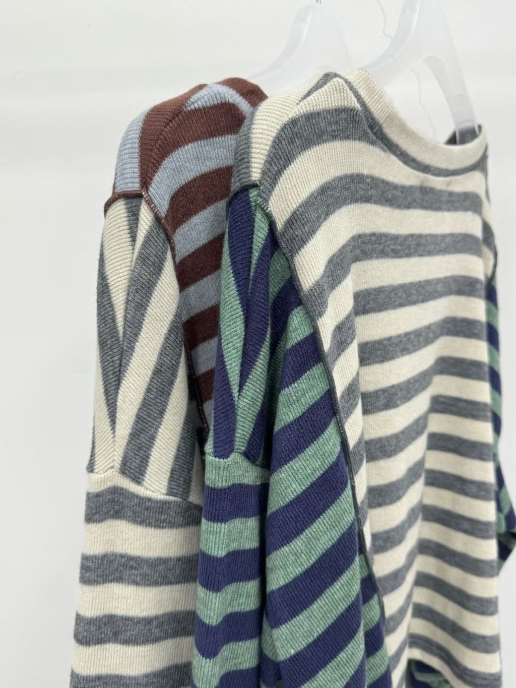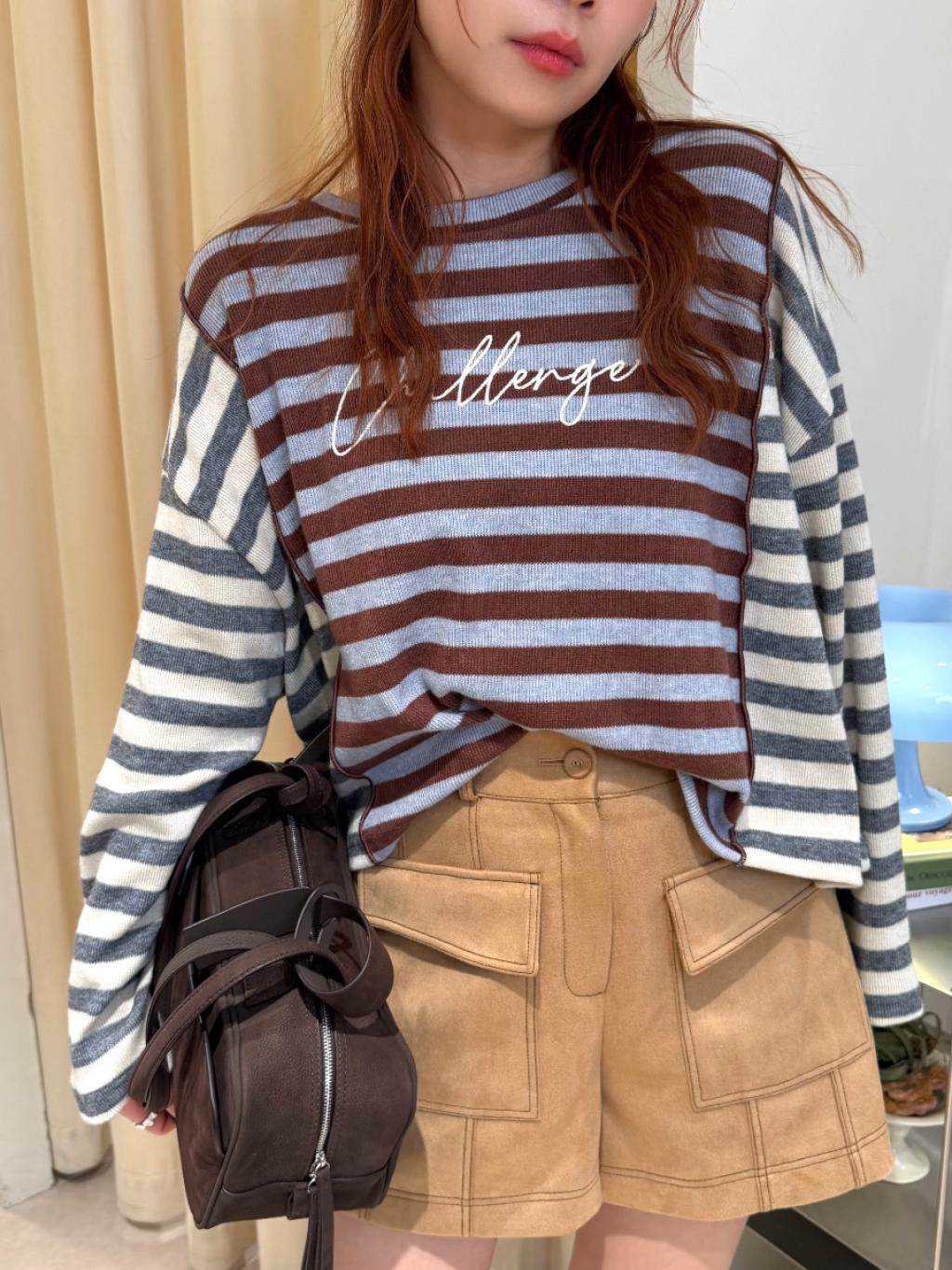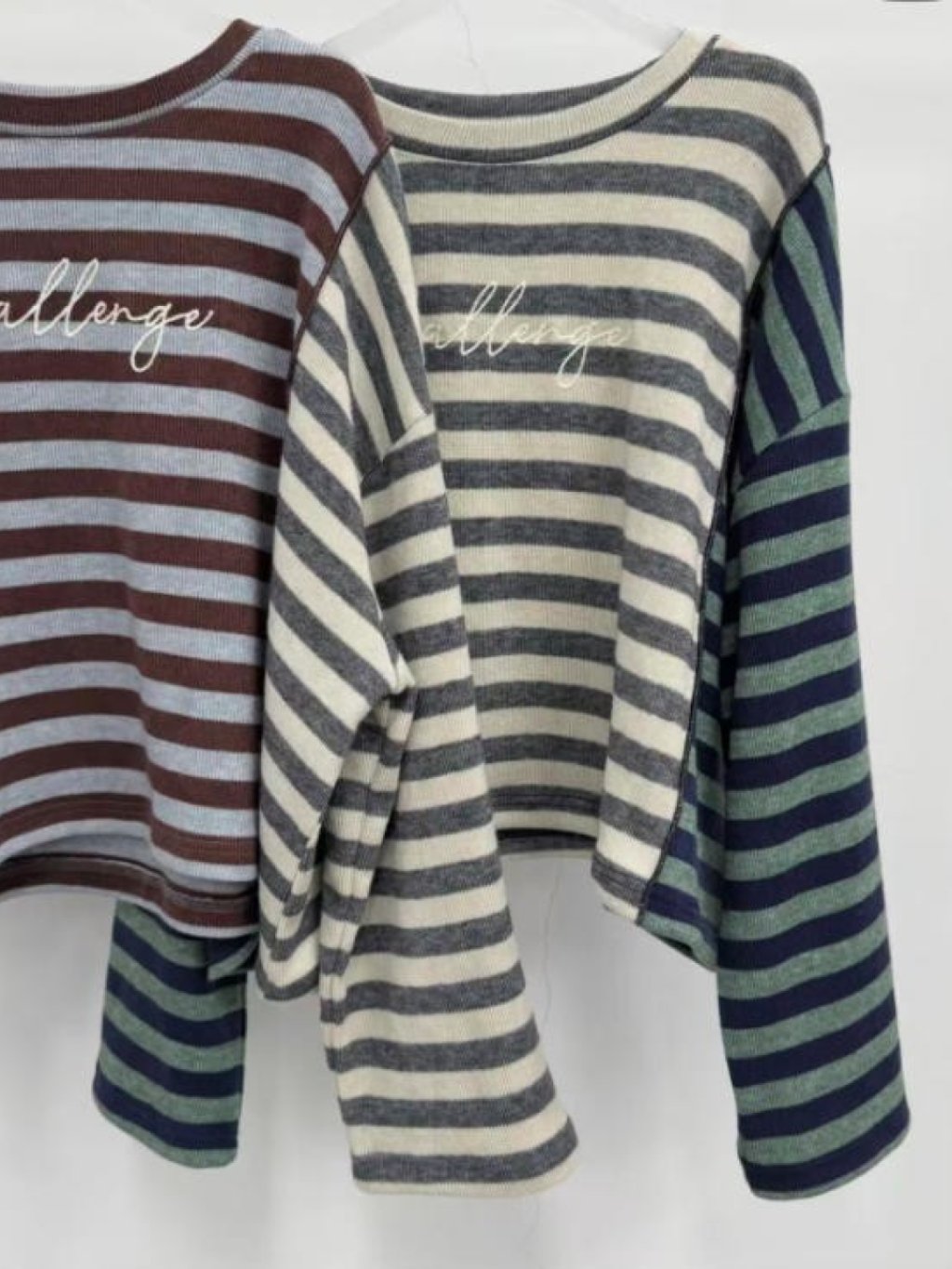 拼色條紋長袖短TEE(LIVE SALE)