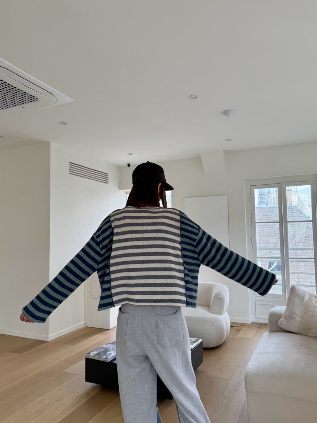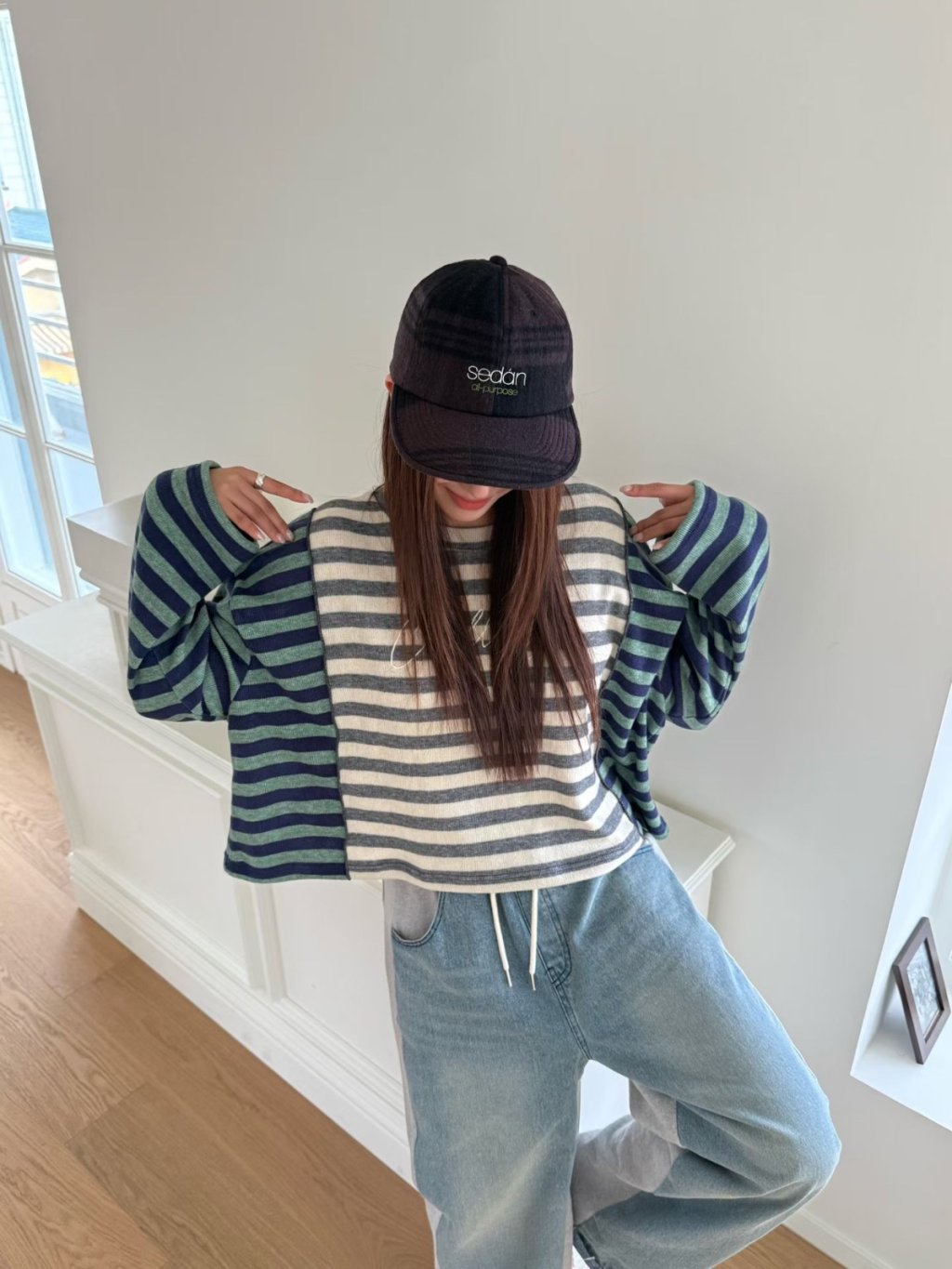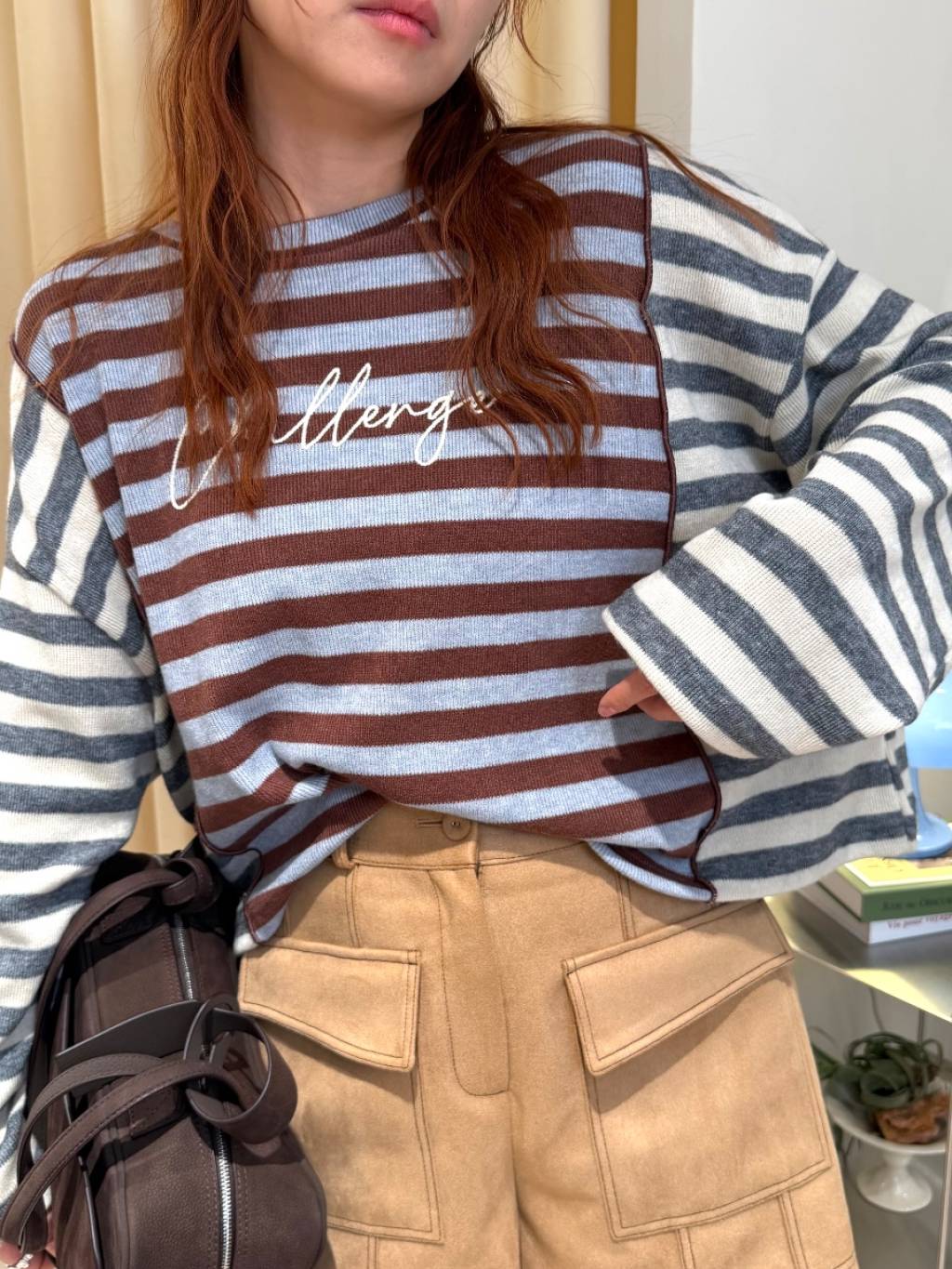 拼色條紋長袖短TEE(LIVE SALE)