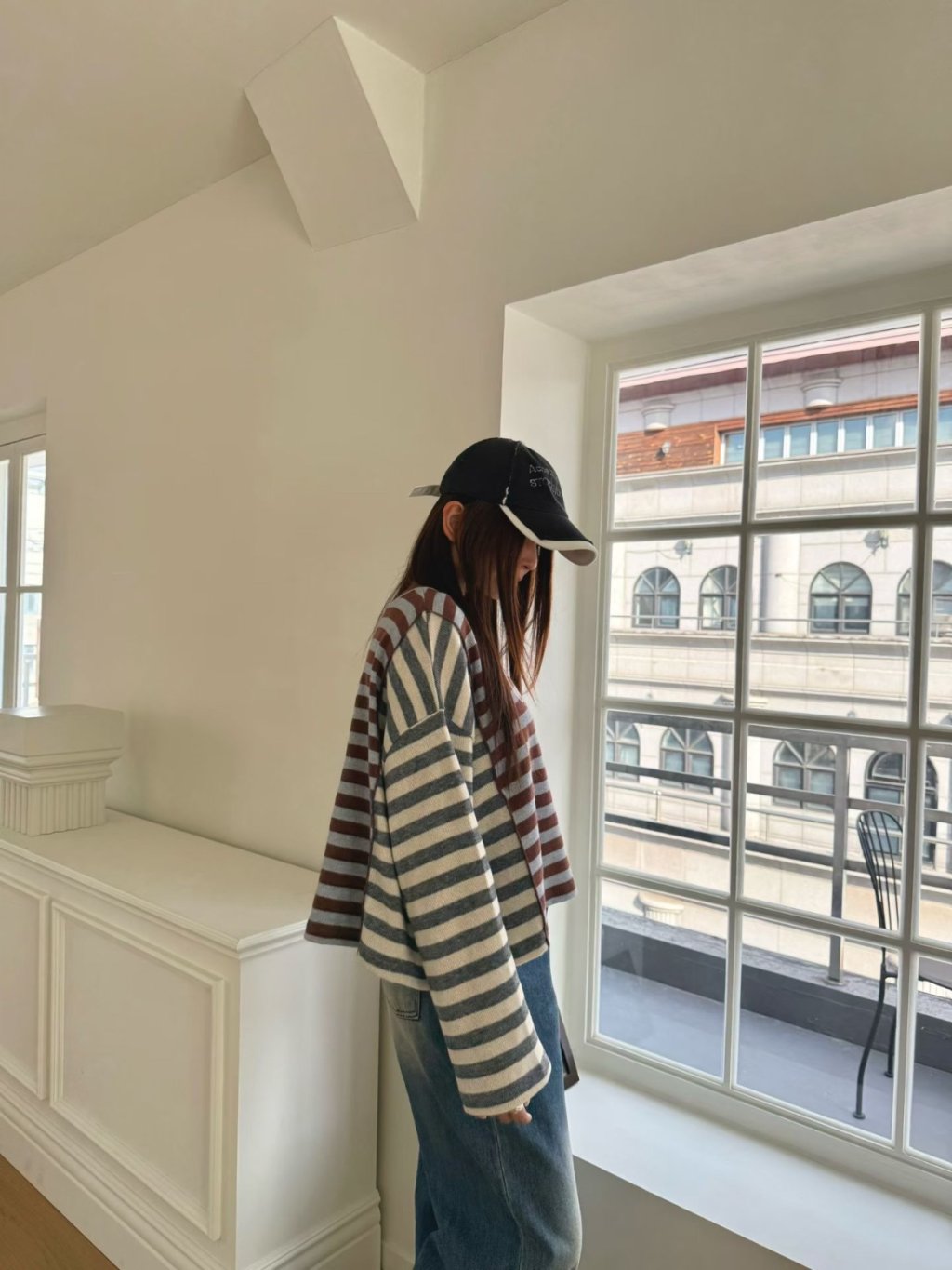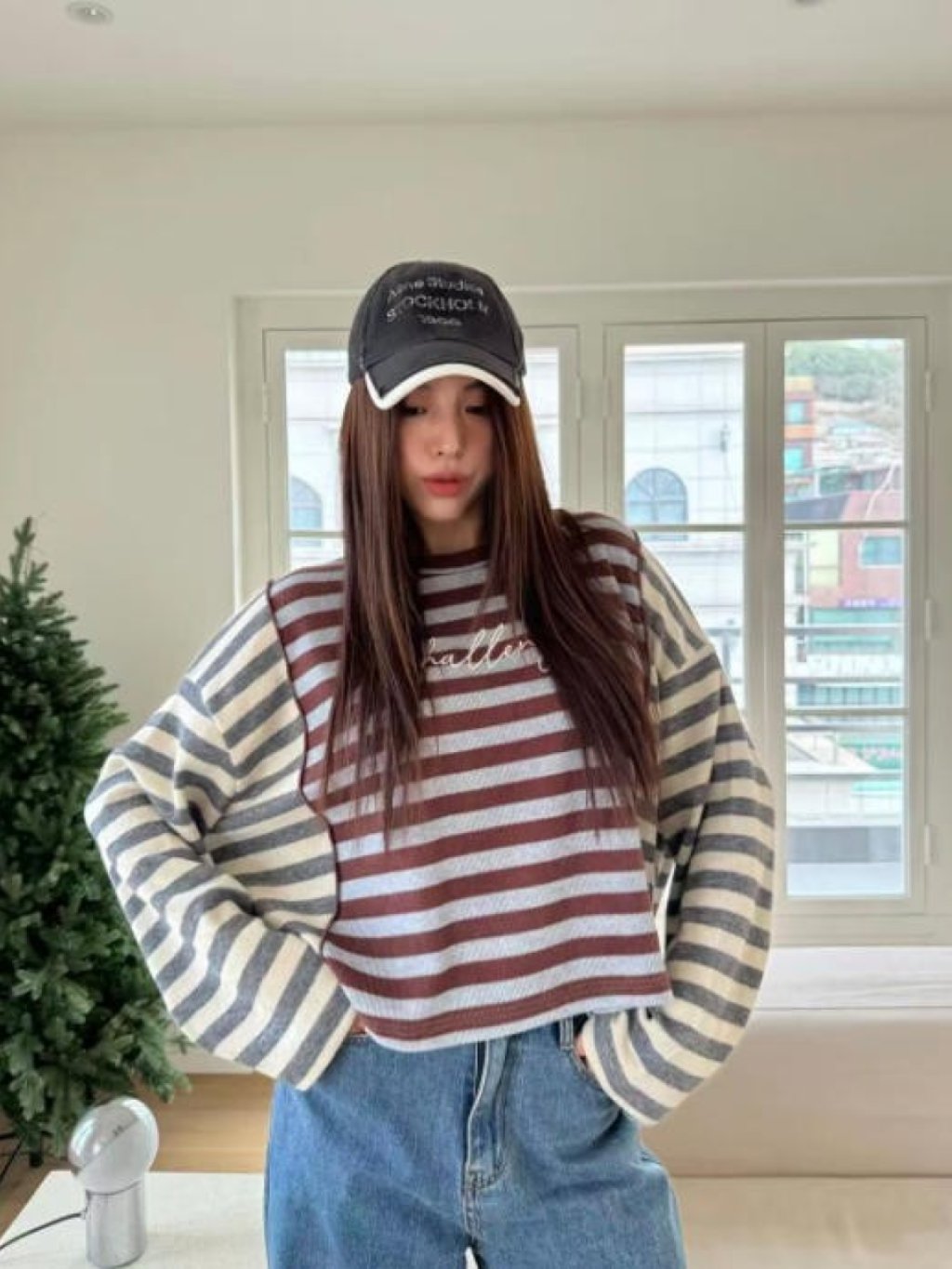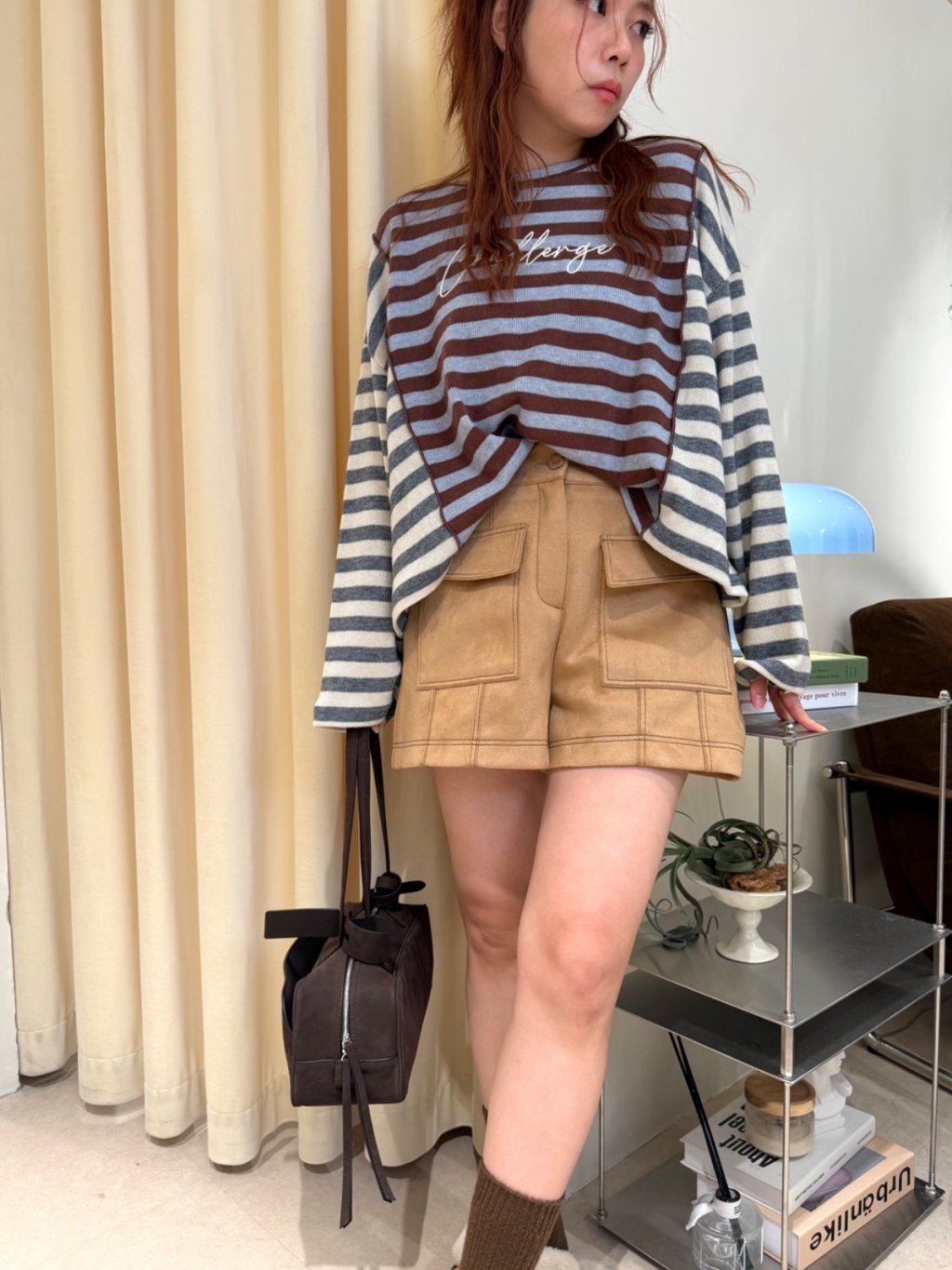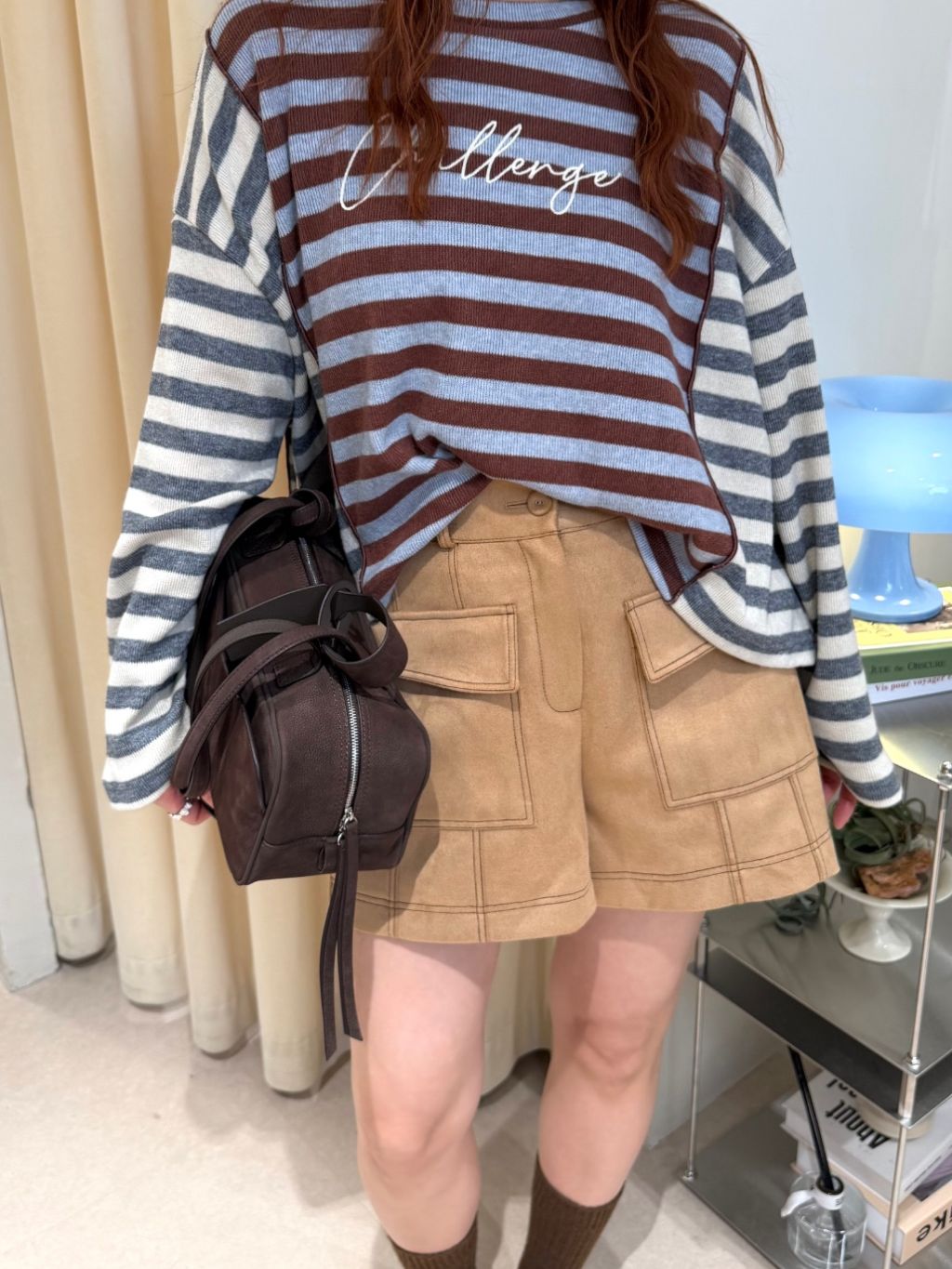 拼色條紋長袖短TEE(LIVE SALE)