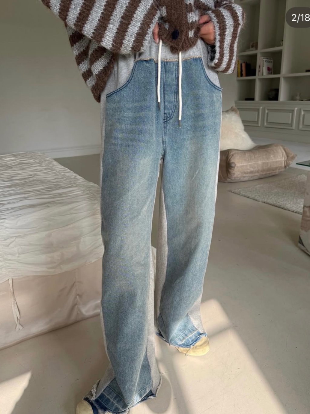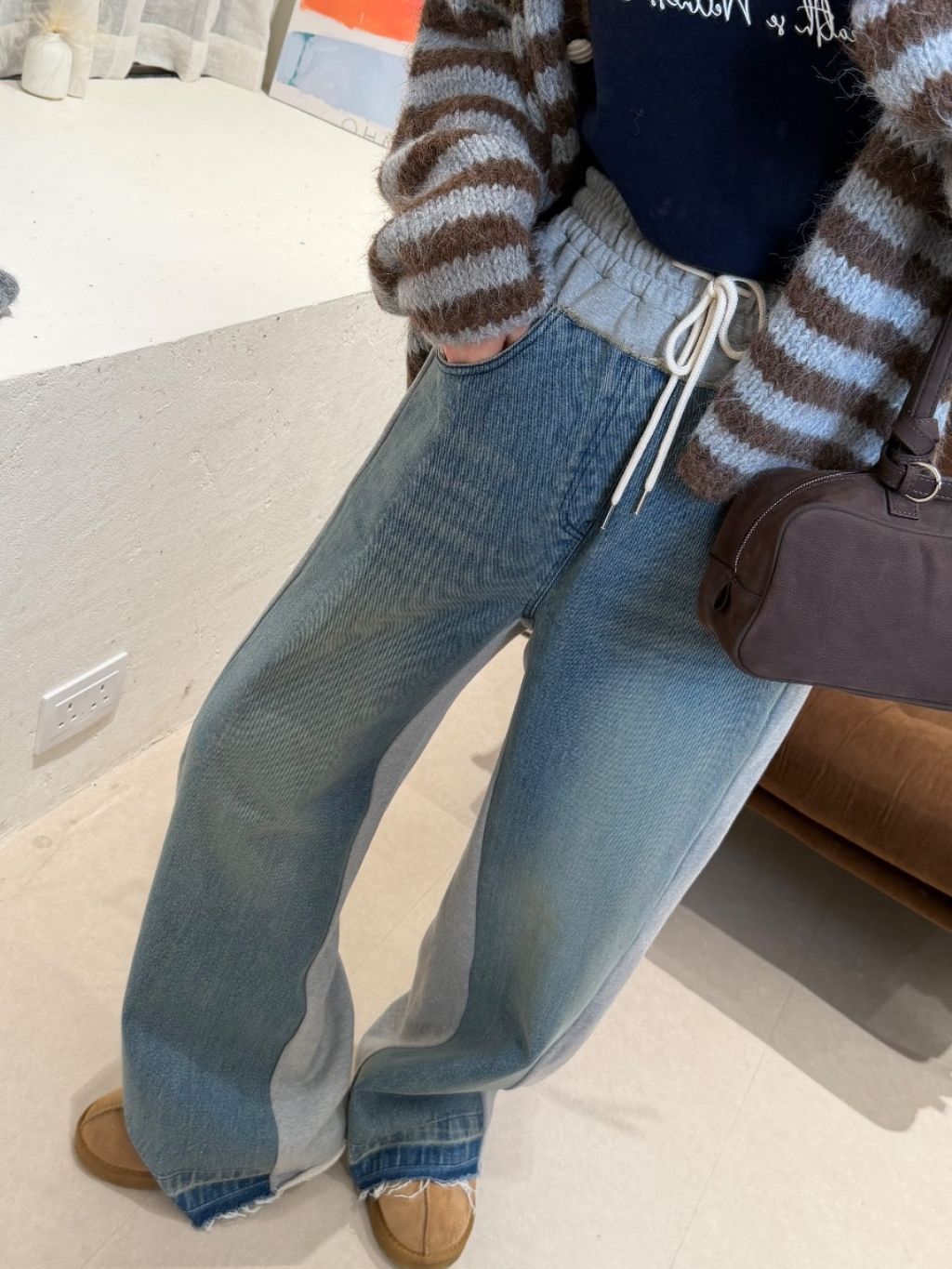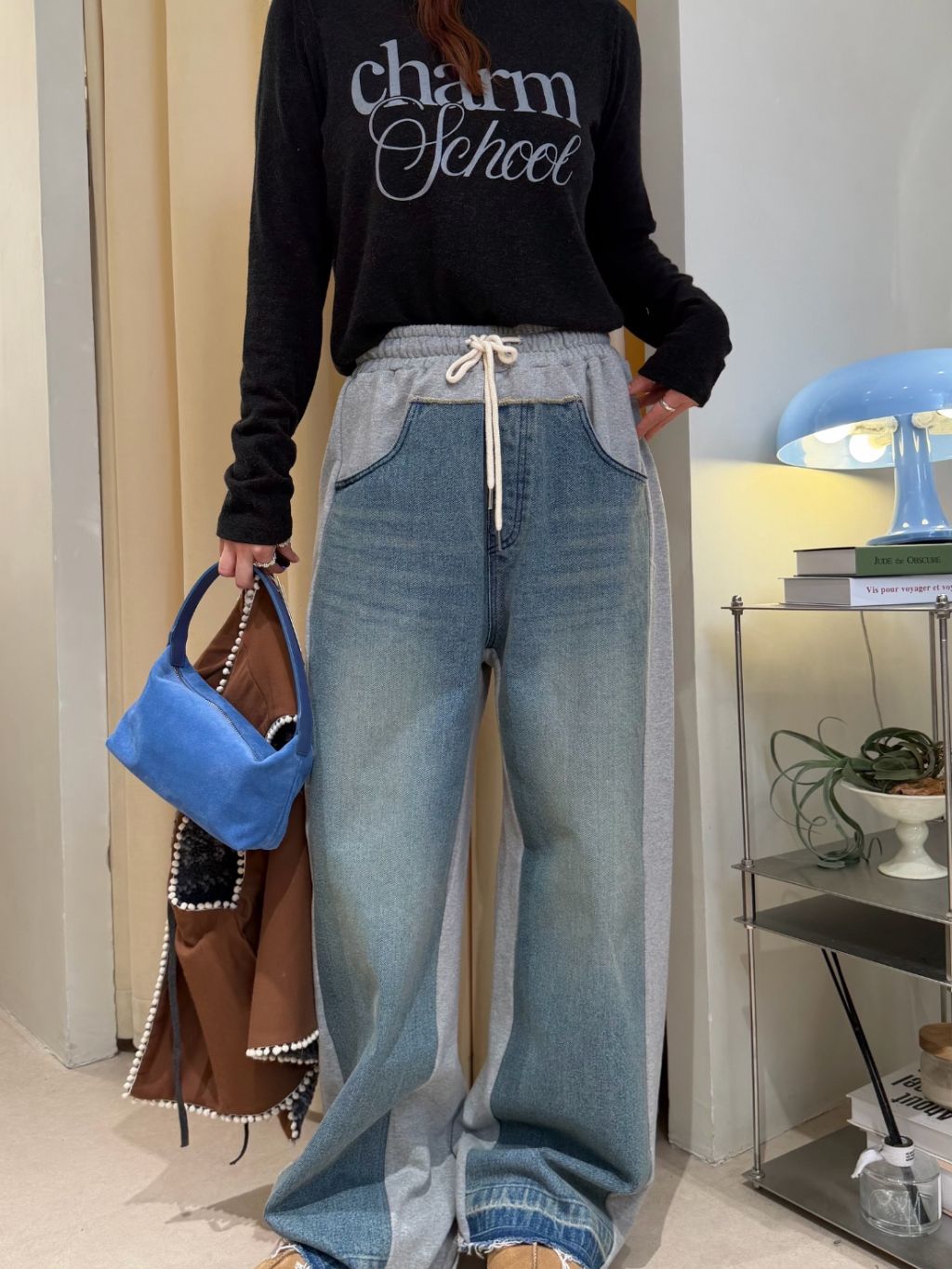 主頁 橡根腰拼牛仔抽繩衛褲(LIVE SALE)