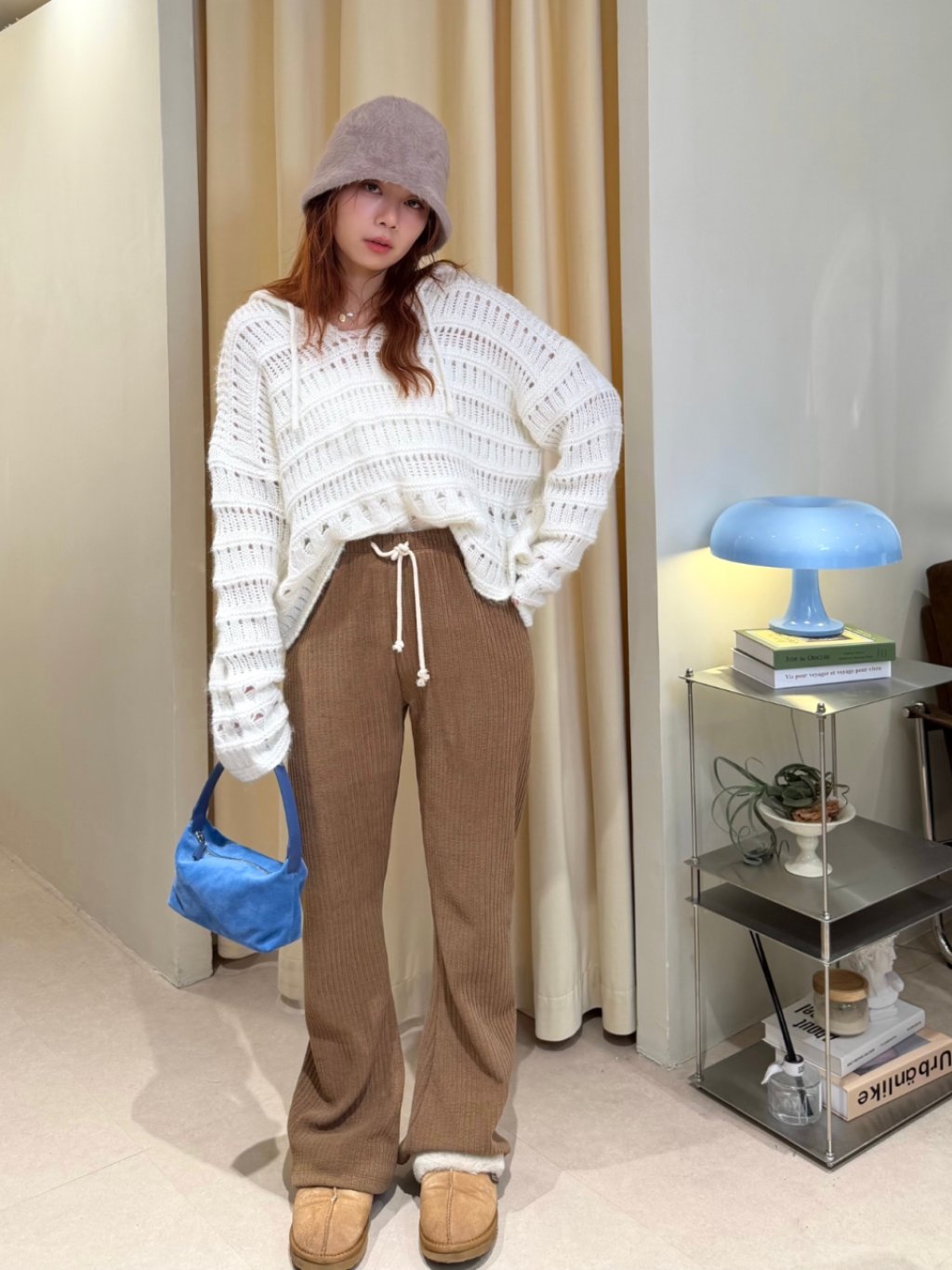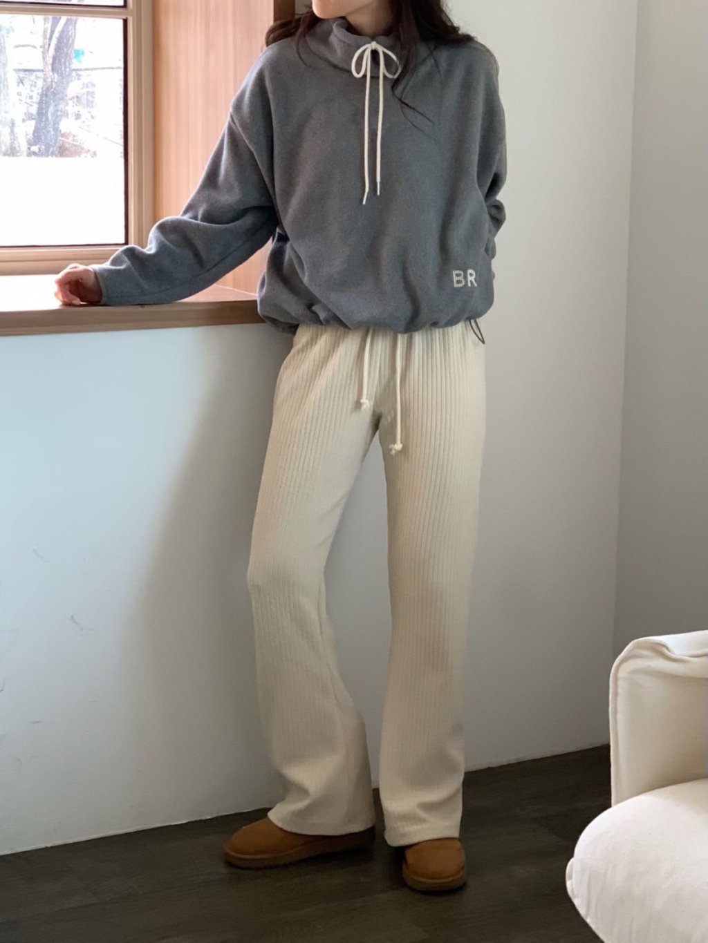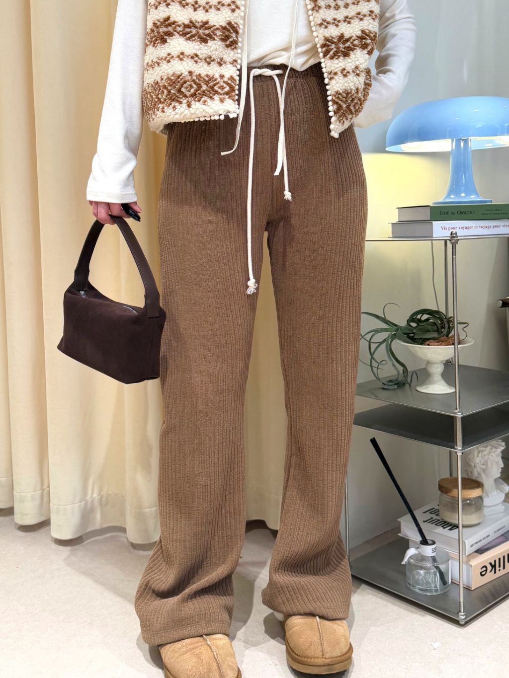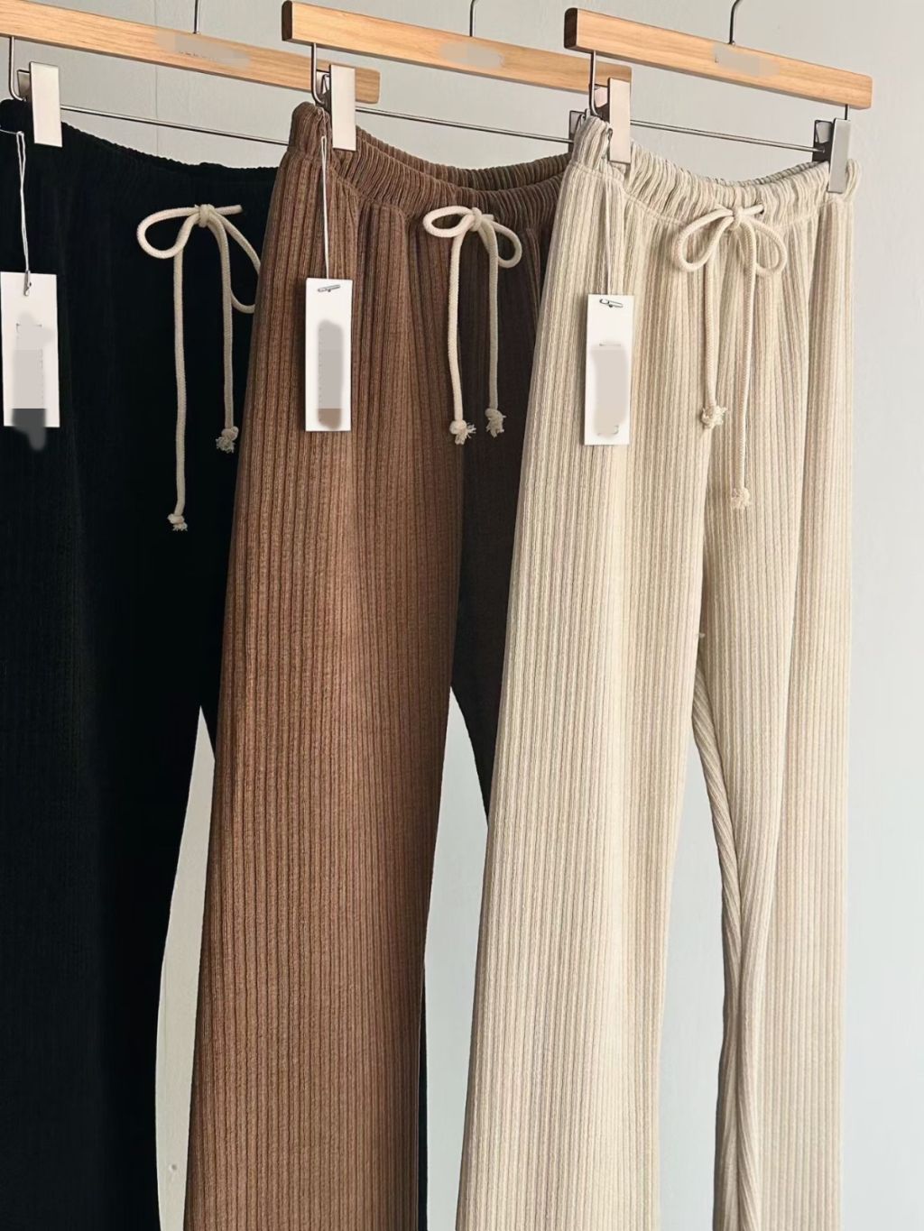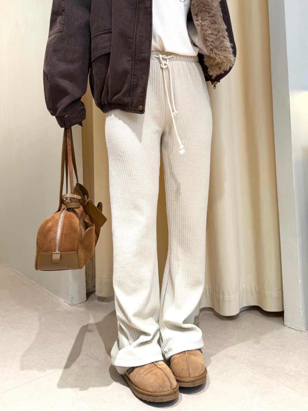 彈力坑紋抽繩修長褲(LIVE SALE)