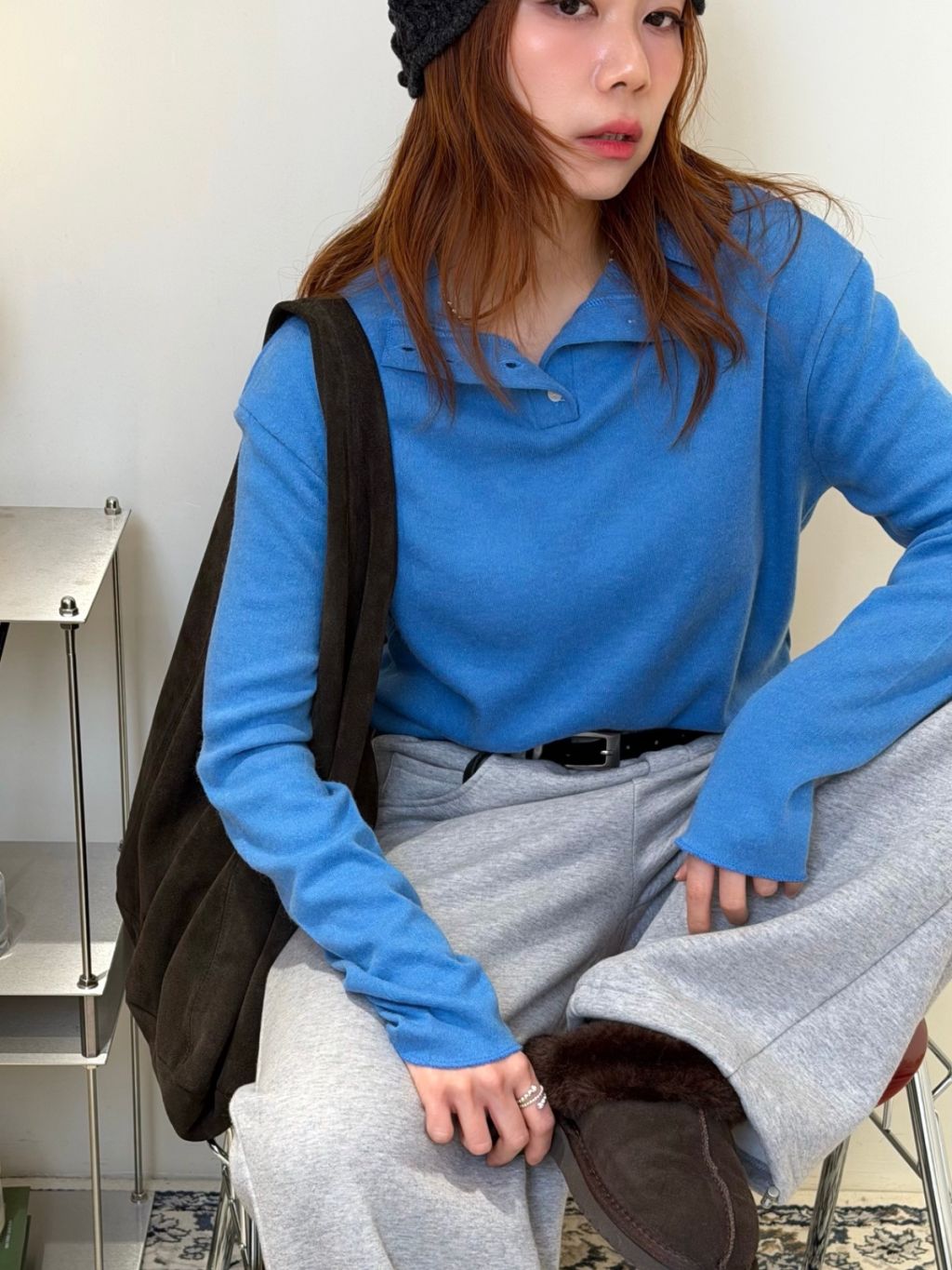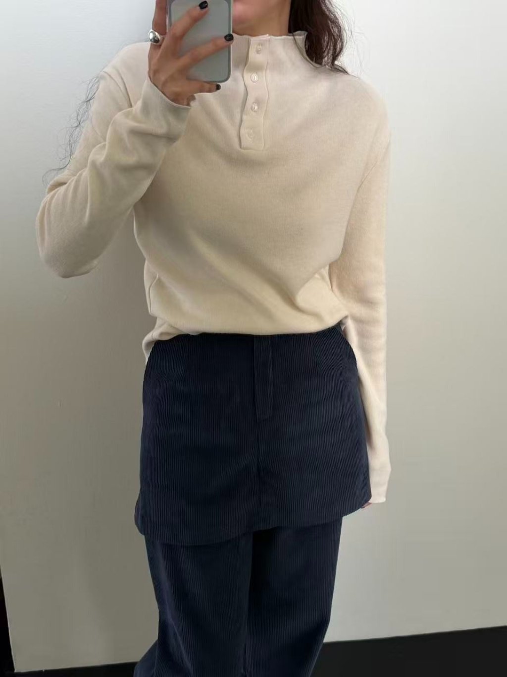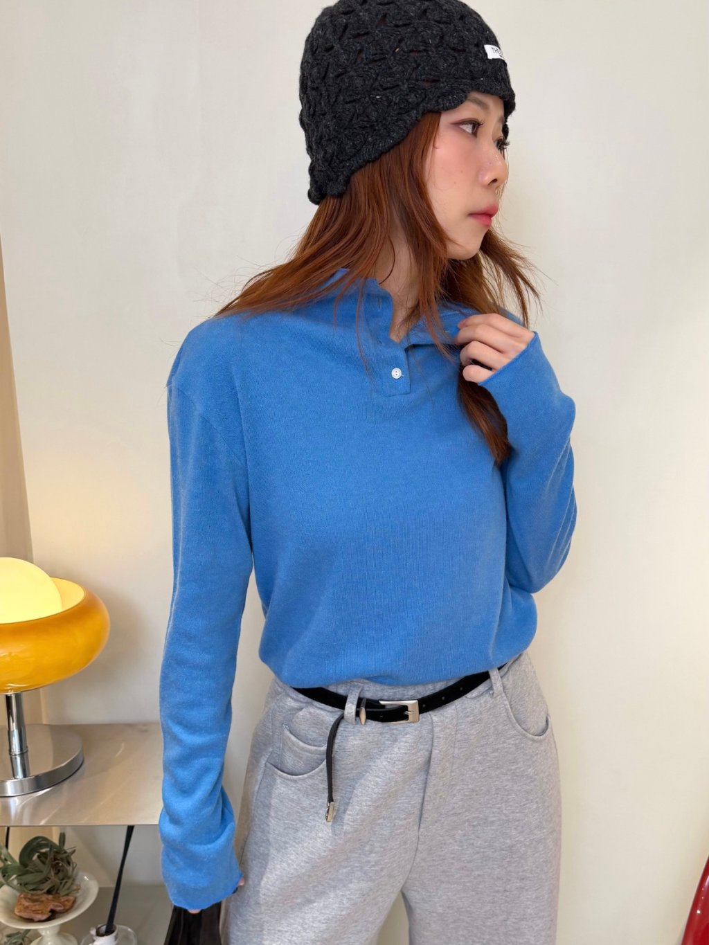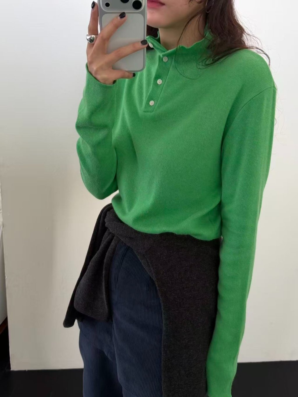 半扣企領捲邊長袖打底衫(LIVE SALE)