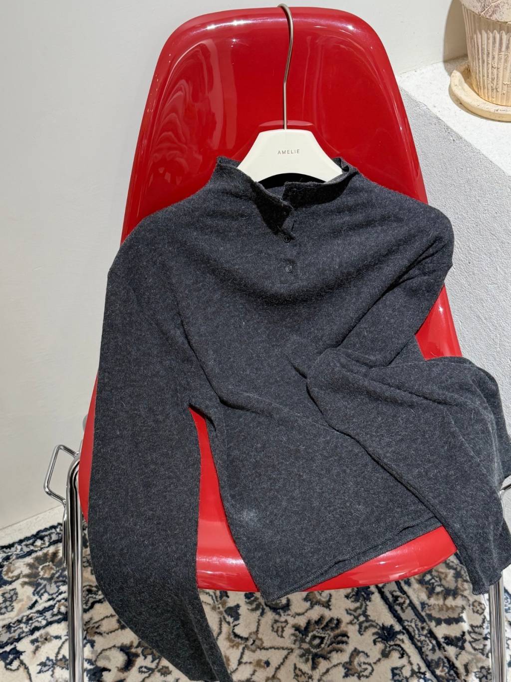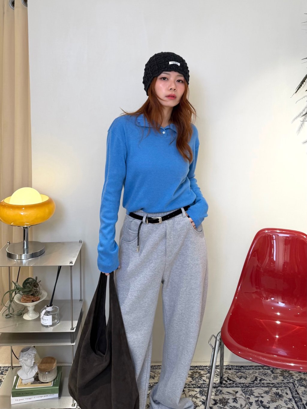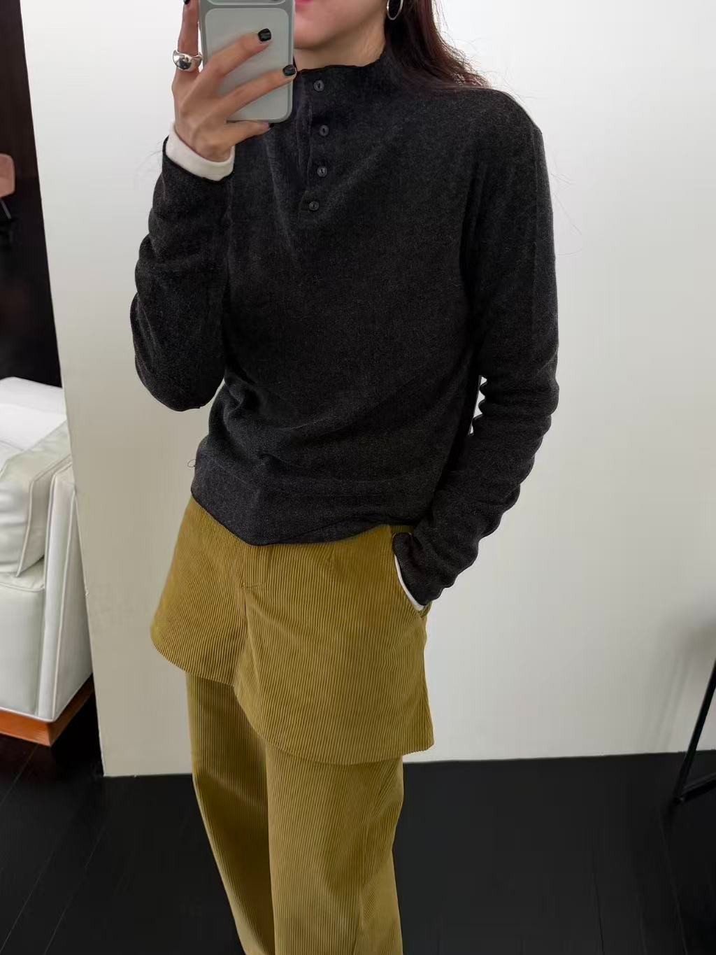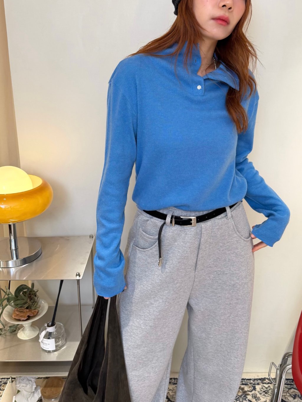 半扣企領捲邊長袖打底衫(LIVE SALE)