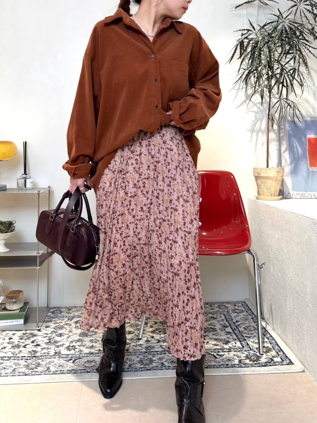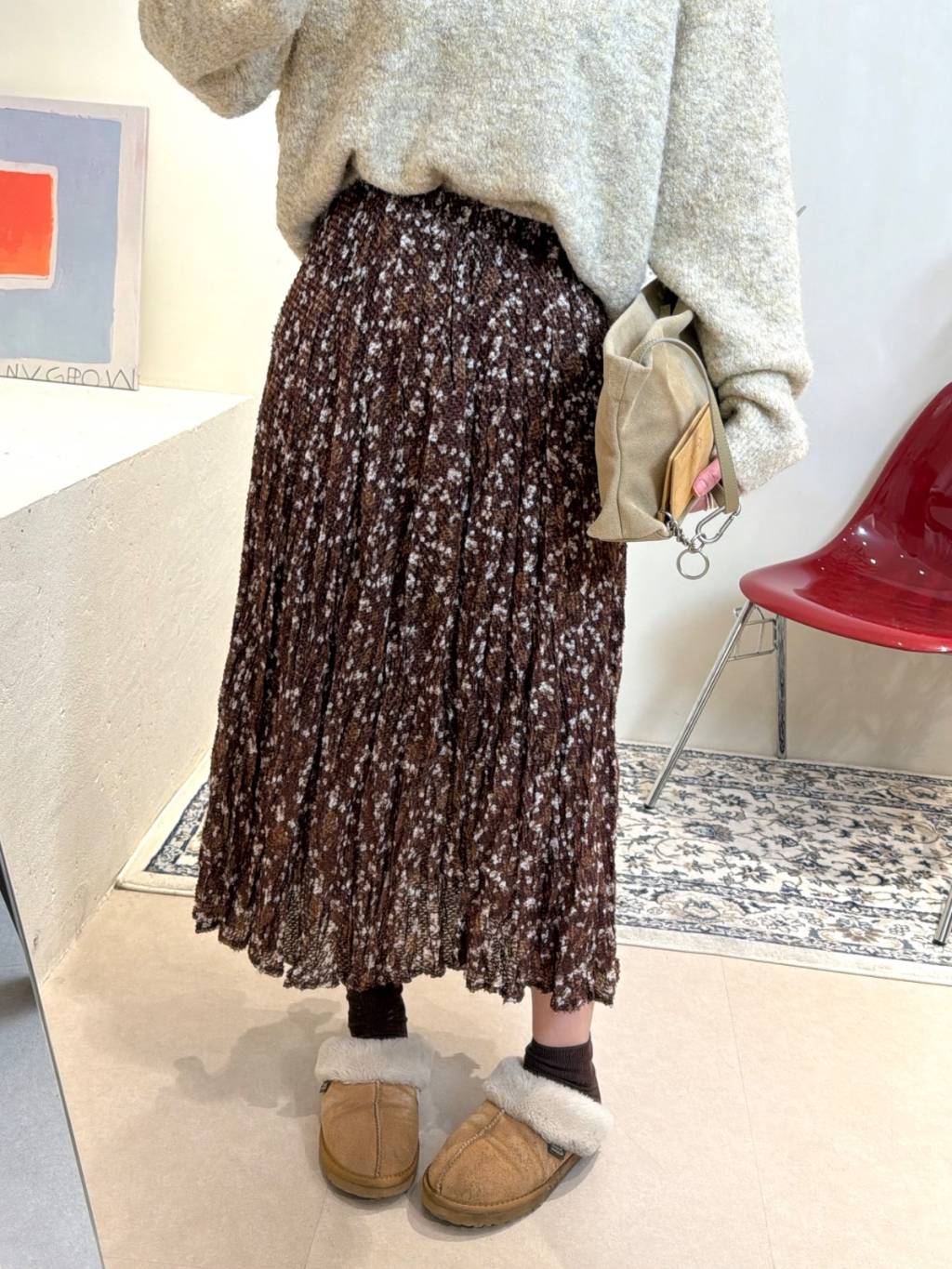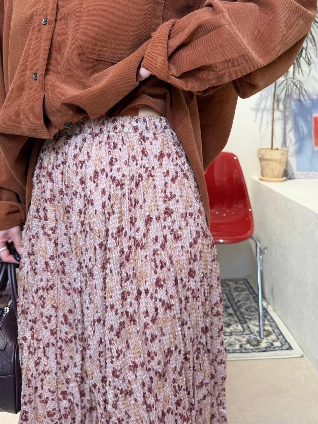 碎花褶皺橡根腰半截裙(LIVE SALE)