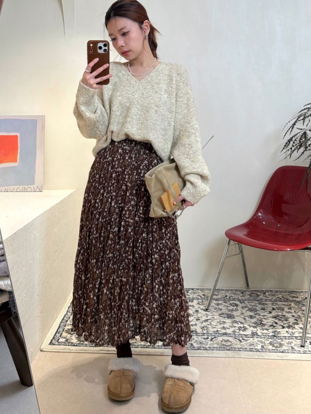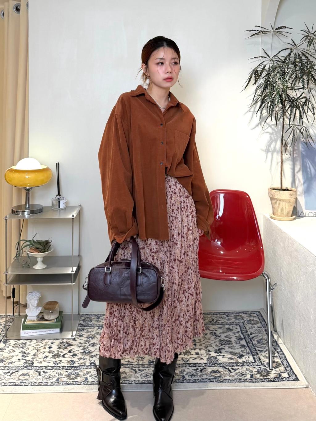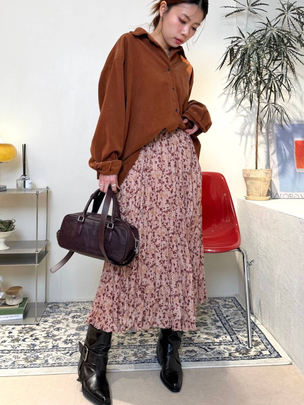 碎花褶皺橡根腰半截裙(LIVE SALE)