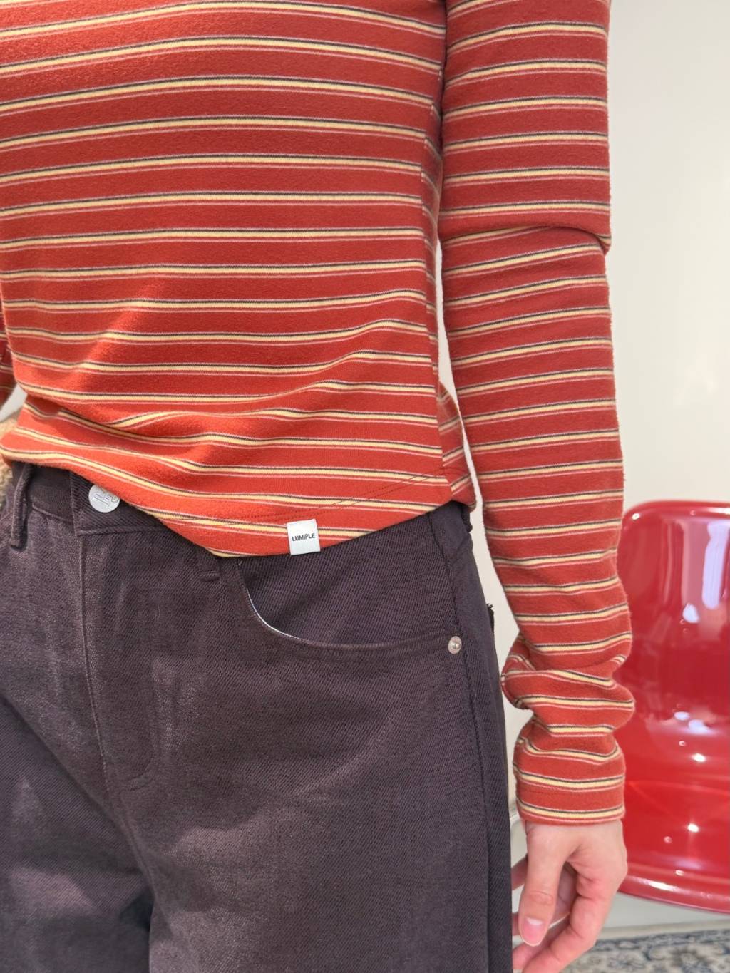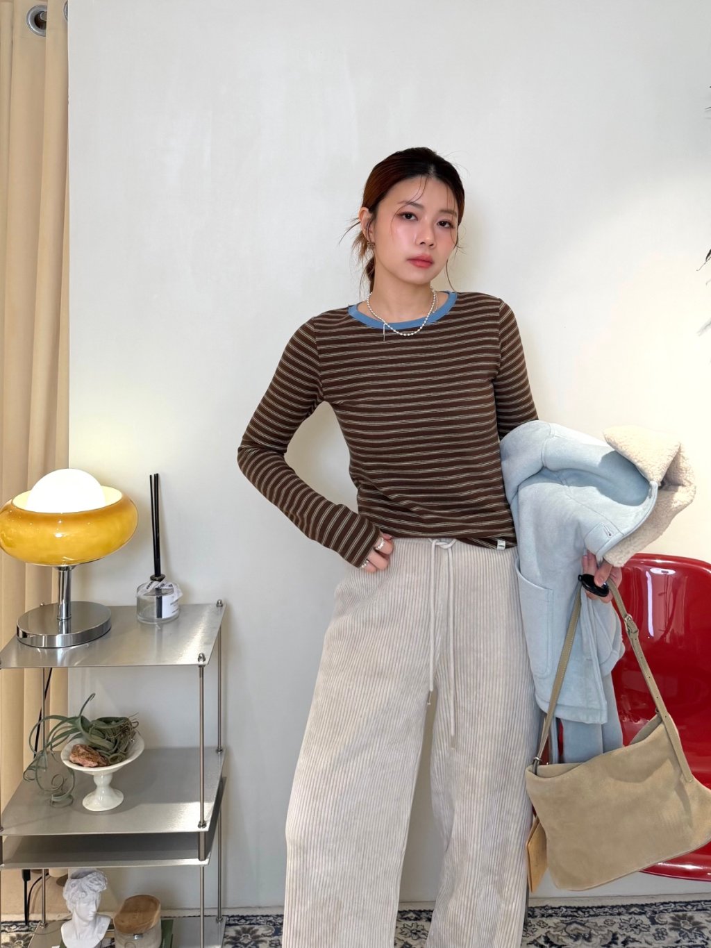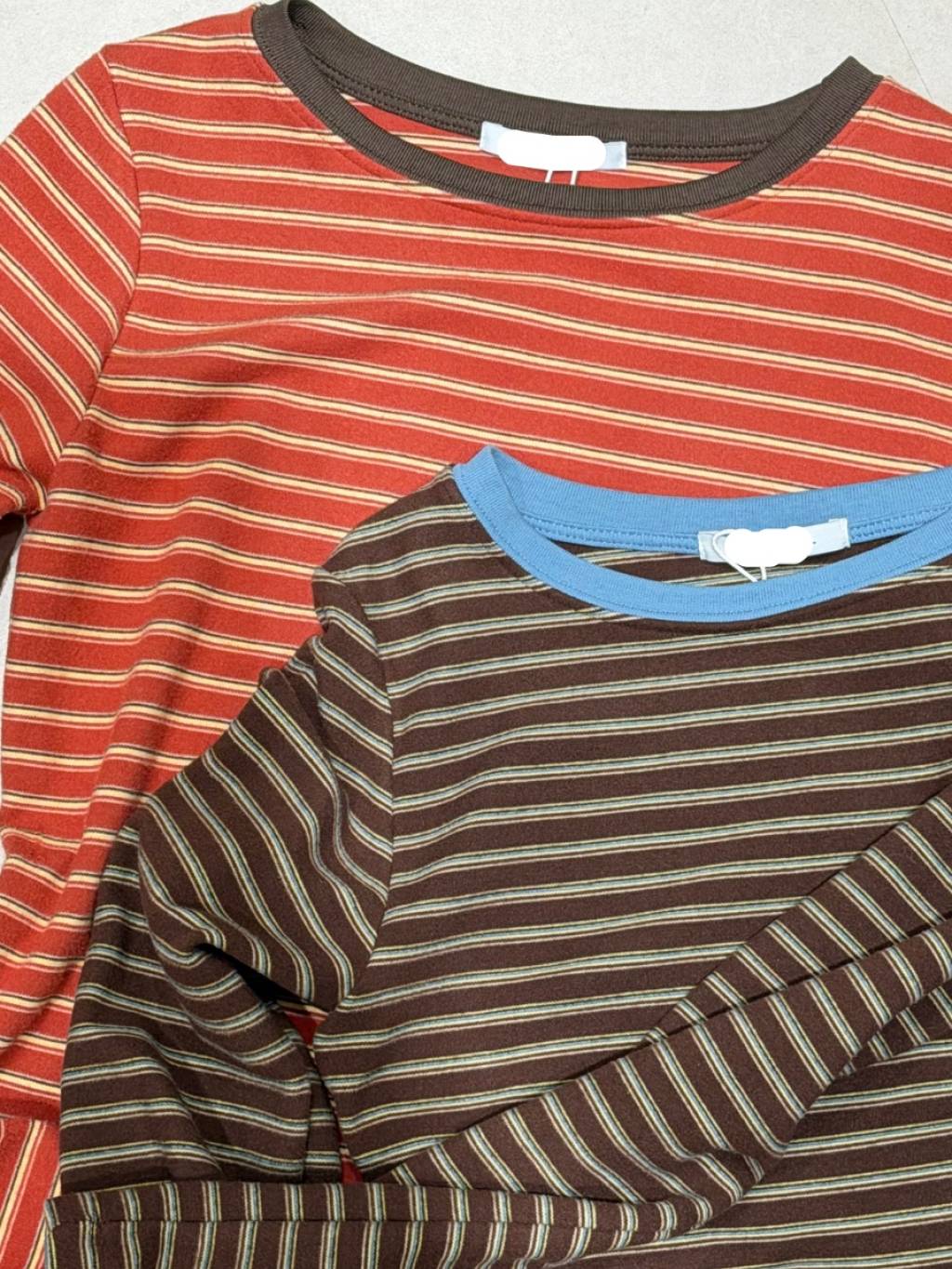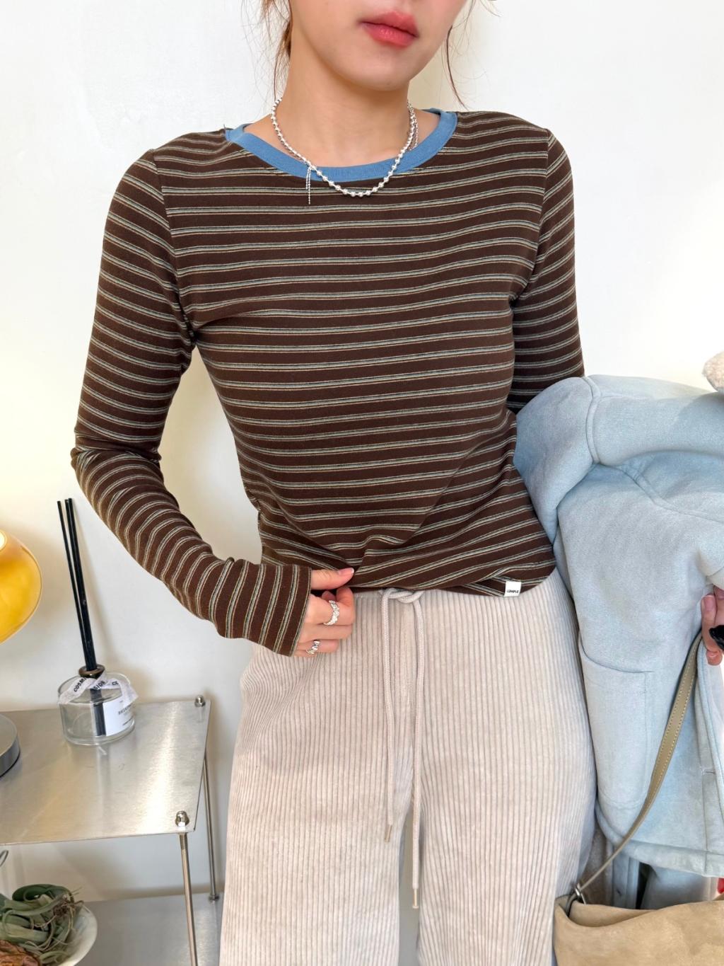 條紋拼色圓領長袖TEE(LIVE SALE)