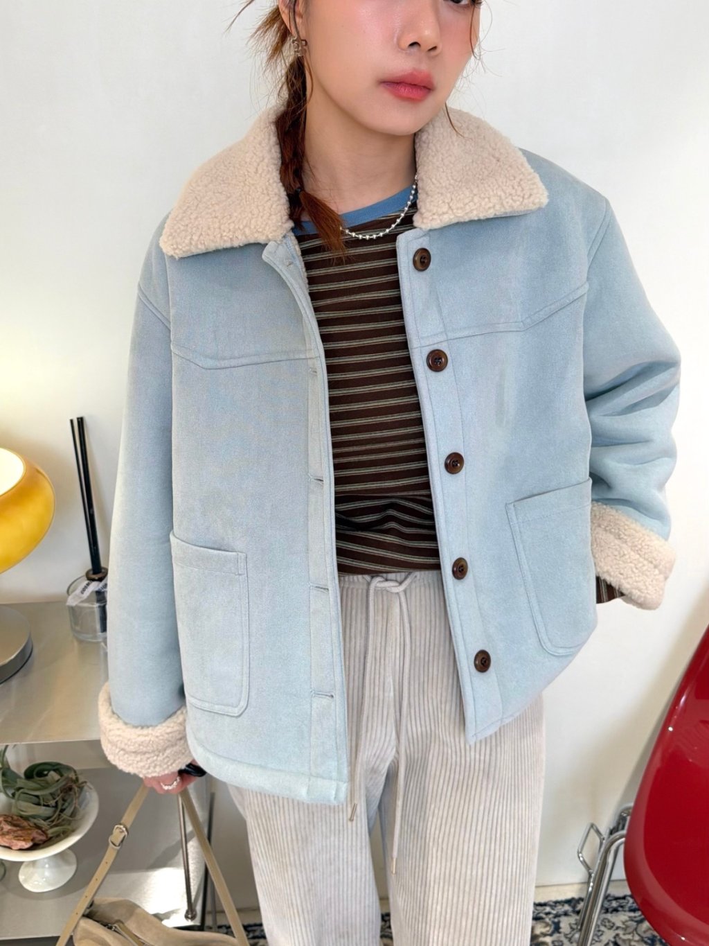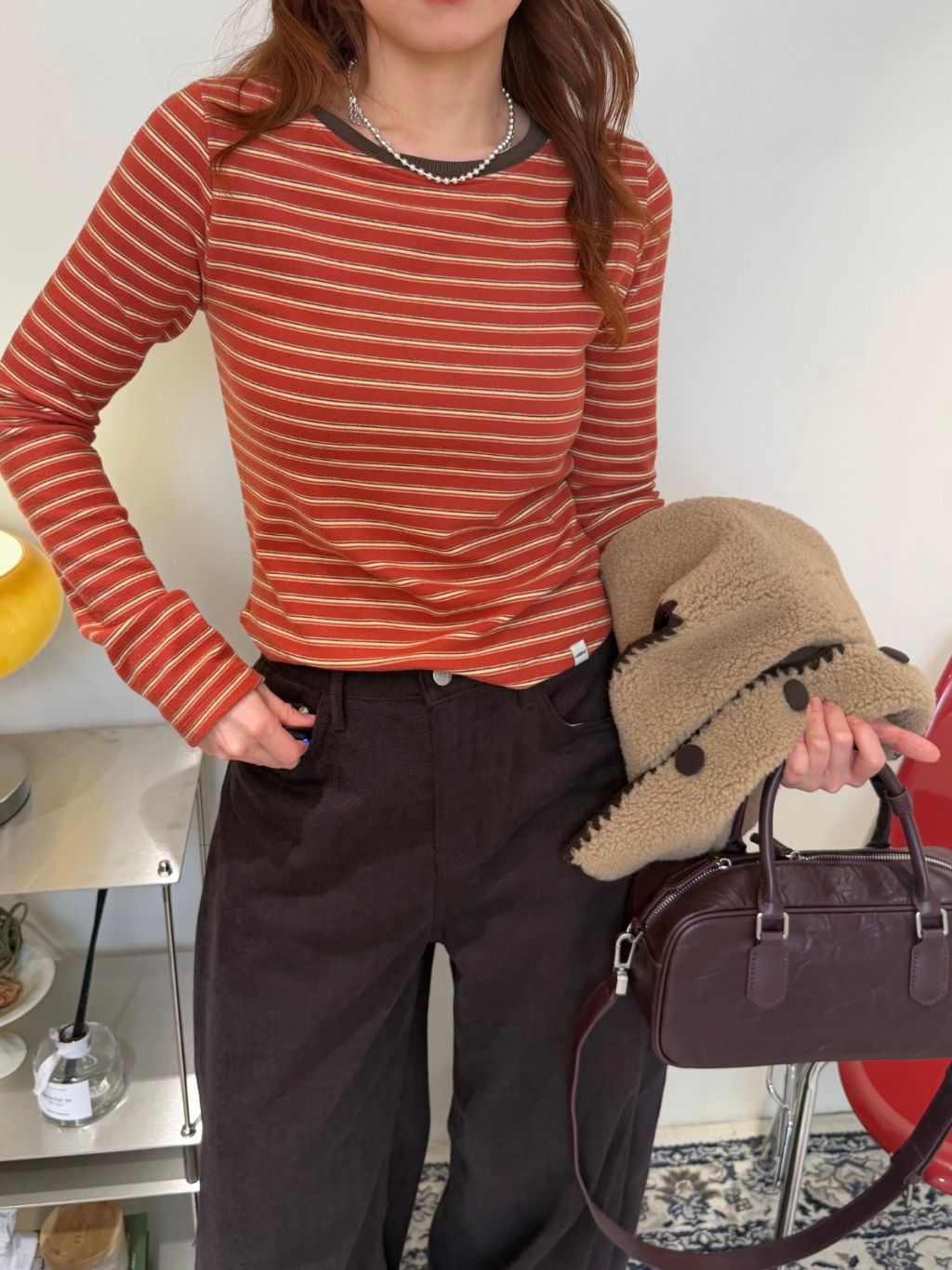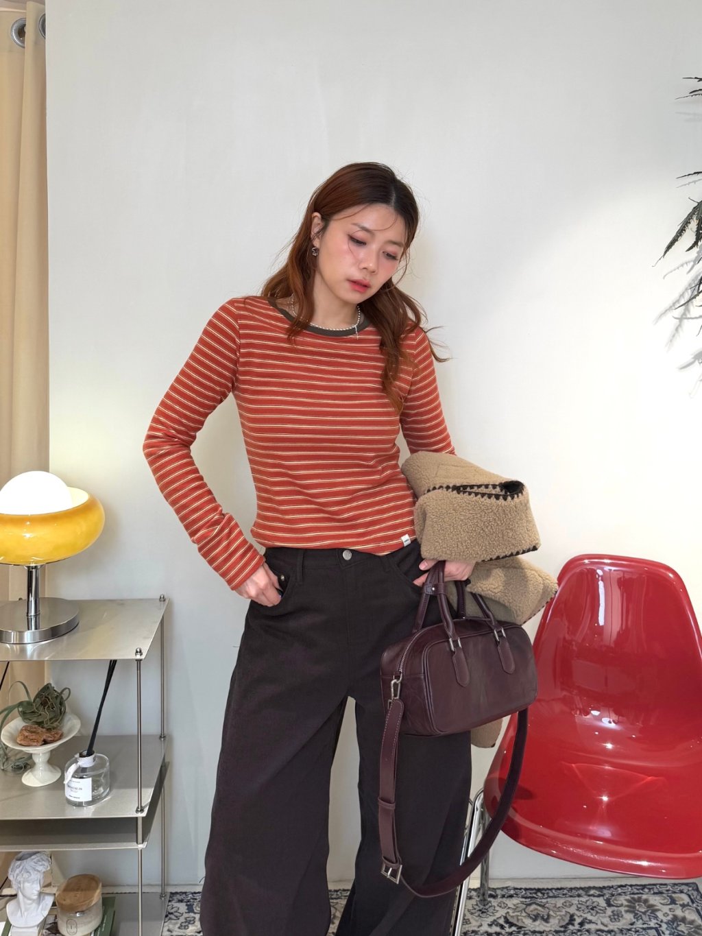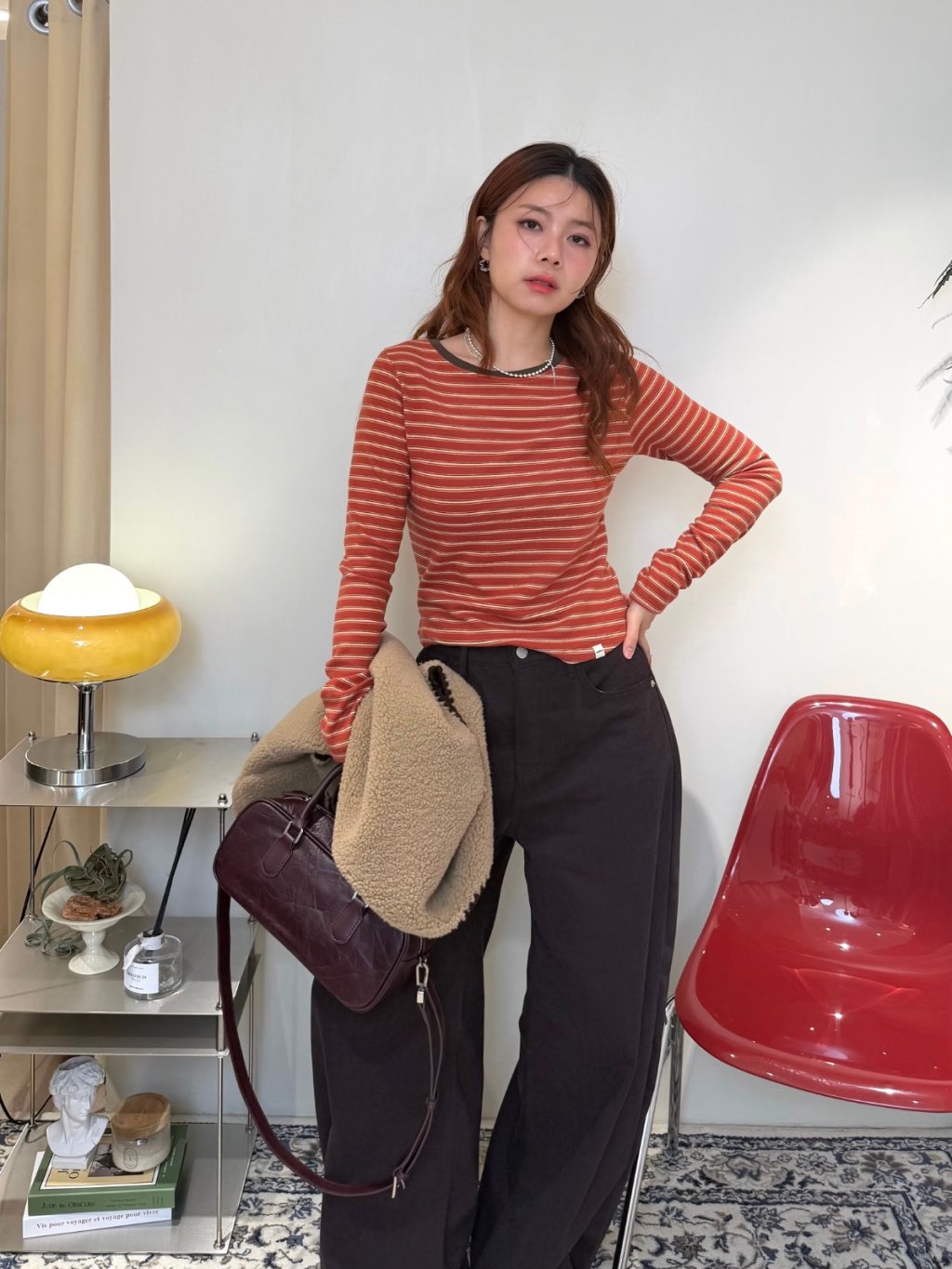 條紋拼色圓領長袖TEE(LIVE SALE)